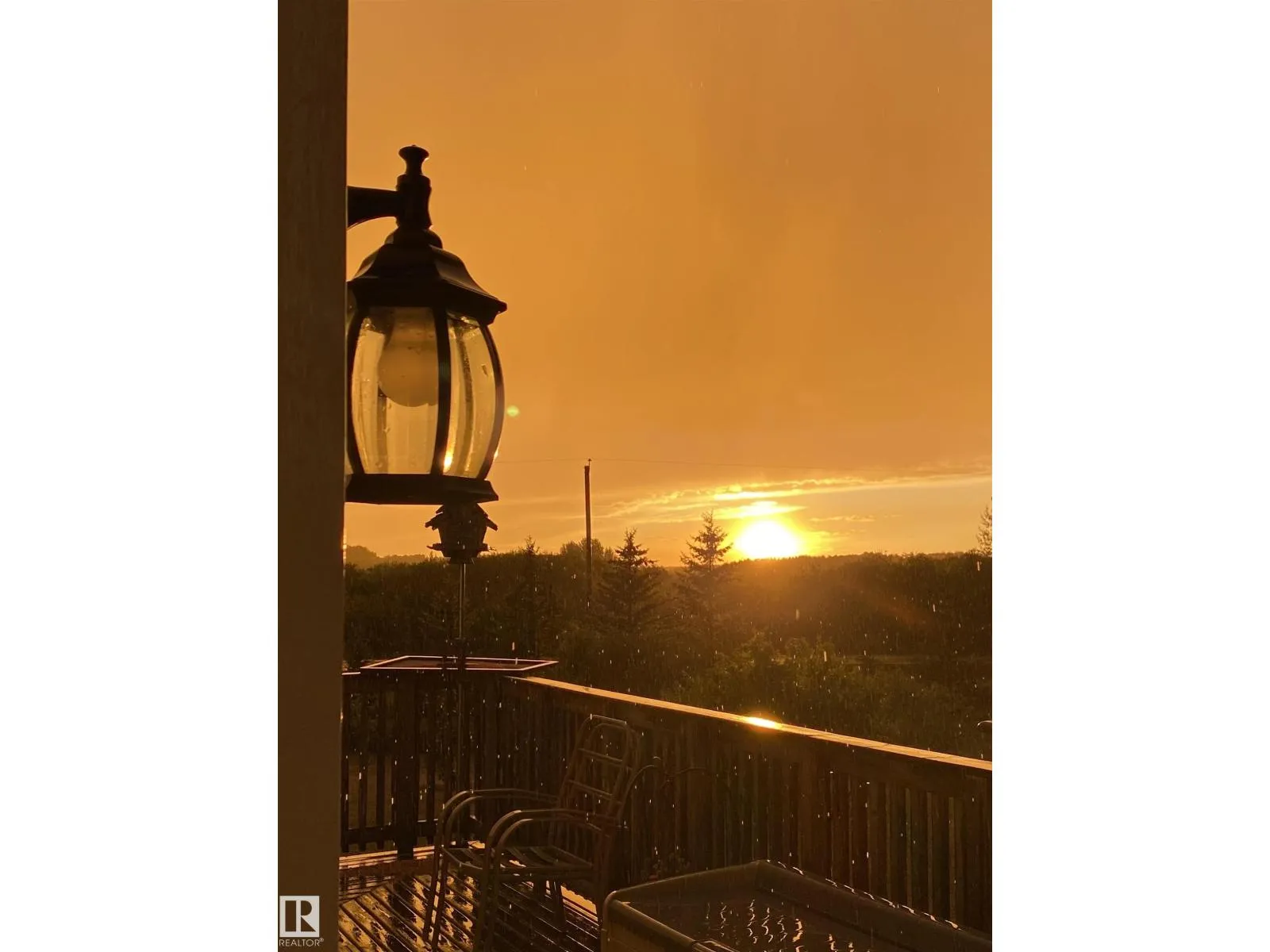 STUNNING PRIVATE 3+ ACRE LOT JUST 10 MINUTES FROM BEAUMONT!! Beautifully treed & nestled in Scottsdale Estates, find this well-maintained bungalow. Sunlight throughout the house w/ skylights & large windows. Gorgeous gas fireplace in living rm w/ imported stone features (provides ample heat in the winter). Kitchen has granite/quartz, plenty of cabinets, wall oven & gas stove. Primary retreat w/ spa-like ensuite (enjoy a soak) & deck access! Main floor complete w/ 2nd bdrm, 2nd bthrm & laundry rm. Basement has in-floor heating, recreation/2nd living space, huge 3rd bdrm, full 3pc bthrm & cold storage/storage space. Enjoy quiet summer evenings on the deck w/ sunset views. Plus deck wraps around house to enjoy those early morning sunrises. Huge evergreens border the property, apple trees, firepit area & storage shed. Addtl features include NEW METAL roof, hardwood floors (approx 6 years old), newer hot water tank (approx 5 years), newer washer/dryer, heated oversized garage, central vac, BBQ gas line & more! (id:27476)