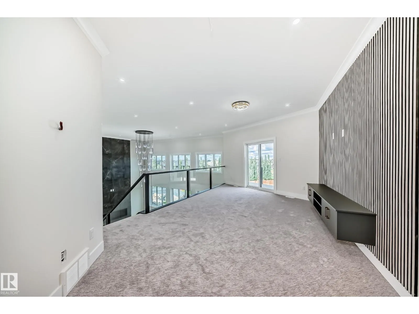 Outstanding Custom-Built Luxury Home in Royal Oaks Exceptional over 4,000 sq. ft. masterpiece, w/ 5 bedrooms and 6 full bathrooms, where every bedroom featuring its own ensuite. The main floor showcases soaring 18-ft ceilings in the living room, a chef-inspired kitchen with 10-ft ceilings, painted wood cabinetry, premium Taj Mahal quartzite countertops, a striking feature wall, and a spice kitchen with gas stove. A main floor den (or bedroom with closet) plus an additional bedroom with ensuite is ideal for family living or guests. Step outside to enjoy the covered balcony. Upstairs, find four spacious bedrooms, each with a private ensuite. The impressive primary suite boasts a stunning feature wall, private balcony, luxurious 5-piece spa ensuite, and much more.. The walk-out basement is designed with flexibility in mind, allowing for two separate suitesâperfect for multi-generational living or future rental income. Oversized triple garage. This than a homeâitâs a lifestyle of luxury, comfort & elegance. (id:27476)