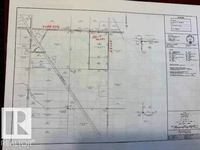 Wow! Location, Location!! Amazing property 54.17 acres located on SW corner of TWPR 504 (HWY 625 going east extension) and RR225 in Leduc County. Perfect opportunity to build your COUNTRY ESTATE DREAM HOME for your Leisure & Country living and enjoyment, or for a great investment property on a paved Road. About 10/12 minutes to City of Beaumont, about 25 minutes to the shopping areas of South Edmonton and about 25 minutes to Sherwood Park. The asking price DOES NOT INCLUDE GST. The lands are rented for farming. (id:27476)