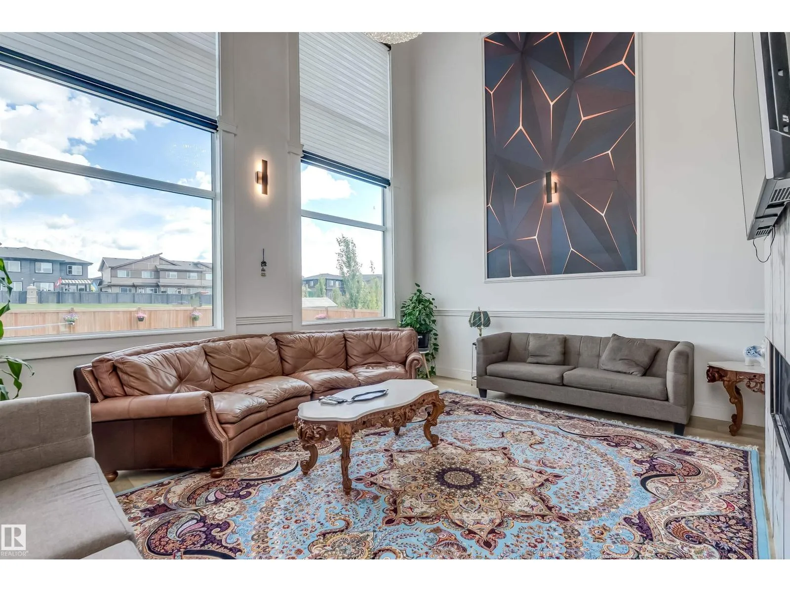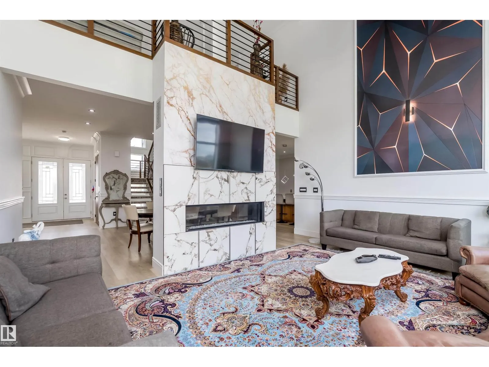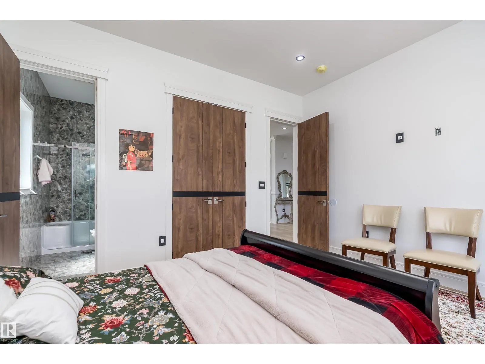 Welcome to Diamond Estates in Leduc County! This EXQUISITE MANSION with its architectural beauty & LARGE windows , on 0.33-acre lot & offers impressive apx 5667 sqft of total living space. The main floor features a living , family room, dining, & kitchen area, with a spice kitchen, main bedroom, & bathroom for elderly family and a half bathroom . There are large windows that create a spacious atmosphere, complemented by luxurious lighting & chandeliers . The custom-designed kitchen showcases real walnut wood cabinetry & high-end finishes. It includes updated electrical & plumbing fixtures & modern touches. The LEGAL GARAGE SUITE w/PRIVATE ENTRANCE, includes living room, kitchen, 2 bedrooms, a half bath, and a Jack & Jill full bathroom . The BASEMENT offers a bar, a full washroom, 2 bedrooms, and another bathroom with a living area and kitchen. Each section of the home has its own laundry. The massive backyard adds to the home's features. There is TRIPLE ATTACHED INSULATED garage. (id:27476)