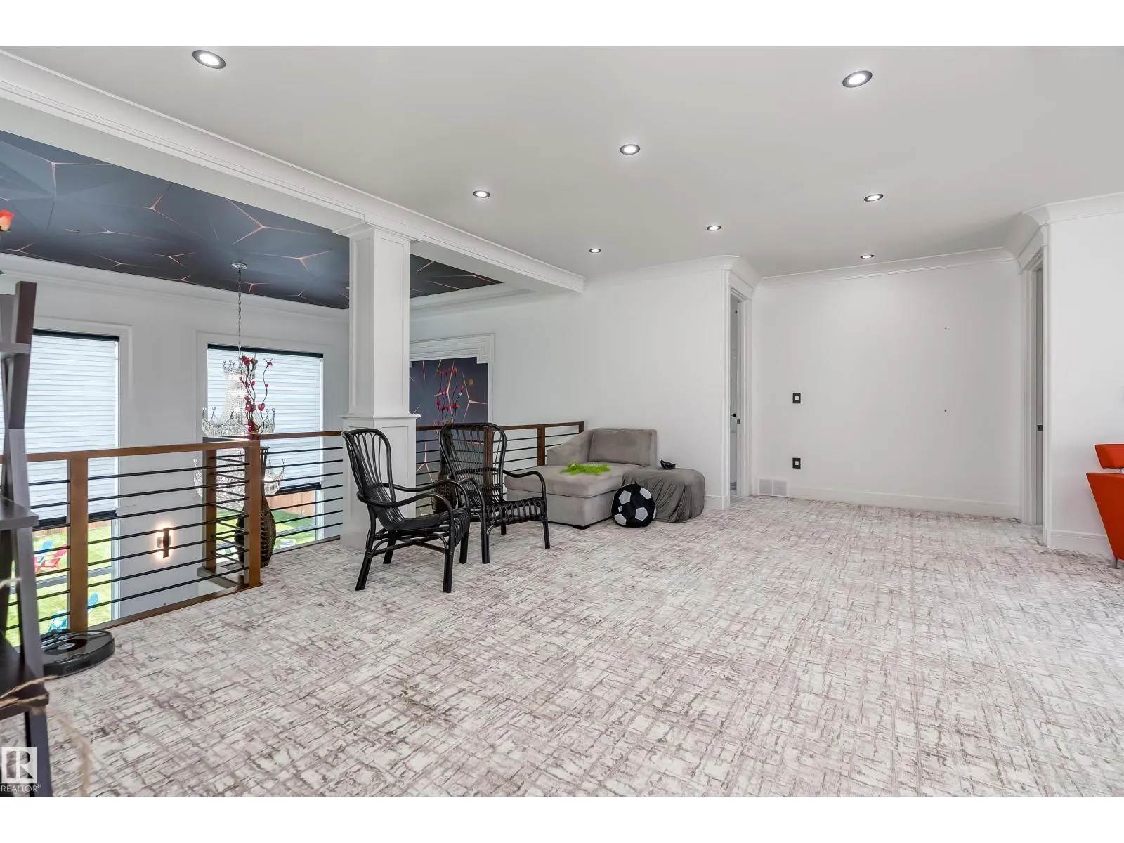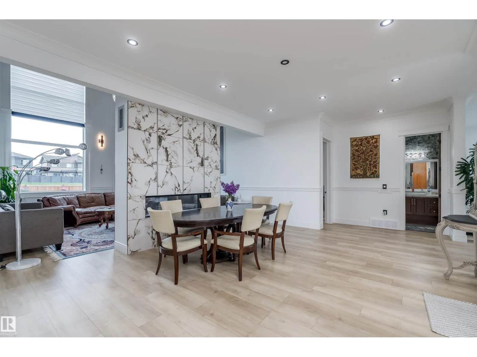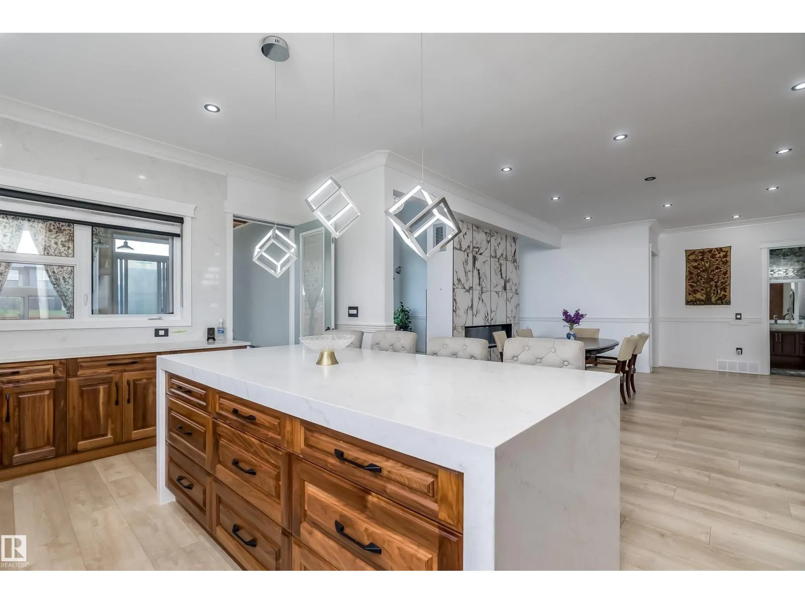 Welcome to Diamond Estates in Leduc County! This EXQUISITE MANSION with its architectural beauty & LARGE windows , on 0.33-acre lot & offers impressive apx 5667 sqft of total living space. The main floor features a living , family room, dining, & kitchen area, with a spice kitchen, main bedroom, & bathroom for elderly family and a half bathroom . There are large windows that create a spacious atmosphere, complemented by luxurious lighting & chandeliers . The custom-designed kitchen showcases real walnut wood cabinetry & high-end finishes. It includes updated electrical & plumbing fixtures & modern touches. The LEGAL GARAGE SUITE w/PRIVATE ENTRANCE, includes living room, kitchen, 2 bedrooms, a half bath, and a Jack & Jill full bathroom . The BASEMENT offers a bar, a full washroom, 2 bedrooms, and another bathroom with a living area and kitchen. Each section of the home has its own laundry. The massive backyard adds to the home's features. There is TRIPLE ATTACHED INSULATED garage. (id:27476)
