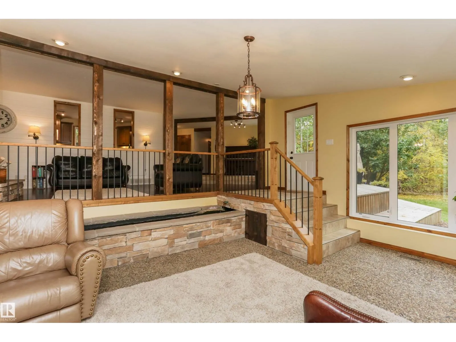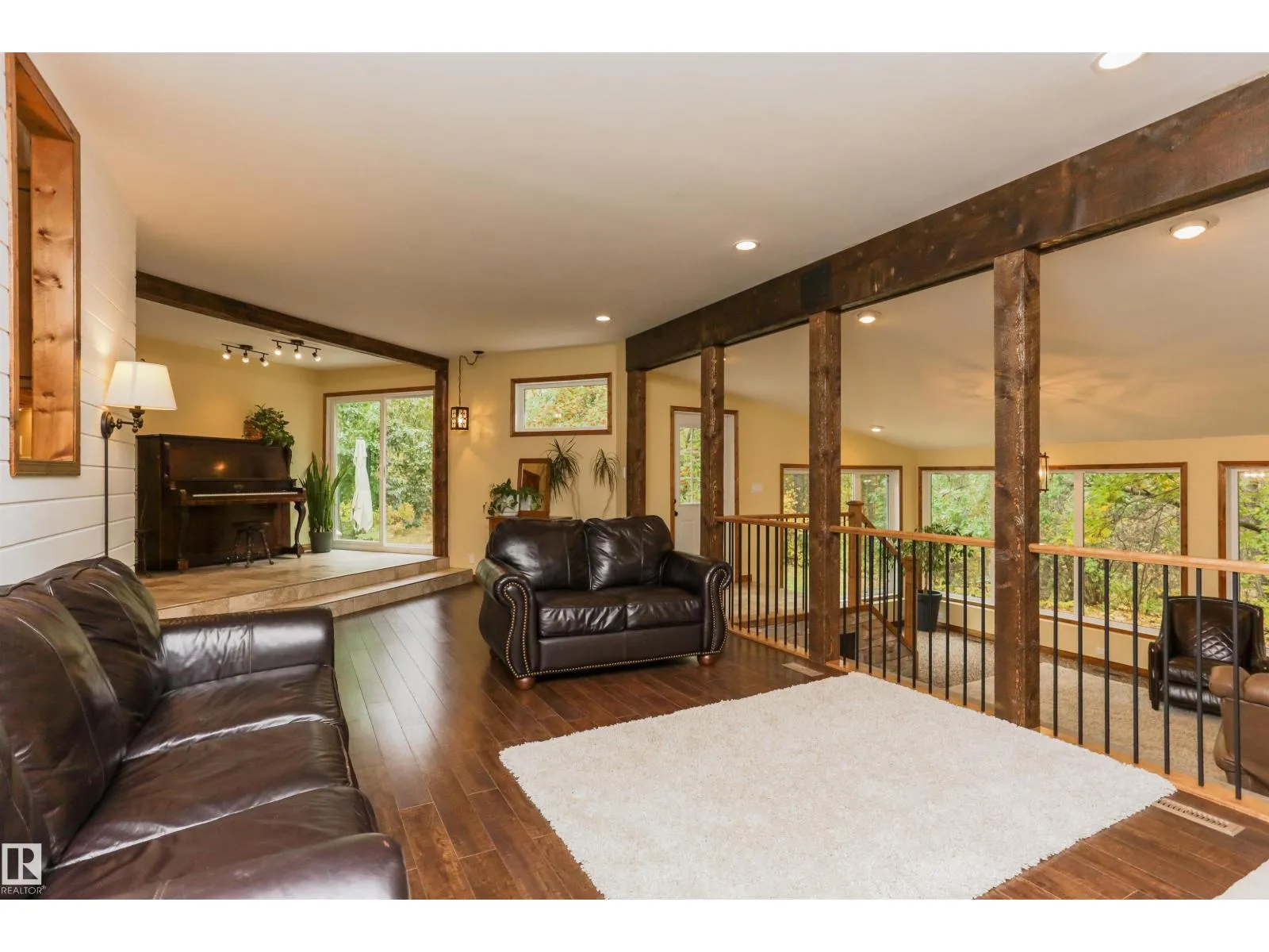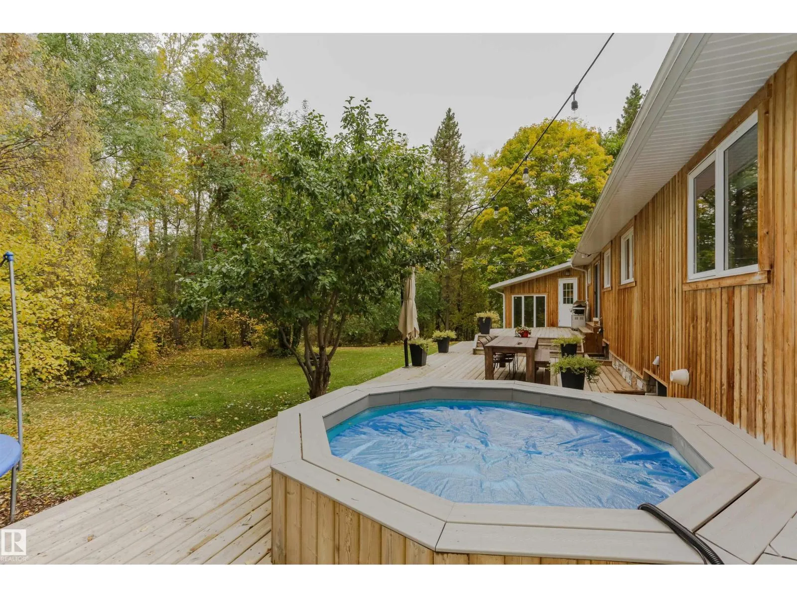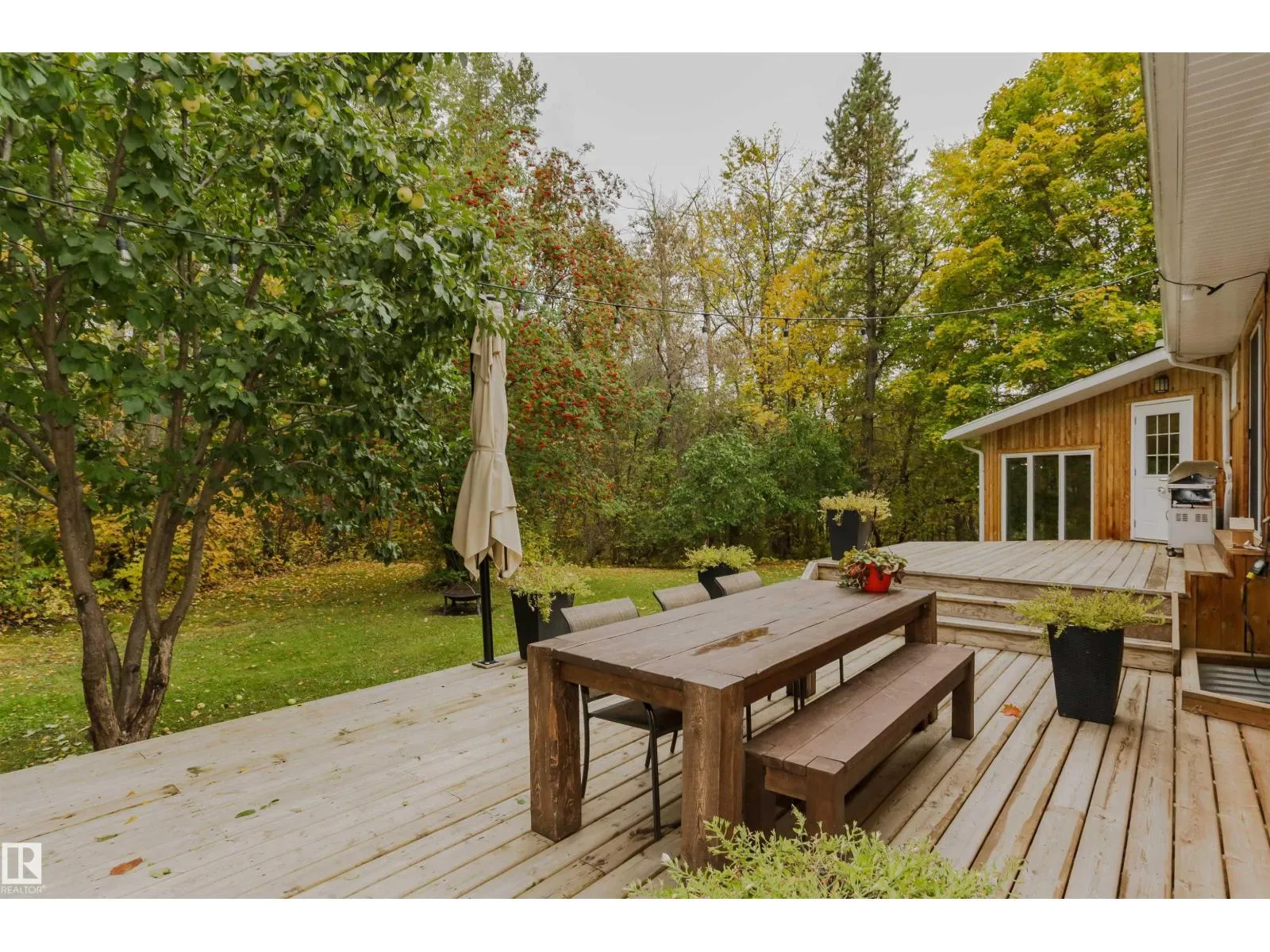 What a beautiful acreage. Only minutes from Beaumont, these 2.5 acres are in a subdivision yet offers treed privacy. The 2121 sq.ft bungalow had a complete makeover several years ago & has been transformed into a warm and welcoming home complete with a cold water plunge pool on the deck. The custom kitchen overlooks the spacious living rm and sunken family rm with a soothing water feature + wrapped with windows for an abundance of natural light. The large dining rm could accommodate a table of ten & is complete with a natural stone f/p. Past the large foyer and down the hall you will find 4 bdrms incl. the master retreat with a 4 pc. ensuite and floor to ceiling sliding doors to your own private south facing deck. The ideas are endless in the finished basement with a studio gym, a true Norwegian sauna with shower, bdrm #5 with it's own walk-in closet, a huge rec rm & great storage space. There are 2 approaches, the East approach leads to the subdivided SEPARATE property. (id:27476)