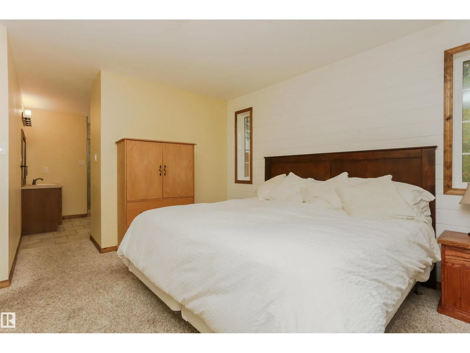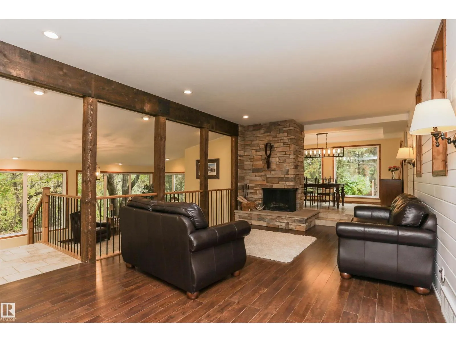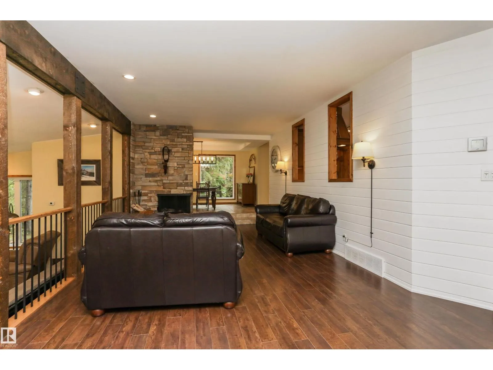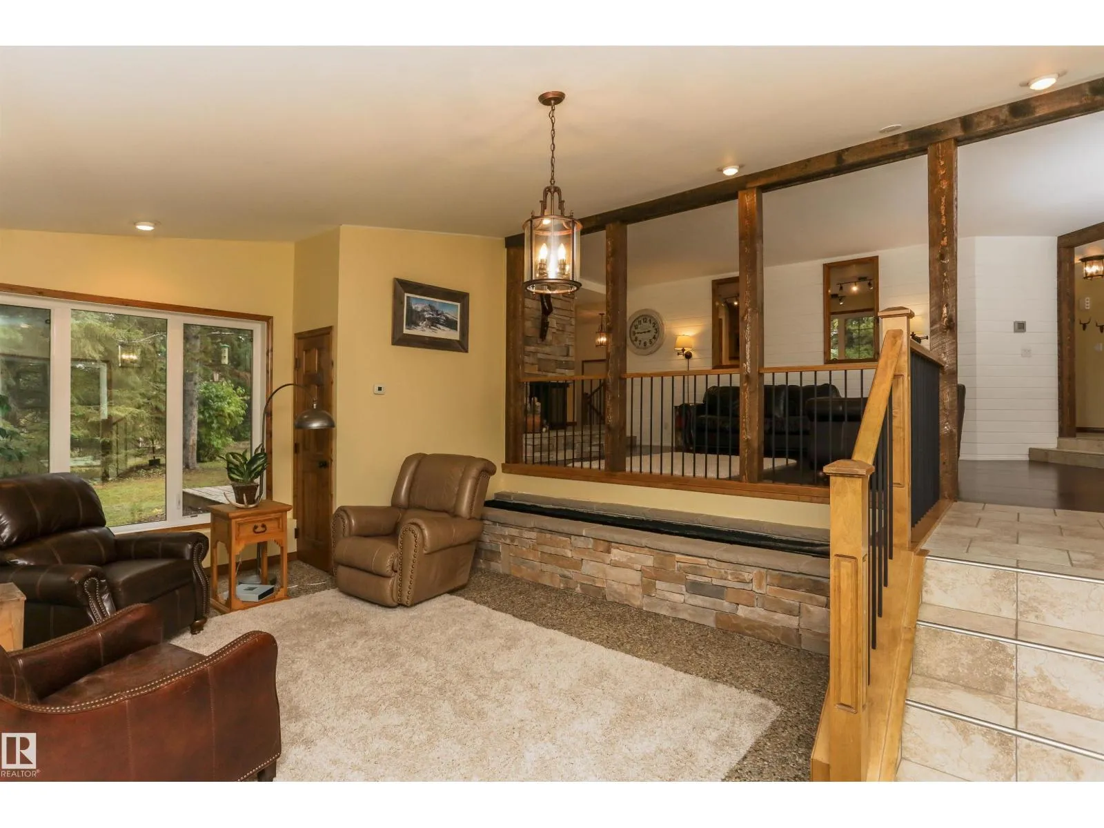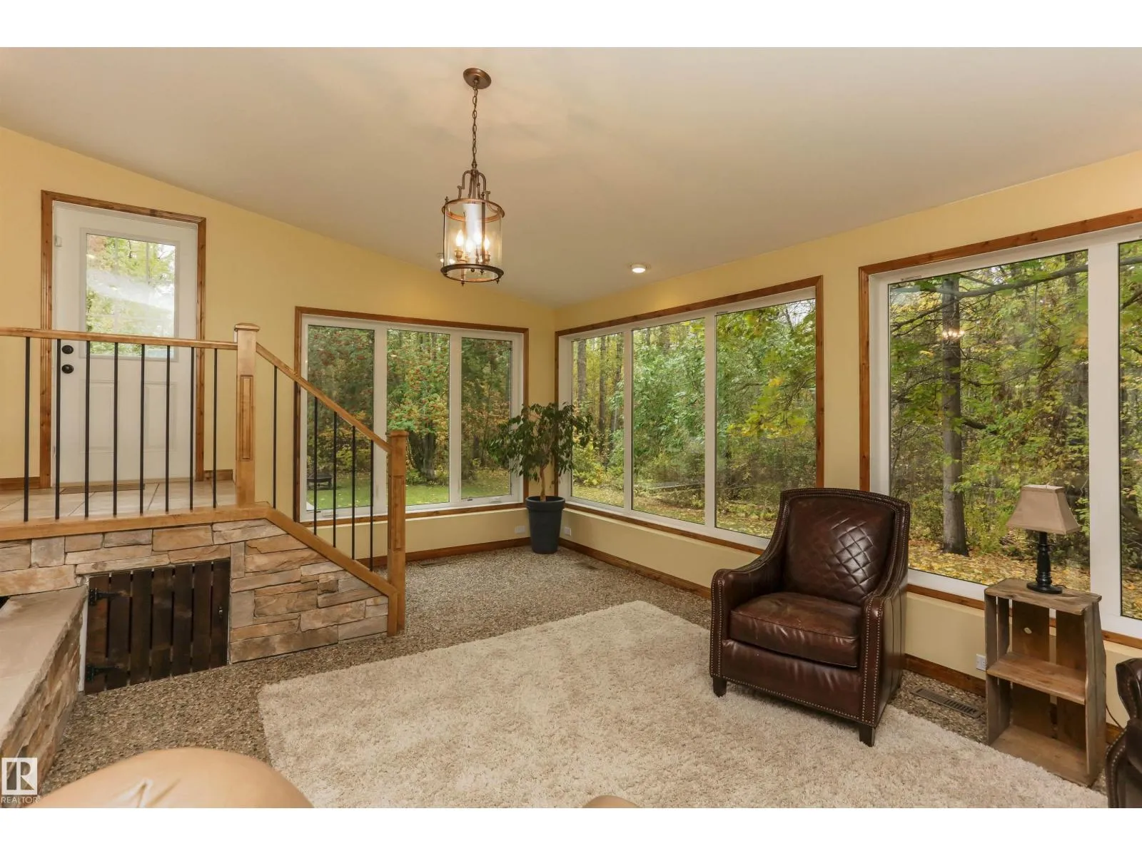 What a beautiful acreage. Only minutes from Beaumont, these 2.5 acres are in a subdivision yet offers treed privacy. The 2121 sq.ft bungalow had a complete makeover several years ago & has been transformed into a warm and welcoming home complete with a cold water plunge pool on the deck. The custom kitchen overlooks the spacious living rm and sunken family rm with a soothing water feature + wrapped with windows for an abundance of natural light. The large dining rm could accommodate a table of ten & is complete with a natural stone f/p. Past the large foyer and down the hall you will find 4 bdrms incl. the master retreat with a 4 pc. ensuite and floor to ceiling sliding doors to your own private south facing deck. The ideas are endless in the finished basement with a studio gym, a true Norwegian sauna with shower, bdrm #5 with it's own walk-in closet, a huge rec rm & great storage space. There are 2 approaches, the East approach leads to the subdivided SEPARATE property. (id:27476)