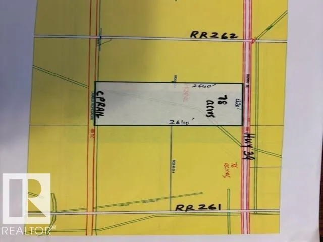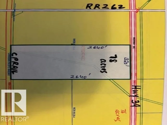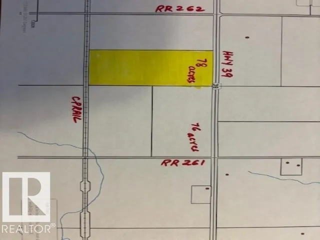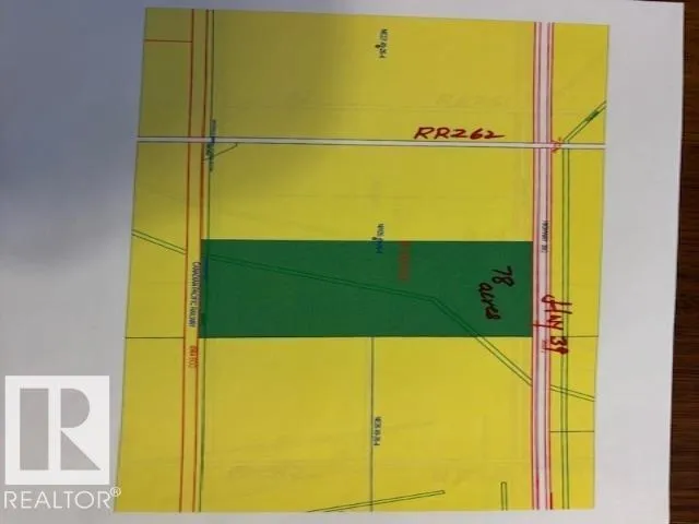 Excellent parcel of land 78 acres, located on Hwy 39 between RR 261 & 262 in Leduc County. ONLY 3½ miles WEST OF CITY OF LEDUC & EDMONTON INTERNATIONAL AIRPORT. Easy access to QEII (Hwy 2) & Hwy 60 via HWY 39. Mostly high farmland fronting Hwy 39 and backing on to CP TRAIN TRACKS. BUILD your COUNTRY ESTATE HOME for your COUNTRY Living & Enjoyment 8 minutes away from the City of Leduc Amenities. Next to these 78 acres Another piece of land 76 acres is also available. Part of that 76 acres about 37.07 acres are already RE-ZONED to INDUSTRIAL/Agricultural Resource DISTRICT type of agri business type uses. Both of these pieces - 78 acres & 76 acres can be bought together and or separately. Great pieces of land at very strategic location of Hwy 39 in Leduc County. (id:27476)