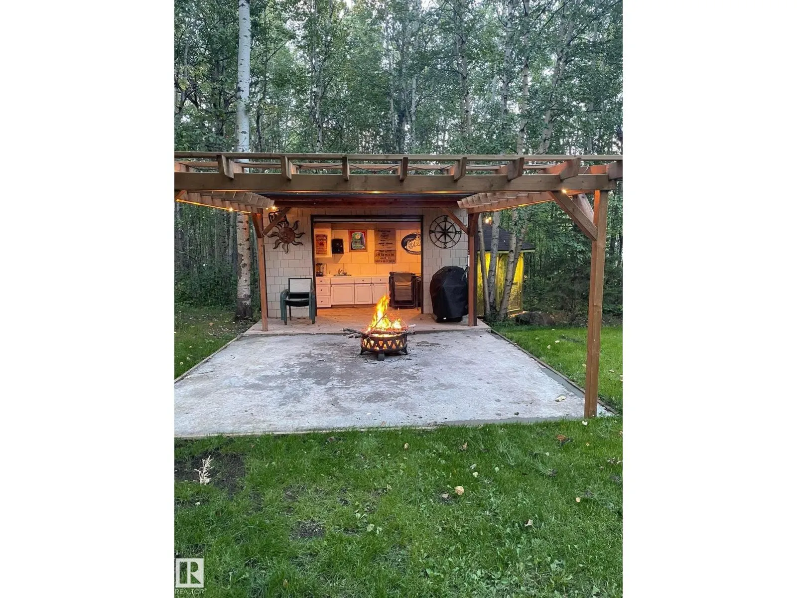 Welcome to your perfect escape in Iron Horse Estates, just minutes from Pigeon Lake! This modular home sits on a beautifully private and treed 2.47 acre lot. Inside you will find a bright and open floor plan highlighted by a vaulted ceiling and skylights and a spacious kitchen with an island and walk-in pantry. The home includes 3 bedrooms and 2 bathrooms, with a large primary suite boasting a walk-in closet and 4-piece ensuite. Patio doors lead out to a large maintenance-free deck - perfect for your morning coffee. On the other side of the home, a gentle slope leads down to your spectacular outdoor sanctuary! This area features a custom built outdoor kitchen (complete with running water, hot water and a fridge!). The property is truly set up for guests, featuring two designated RV power hook-ups. For security and peace of mind, the entire property is fully fenced with page wire, making it absolutely perfect for dogs, and access is controlled by a private driveway gate. (id:27476)