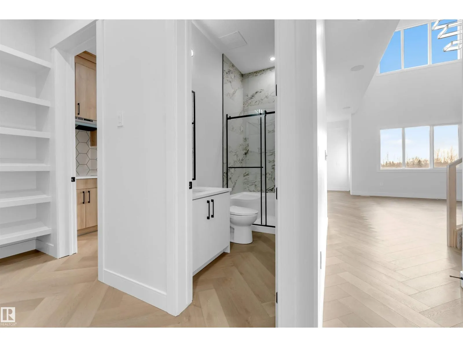 ** MAIN FLOOR BEDROOM AND BATH, OPEN TO BELOW**Welcome to this beautifully designed home in the heart of Nisku, offering a perfect blend of modern comfort and functional living. With an inviting foyer, an open concept main floor, and a bright living area anchored by a stylish fireplace, this home creates an ideal setting for both everyday living and entertaining. The thoughtfully planned kitchen features generous workspace, a convenient servery, and seamless flow to the dining area. A main floor bedroom and full bath add valuable flexibility for guests or multi generational living. Upstairs, the spacious primary suite impresses with a luxury ensuite and walk in closet, accompanied by two additional well sized bedrooms, an upper level family room, and a dedicated laundry space. With its smart layout, elegant finishes, and comfortable spaces throughout, this home delivers exceptional value for families seeking style, convenience, and room to grow. (id:27476)