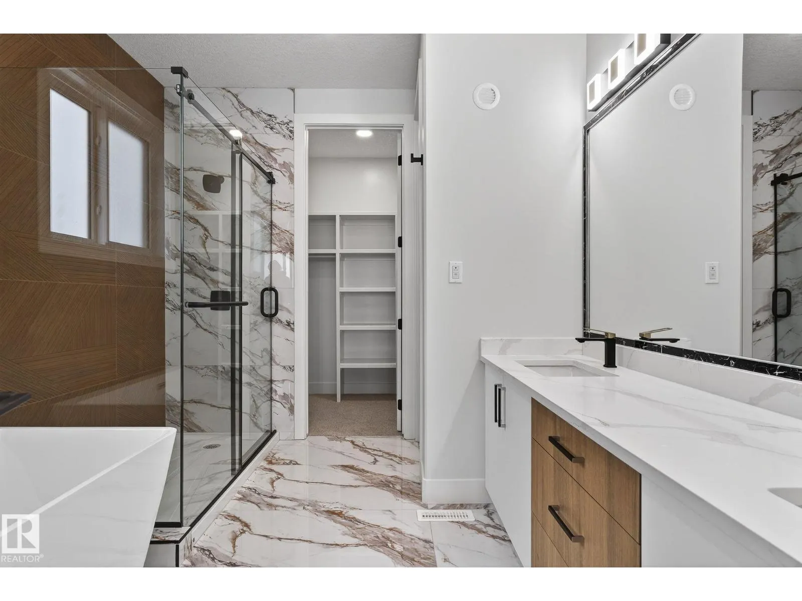 5 Bedrooms-3 Full bathrooms-3 Living spaces-Spice Kitchen-Separate side entrance to bsmt. Brand new 2-storey, 2640sqft. Featuring a main floor bedroom and full bathroom. Upgraded kitchen with ceiling height cabinetry, quartz counter countertops, extended cabinetry and stainless steel appliances.. Walk through SPICE KITCHEN with plenty of storage space. Open-to-above great room with an electric fireplace and feature wall. The upper level features a spacious master suite complete with a 5 piece spa-like ensuite including double vanity, free standing bathtub, custom shower and walk-in closet, 3 additional bedrooms, a full bathroom, and a generous bonus room complete the second floor. The basement offers abundant natural light and a SEPERATE SIDE ENTRANCE. Fully upgraded, premium lighting, feature walls, glass railing, step lights, 3 gas lines, MDF shelving and much more. Conveniently located close to the Edmonton International Airport and Premium Outlet and minutes from South Edmonton. A must see! (id:27476)