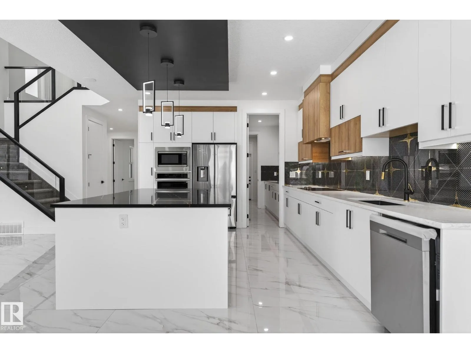 Presenting a meticulously designed 2-storey home offering 2700 sq. ft. of luxury living space in the vibrant community of Churchill Meadows. 5 BEDROOMS, 4 FULL BATHROOMS, SPICE KITCHEN. The main floor consists of a spacious great room with electric fireplace on an elegant feature wall, a chef-inspired kitchen with a central island and walkthrough SPICE KITCHEN, a main floor bedroom w/ full bathroom, and a mudroom with built-in bench and hooks. Upstairs features a bonus room, Primary bedroom with 5-piece ensuite, 2nd master w/ensuite, 2 additional bedrooms share a 4-piece washroom. SEPARATE SIDE ENTRANCE to the bsmt. Fully upgraded, premium lighting, feature walls, quartz, glass railing, step lights, 3 gas lines, MDF shelving and much more. Conveniently located close to the Edmonton International Airport and Premium Outlet and minutes from South Edmonton. (id:27476)