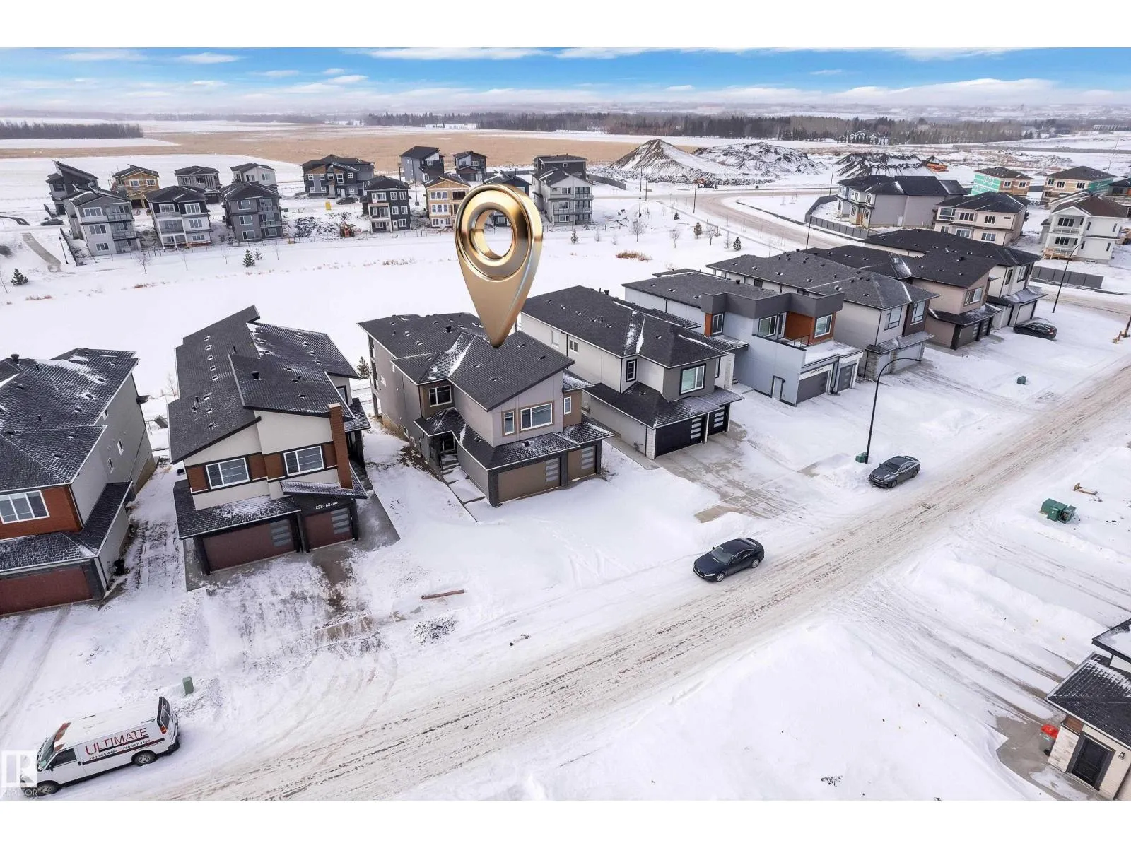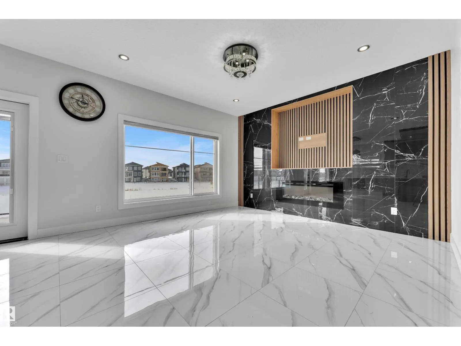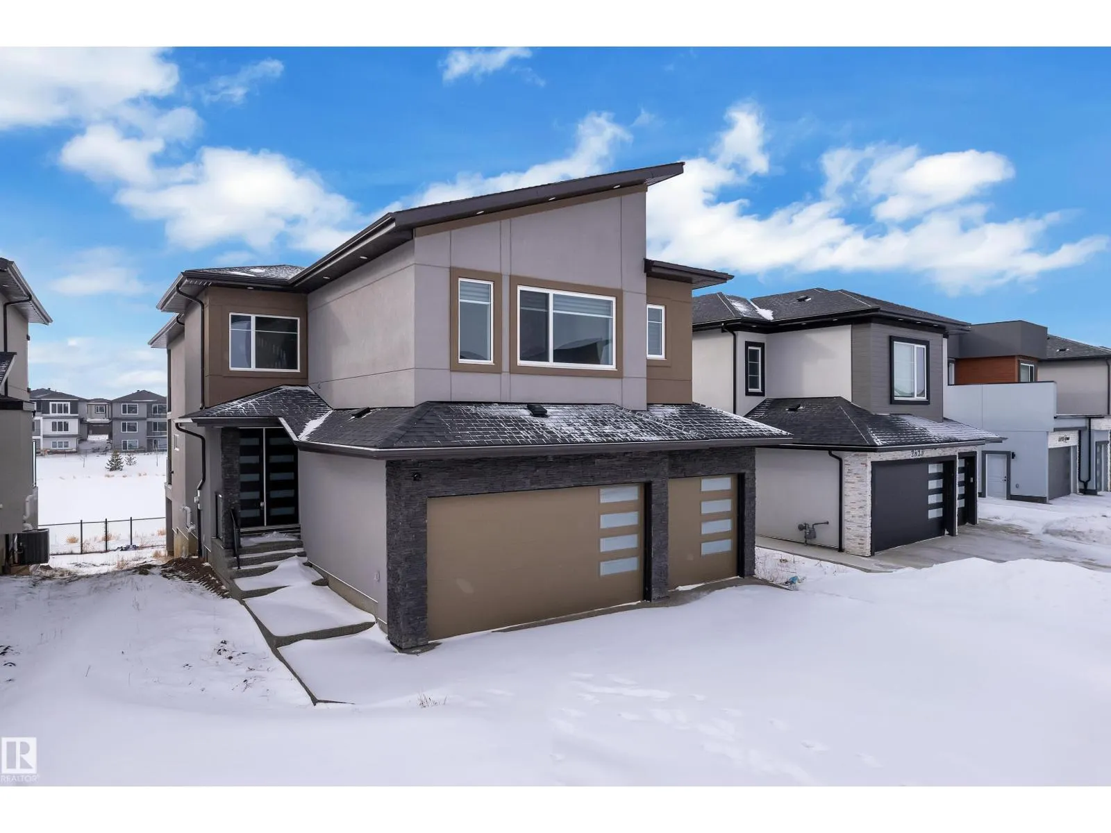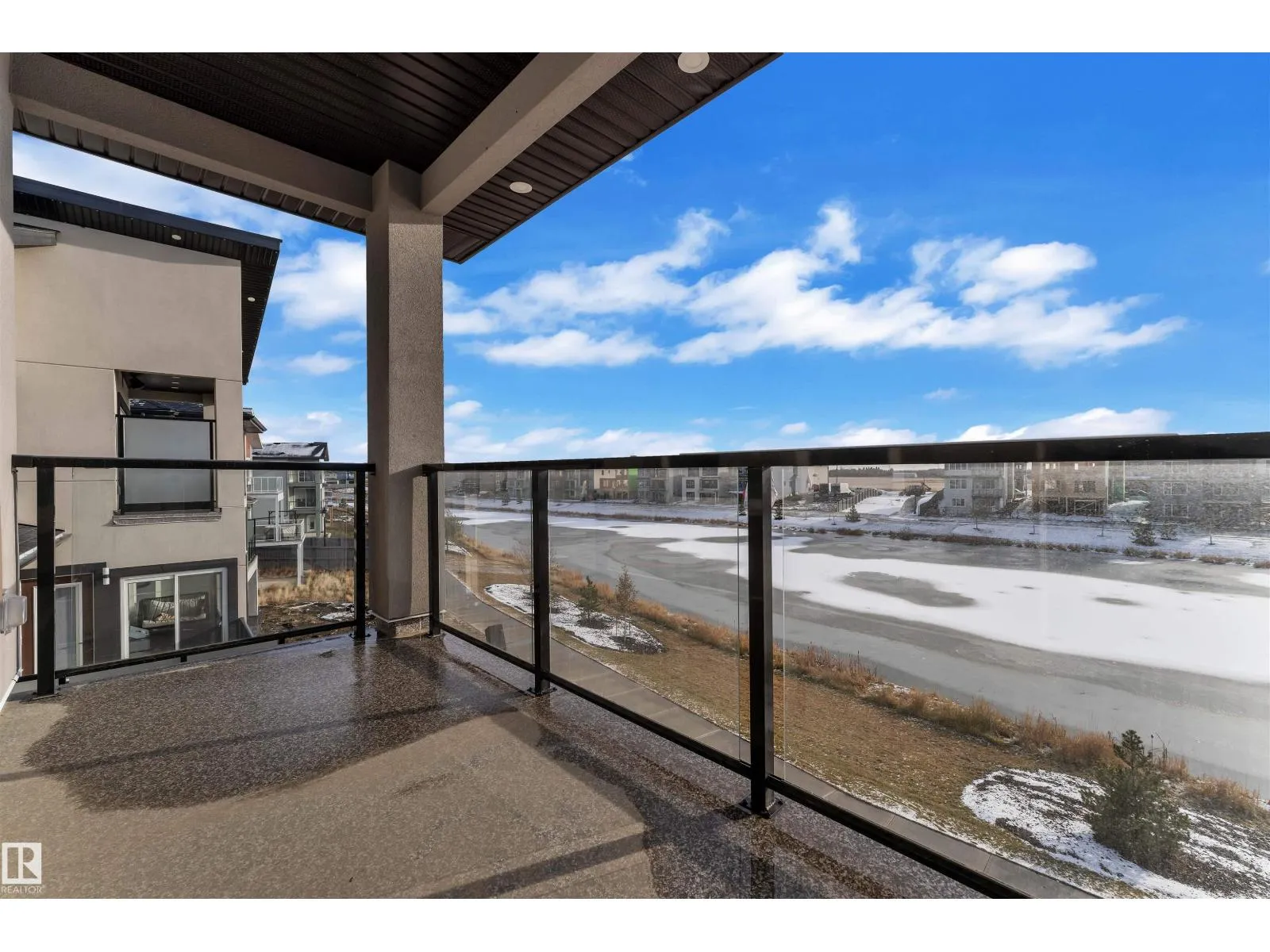This stunning triple-car garage home sits on a premium 34 ft pocket lot with an exposed driveway. This impressive residence showcases a bright and functional layout designed for modern living.Step through the grand double-door entry into a breathtaking open-to-above foyer that flows into a spacious living area featuring a sleek fireplace and large windows that capture picturesque pond views. The chef-inspired kitchen is beautifully appointed with stainless steel appliances, granite countertops, a central island, and a separate spice kitchen, perfect for everyday cooking and entertaining.The main floor bedroom with a full bath provides a convenient space for guests or extended family. Upstairs, youâll find two luxurious primary suites with private ensuites, along with two additional bedrooms connected by a shared bath and a versatile bonus room ideal for a family lounge, office, or play area. A private balcony off the primary suite overlooks the tranquil pond, creating the perfect retreat. (id:27476)