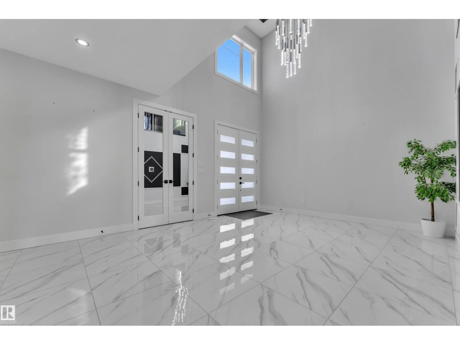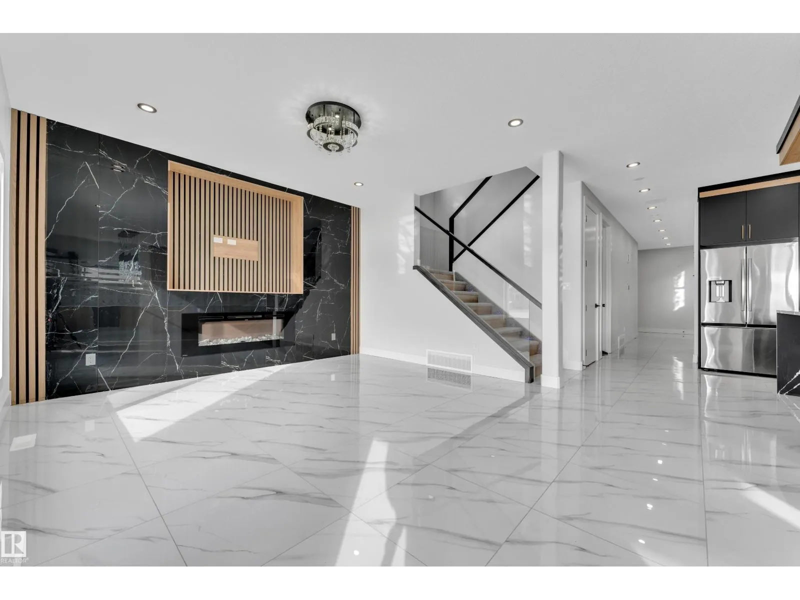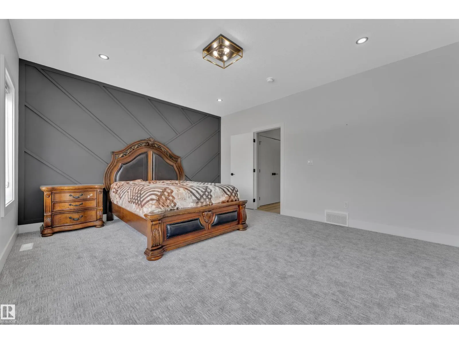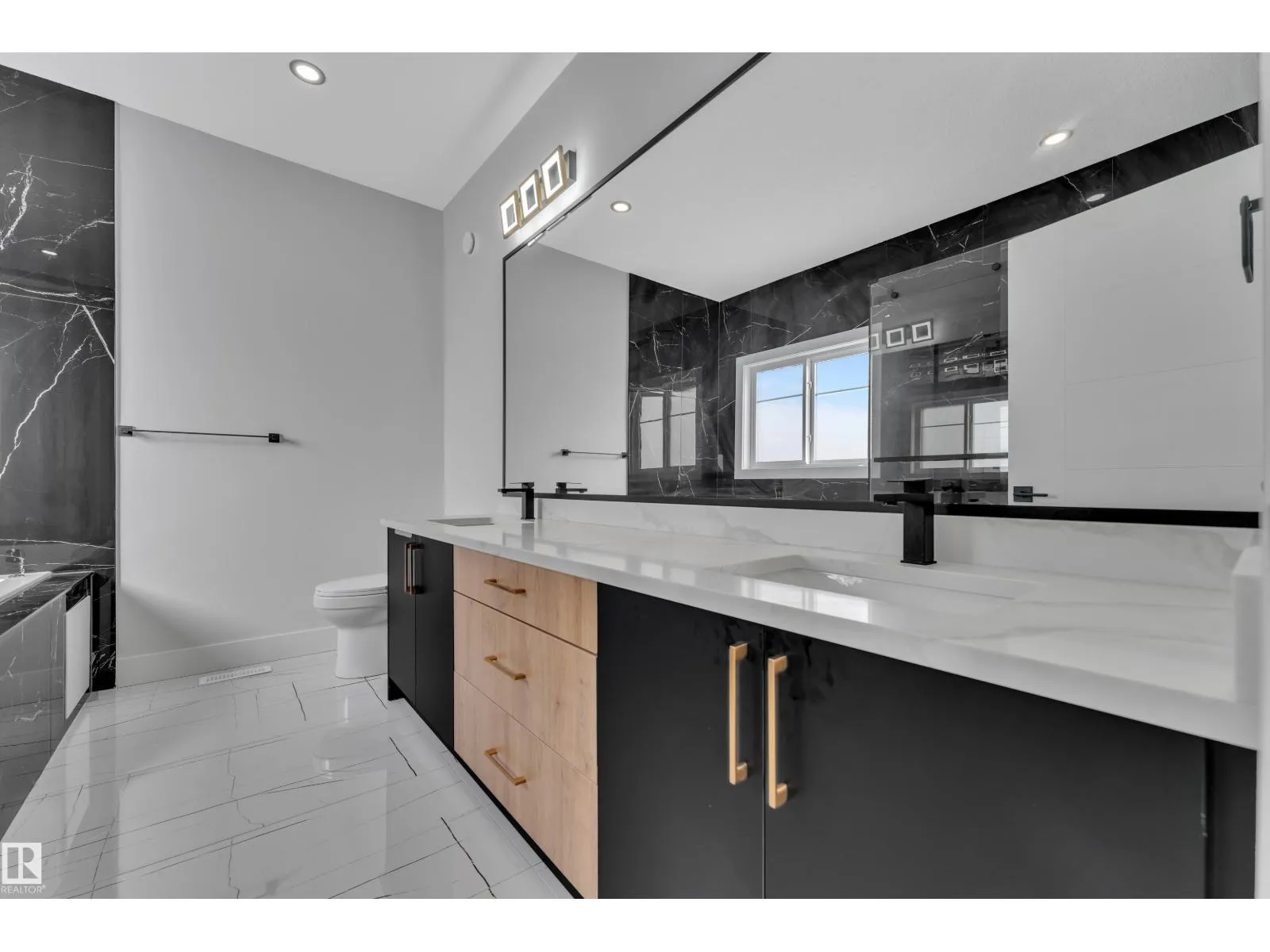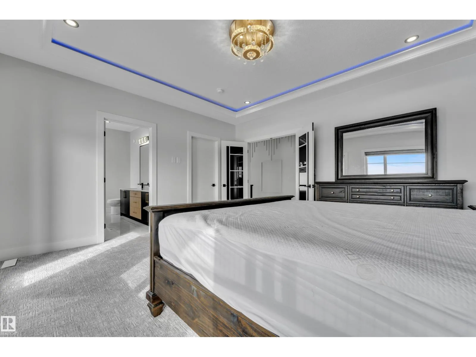 This stunning triple-car garage home sits on a premium 34 ft pocket lot with an exposed driveway. This impressive residence showcases a bright and functional layout designed for modern living.Step through the grand double-door entry into a breathtaking open-to-above foyer that flows into a spacious living area featuring a sleek fireplace and large windows that capture picturesque pond views. The chef-inspired kitchen is beautifully appointed with stainless steel appliances, granite countertops, a central island, and a separate spice kitchen, perfect for everyday cooking and entertaining.The main floor bedroom with a full bath provides a convenient space for guests or extended family. Upstairs, youâll find two luxurious primary suites with private ensuites, along with two additional bedrooms connected by a shared bath and a versatile bonus room ideal for a family lounge, office, or play area. A private balcony off the primary suite overlooks the tranquil pond, creating the perfect retreat. (id:27476)
