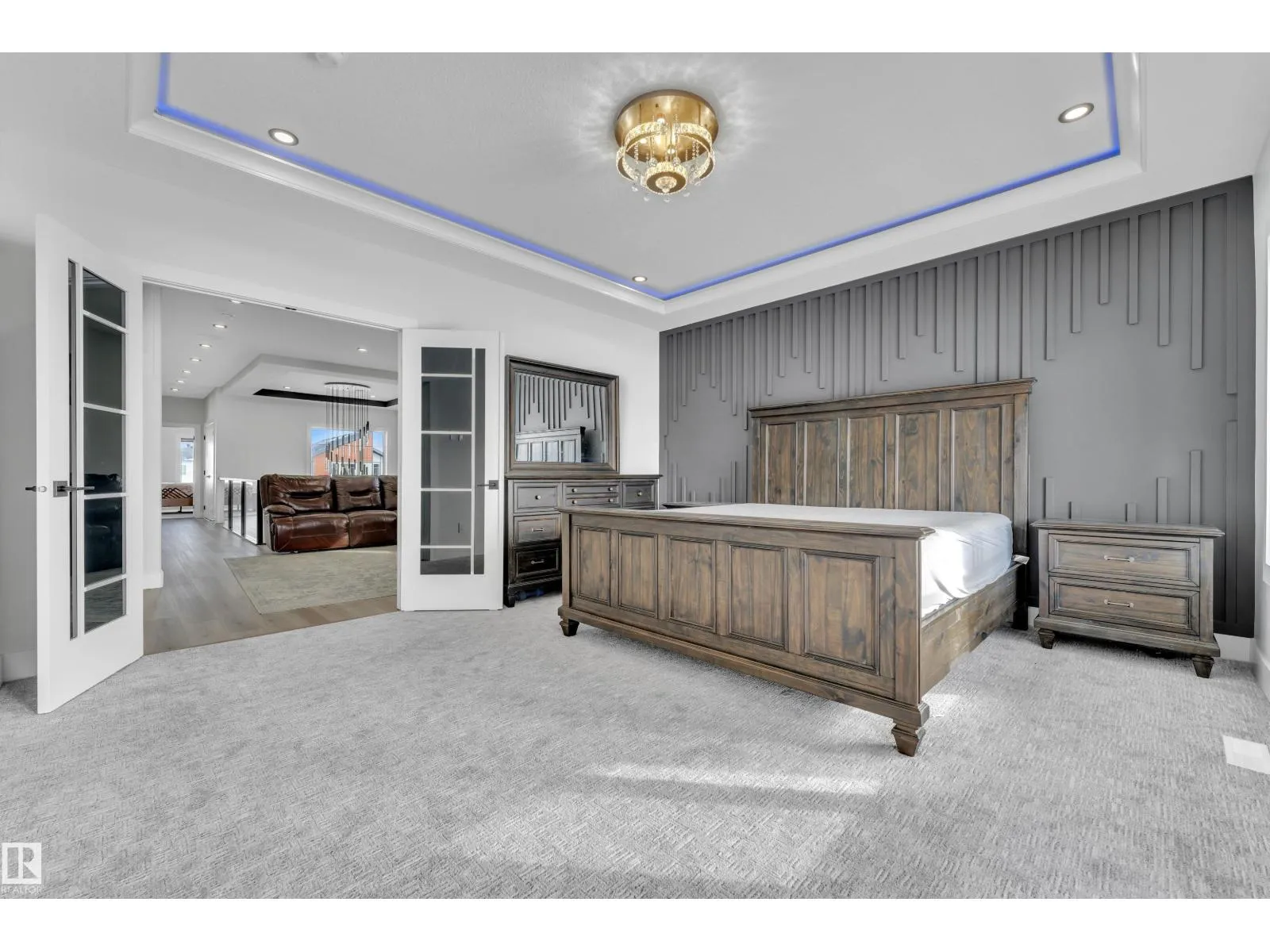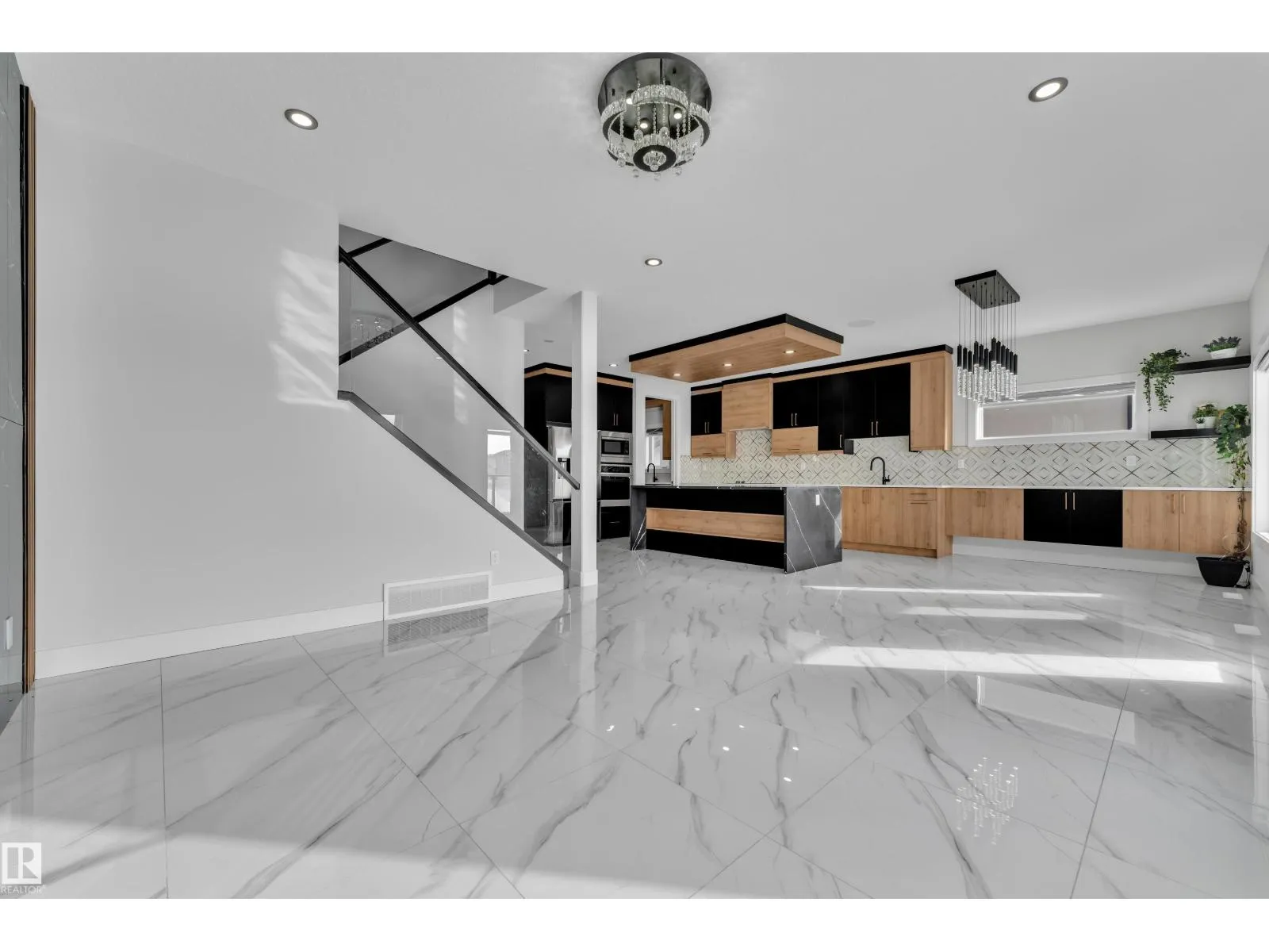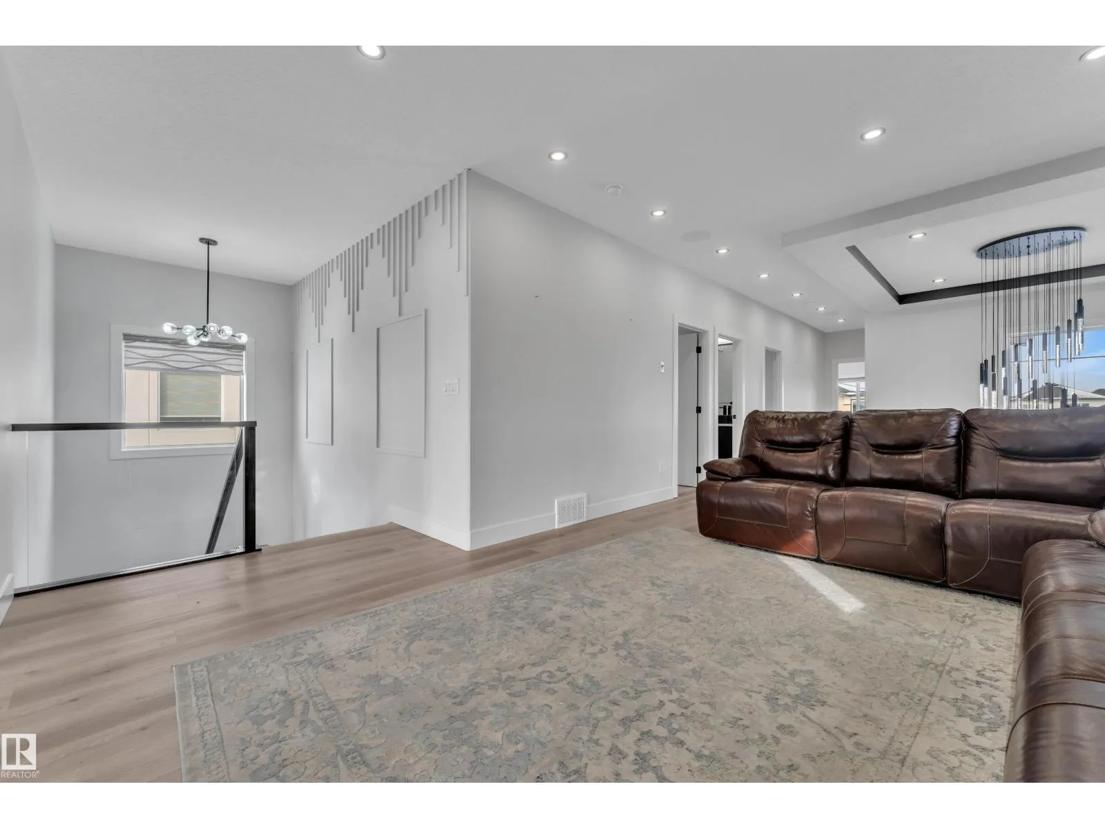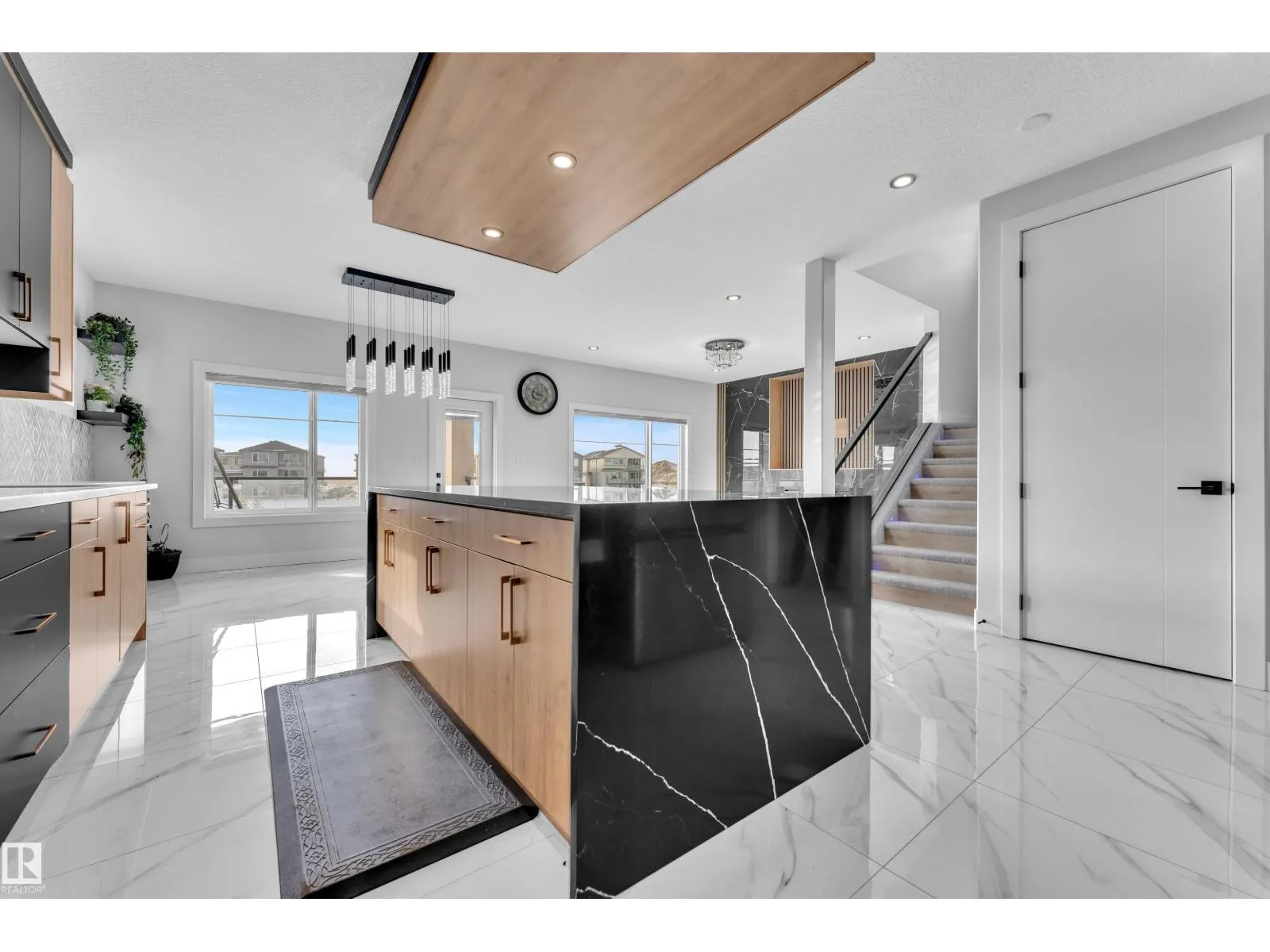 This stunning triple-car garage home sits on a premium 34 ft pocket lot with an exposed driveway. This impressive residence showcases a bright and functional layout designed for modern living.Step through the grand double-door entry into a breathtaking open-to-above foyer that flows into a spacious living area featuring a sleek fireplace and large windows that capture picturesque pond views. The chef-inspired kitchen is beautifully appointed with stainless steel appliances, granite countertops, a central island, and a separate spice kitchen, perfect for everyday cooking and entertaining.The main floor bedroom with a full bath provides a convenient space for guests or extended family. Upstairs, youâll find two luxurious primary suites with private ensuites, along with two additional bedrooms connected by a shared bath and a versatile bonus room ideal for a family lounge, office, or play area. A private balcony off the primary suite overlooks the tranquil pond, creating the perfect retreat. (id:27476)