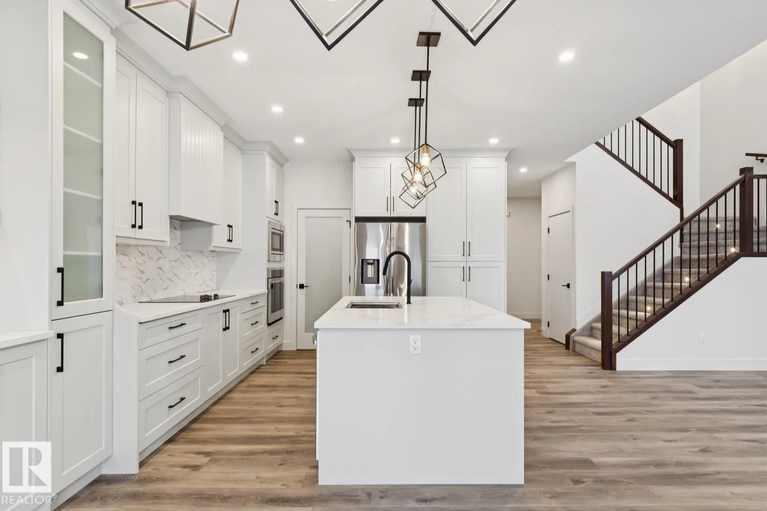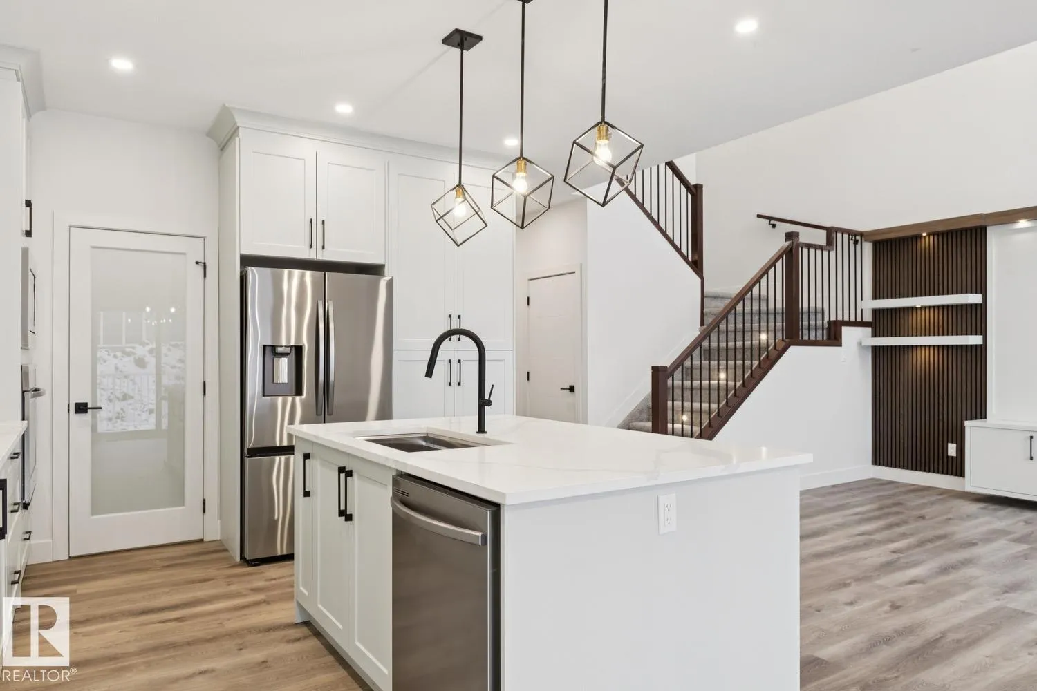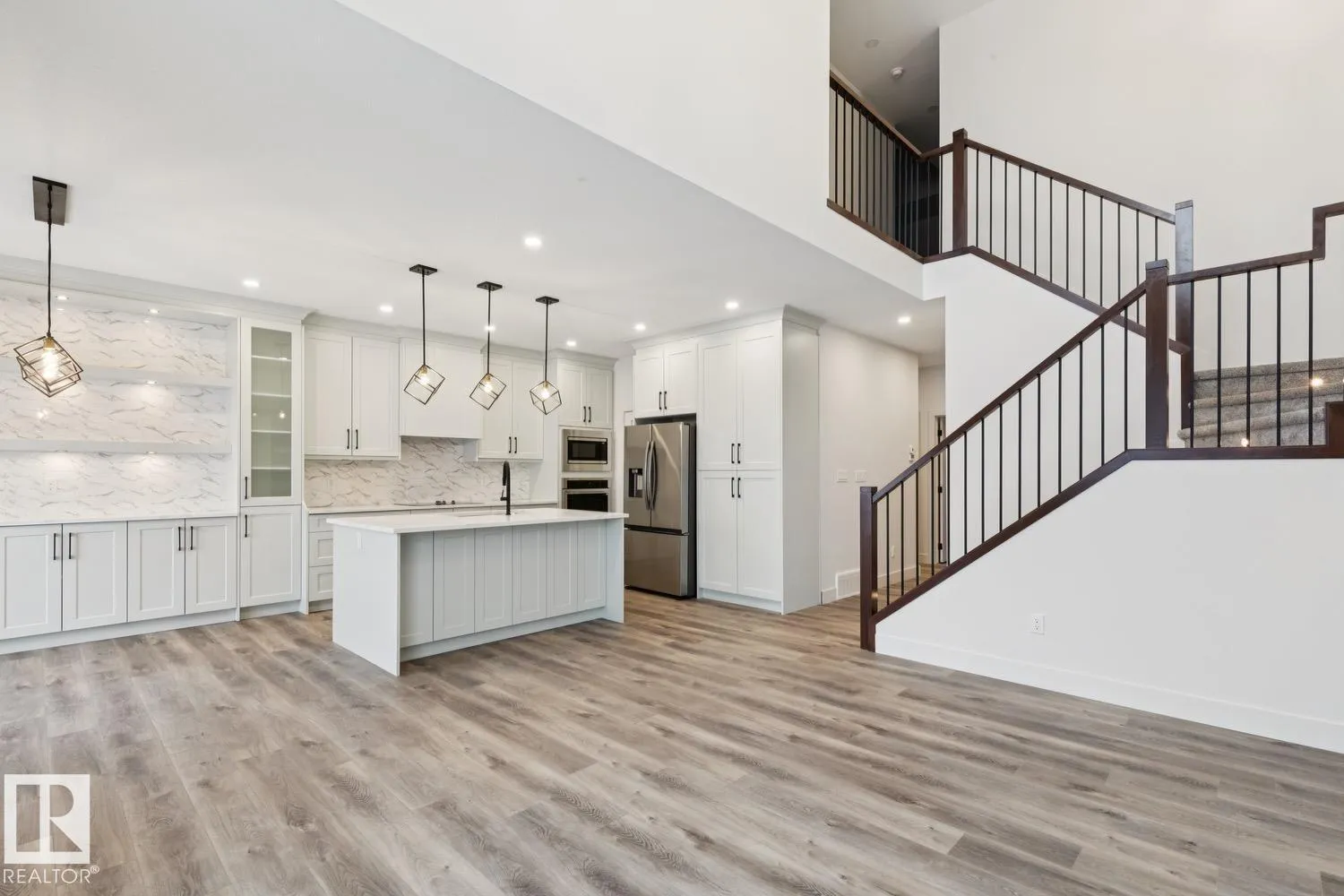 Brand New and finished to perfection! This home has it all, 5 bedrooms, 3 bathrooms, SPICE KITCHEN, OPEN TO BELOW IN LIVING ROOM and SIDE SEPARATE ENTRANCE. This home features beautiful luxury vinyl plank, upgraded plumbing, lighting and more. The functional layout offers a bedroom on the main level which can also be used as a den, a full bath, generous dining area, huge living room with fireplace and a breathtaking kitchen. The custom kitchen features soft close cabinets, quartz countertops and fully equipped with stainless steel appliances. Not to forget, the kitchen also includes a spice kitchen that walks through to the mudroom. The upper level is where you will find the additional 4 bedrooms, 2 full bath, bonus room and laundry. The primary bedroom is absolute stunning and includes its own walk-in closet and beautiful 5pc ensuite with his and her sinks. This home includes a double attached garage and comes with New Home Warranty. This is a must see. (id:27476)