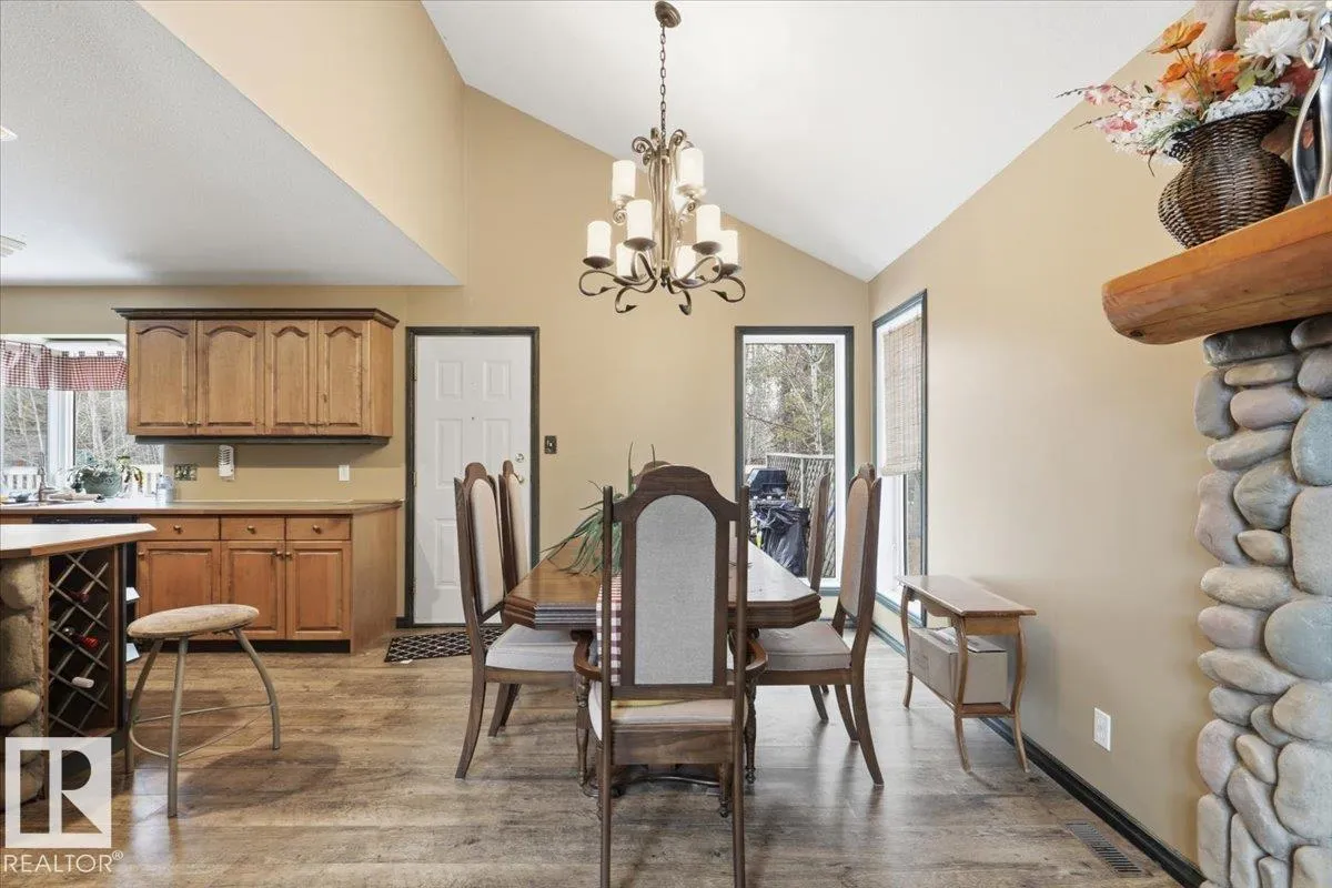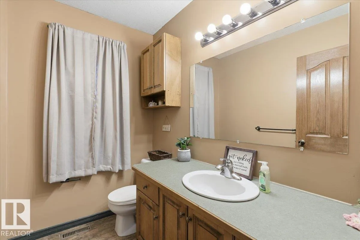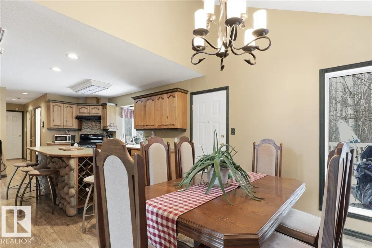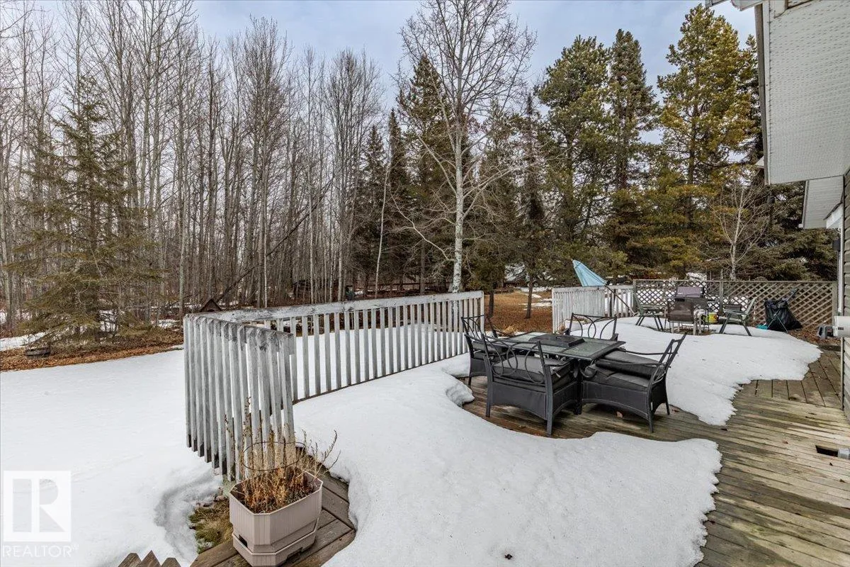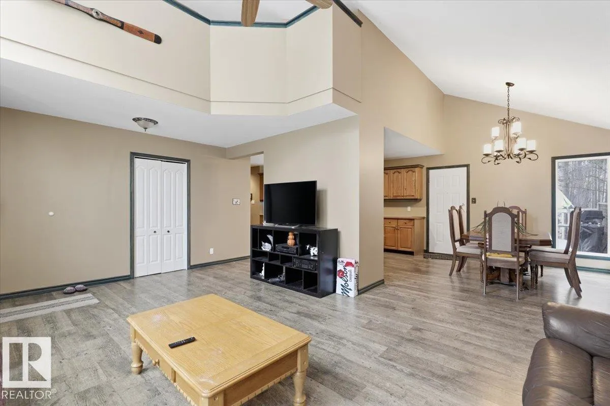 Located within walking distance to the Lake, sits this Country Style 1.5 Storey home with a Triple Detached Garage! Past the front covered deck and inside the home, the spacious living room greets you with large windows, a vaulted ceiling, and a stone fireplace. The kitchen has lots of cabinets, an island, and is open to the dining area. The Primary Bedroom is also situated on the main level with an ensuite bathroom and a make up desk with a sink. Another 2 piece bathroom, and the laundry room conclude the main floor plan. The upper level hosts a loft, office, two more bedrooms, and a 4 piece bathroom. A large deck off the back of the home overlooks the spacious, treed backyard. The large Triple detached garage is heated with a cement floor, power, and has a guest suite off the back. This Property is the perfect blend of country living, and life at the lake! (id:27476)