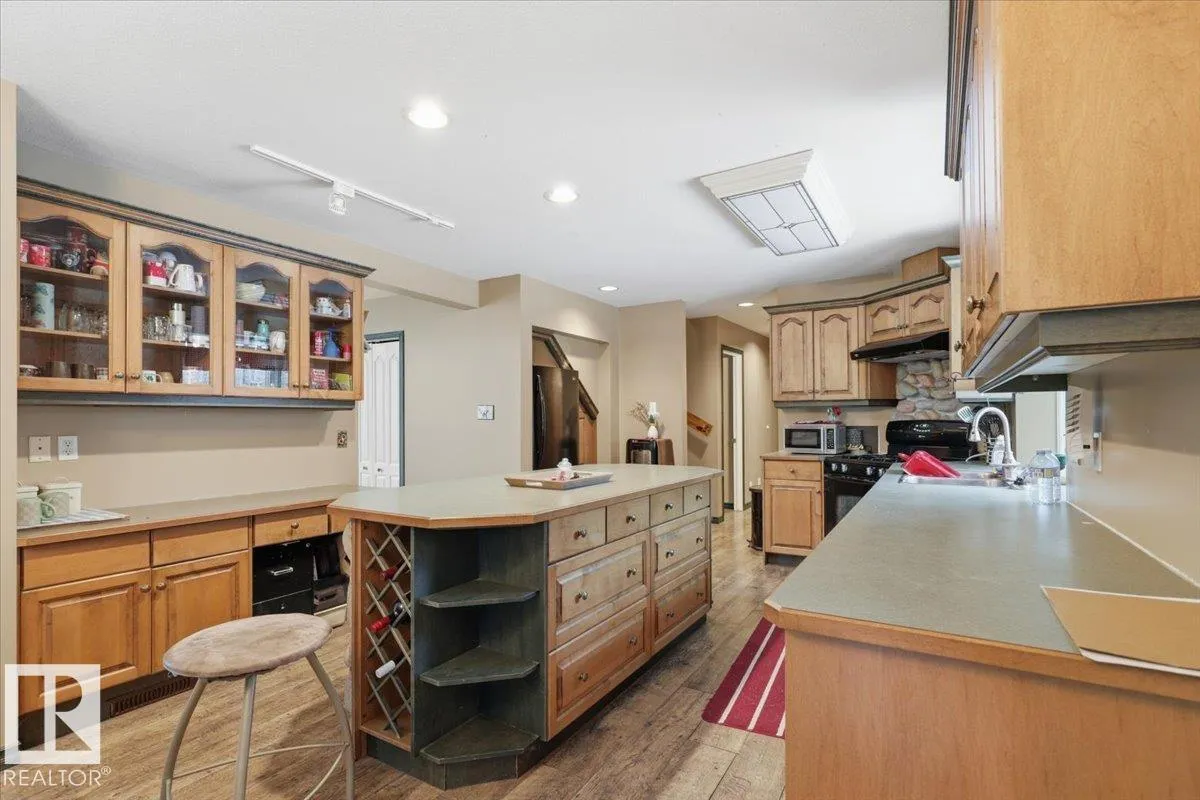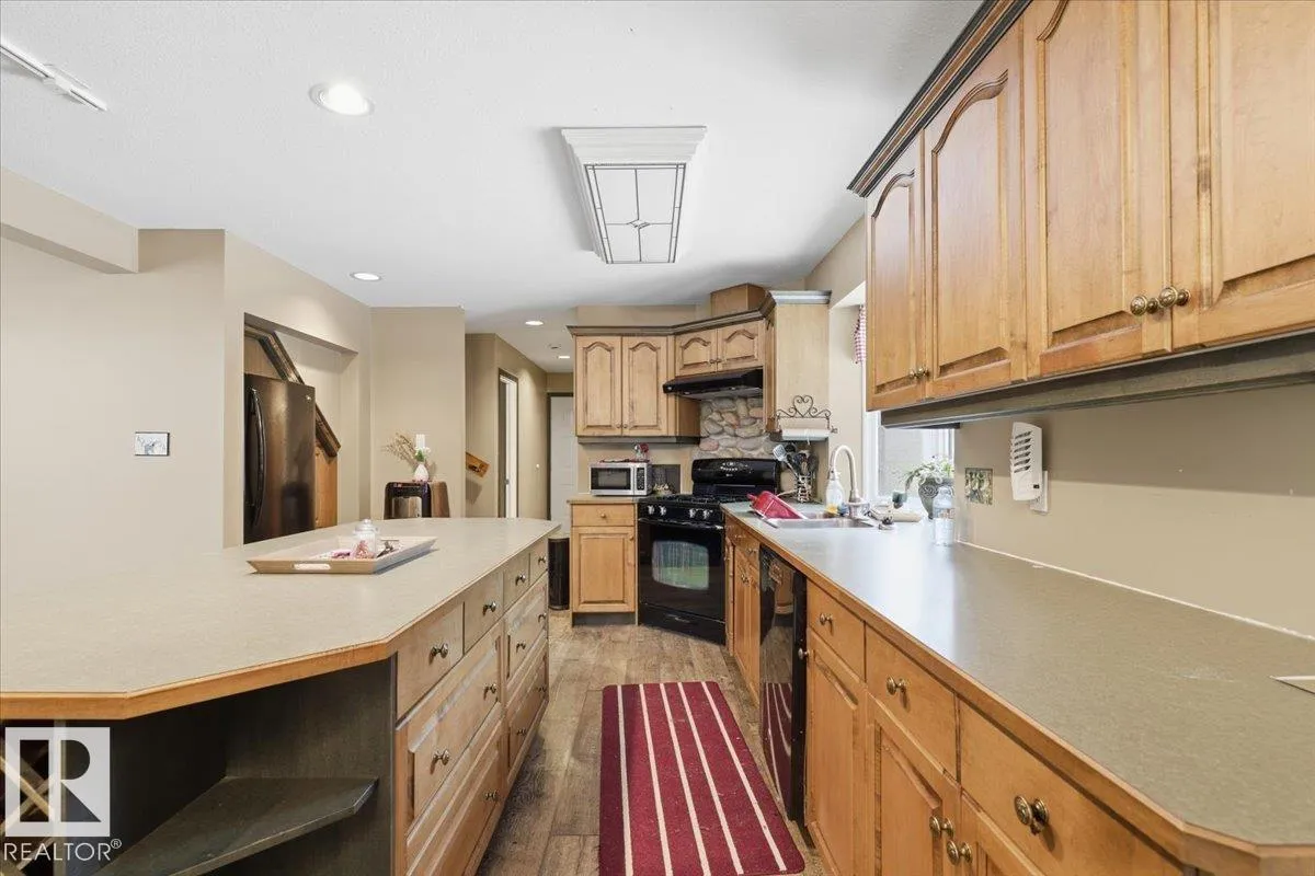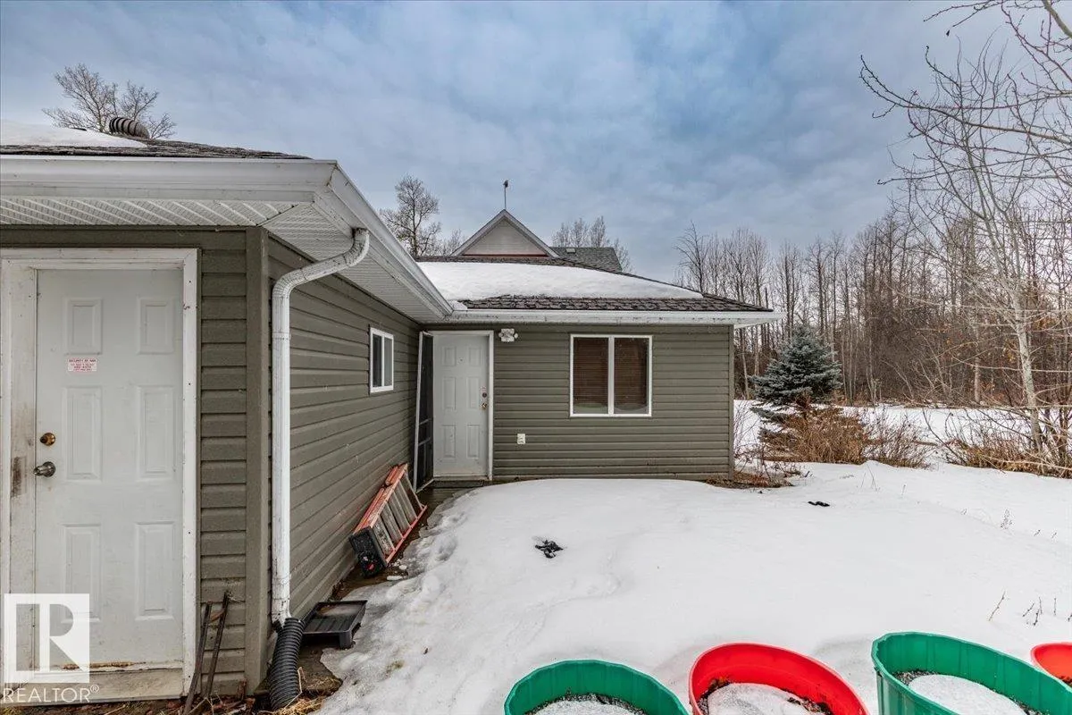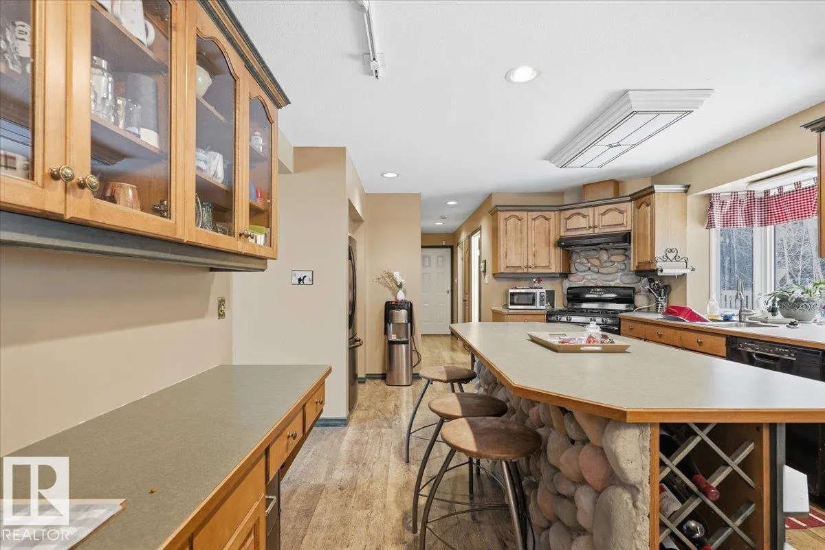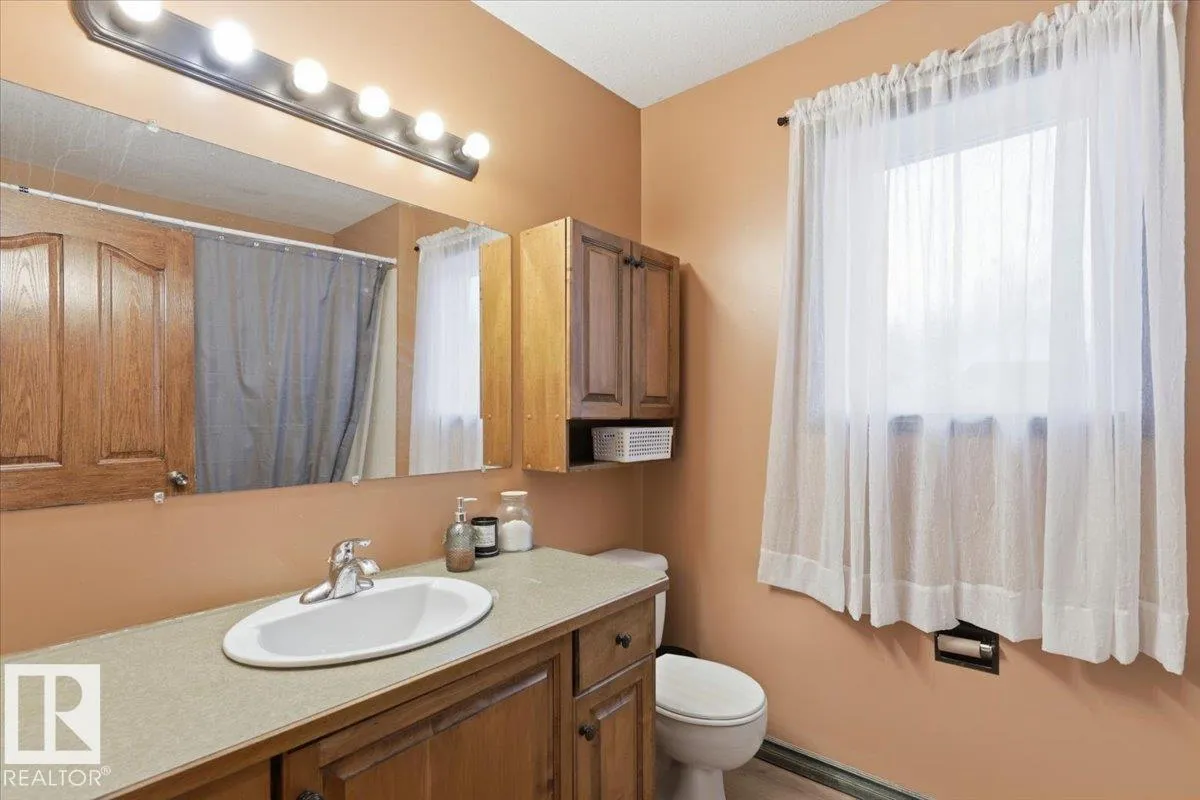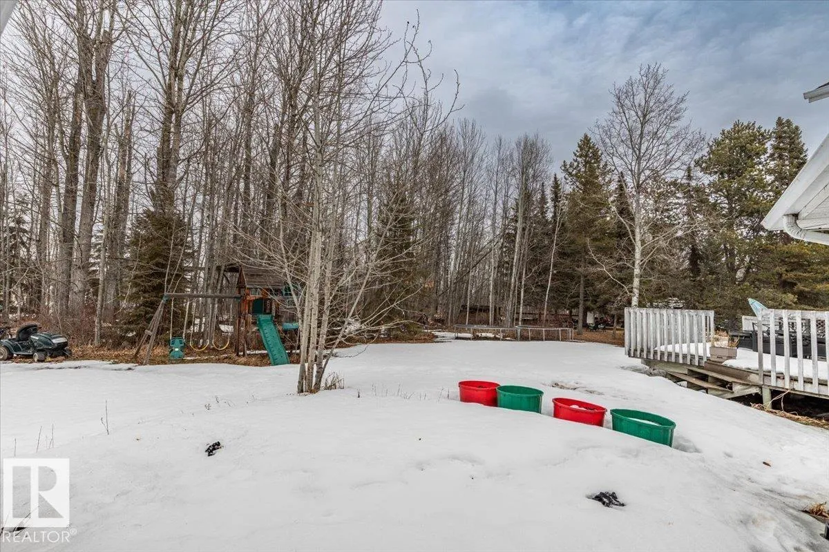 Located within walking distance to the Lake, sits this Country Style 1.5 Storey home with a Triple Detached Garage! Past the front covered deck and inside the home, the spacious living room greets you with large windows, a vaulted ceiling, and a stone fireplace. The kitchen has lots of cabinets, an island, and is open to the dining area. The Primary Bedroom is also situated on the main level with an ensuite bathroom and a make up desk with a sink. Another 2 piece bathroom, and the laundry room conclude the main floor plan. The upper level hosts a loft, office, two more bedrooms, and a 4 piece bathroom. A large deck off the back of the home overlooks the spacious, treed backyard. The large Triple detached garage is heated with a cement floor, power, and has a guest suite off the back. This Property is the perfect blend of country living, and life at the lake! (id:27476)