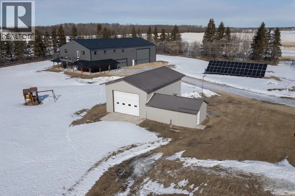 124.53 Acres - Barely a mile off pavement and only 20 minutes to Leduc - 100+/- acres in Canola/Wheat rotation - 2 homes and 3 shops!. This Incredible Property is thoughtfully developed and picturesque - backing a lake with rolling hills and full privacy. First Home is 2021 -Built to Commercial Spec - 50x100 Shouse that includes a 50x50 Shop with 18x24 OH Door, Large Double Garage and a beautiful Two Storey Residence. Over 4300sqft Primary home dazzles with triple pane windows, AC, mixture of infloor heat and forced air, high ceilings, vinyl plank throughout, large rooms and open concept living. Beautiful kitchen sees a huge central island with quartz counters, stainless appliances with double oven, dinette and dining area plus a full walk-in pantry. The main level also sees a huge rear entry and 2pc bath for your convenience. Upper level is finished with 3 massive bedrooms, 2 with full ensuites, huge walk-in closets, dedicated laundry room, additional 4pc bath and second large living room that leads to a private 10x19 upper Deck with soaring South views. Additional outdoor living is enhanced with a fully covered 10x50/10x28 concrete pad complete with potlights for cozy evenings. Secondary Home is a nicely updated 1.5 Storey House on a full basement with 6 bedrooms and has been a proven Air BnB darling. 2020 Built 40x60 Shop is fully finished with a multitude of uses either as additional work/storage space or consider using it for a home based business or entertainment space with it's rustic interior finish and 3 exterior garden doors to a full covered 60ft outdoor gravel patio. You can never have too much storage and that's evident with an older but very useable 3rd heated shop with 12ft overhead door and concrete floor. As an added bonus you can reap the benefits of the 10kW Solar Power System. This is the homestead you've always dreamed of with a multitude of options at your fingertips. Seller will consider subdivision of the yard site only and listing can be fou nd under MLS A2295803. (id:27476)