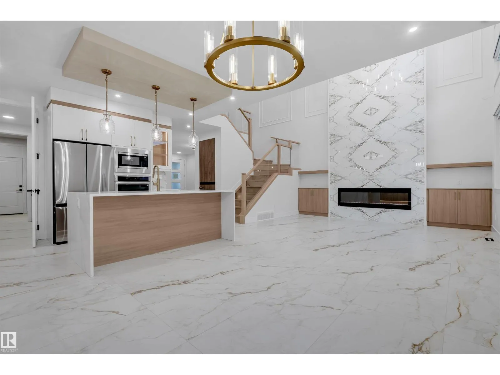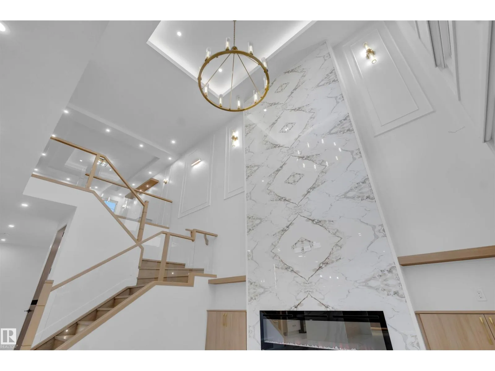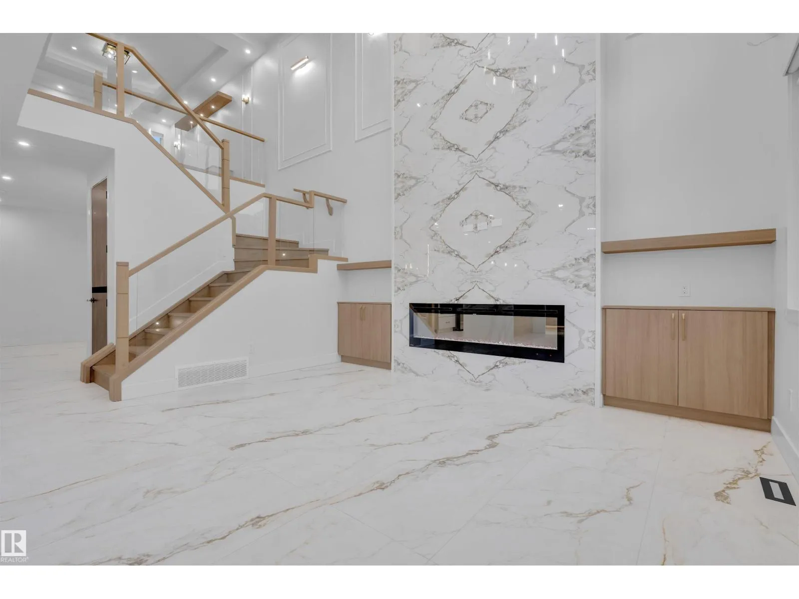 BRAND NEW | MOVE-IN READY | PREMIUM UPGRADES Stunning 2,700+ sq. ft. home on a rare 28-pocket lot with all appliances and blinds included. Features a custom extended kitchen plus spice kitchen, upgraded quartz countertops, and a waterfall island. Grand 9-ft ceilings and 8-ft doors. Main floor offers a bedroom with closet and 3-piece bath. Open-to-above living area with feature wall and electric fireplace. Glass-railed staircase with step lighting leads upstairs to a luxurious primary suite with 5-piece ensuite, plus two bedrooms with attached upgraded baths, a bonus room, and separate prayer room. Includes side entrance with potential for a 2-bedroom legal basement suite. Just 20 minutes from the airport. (id:27476)