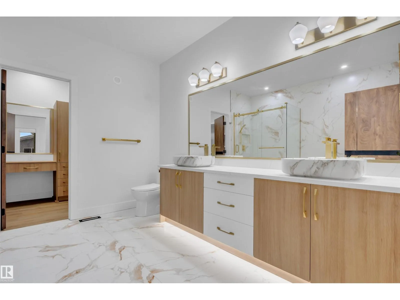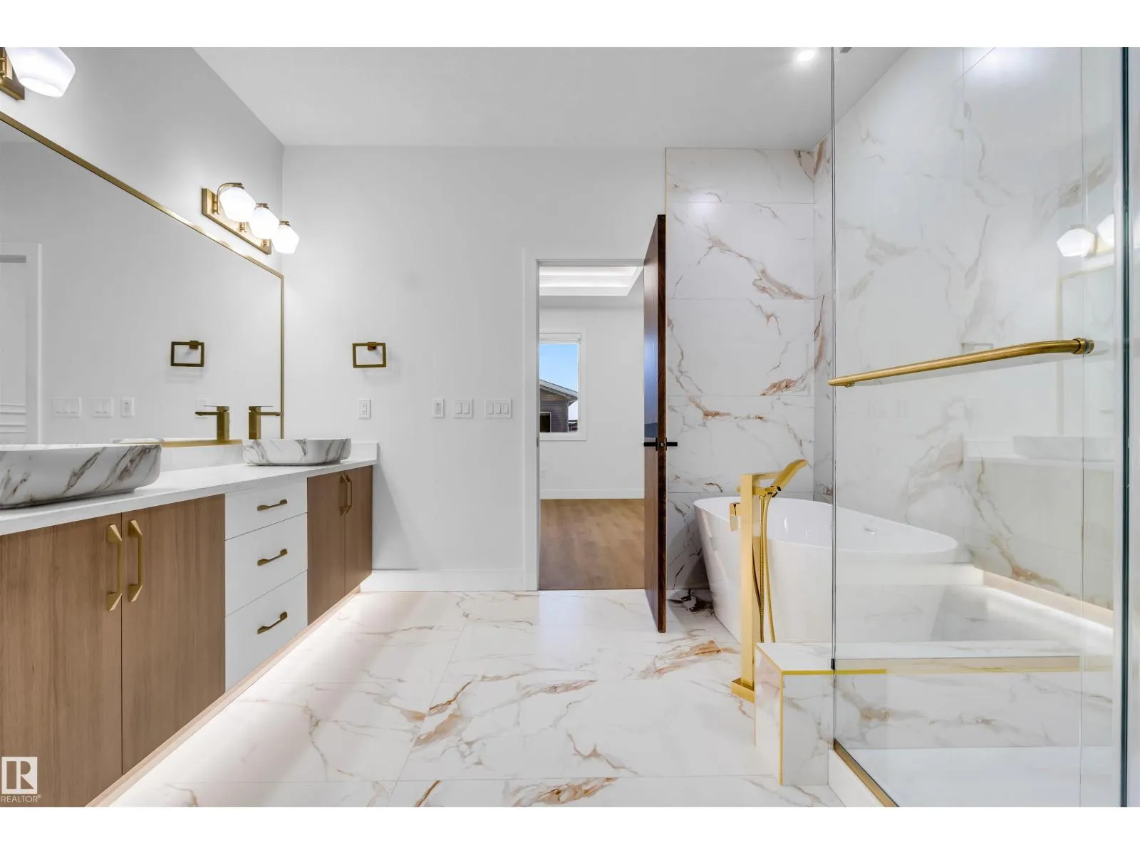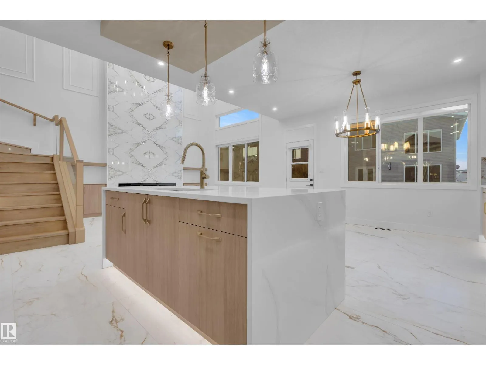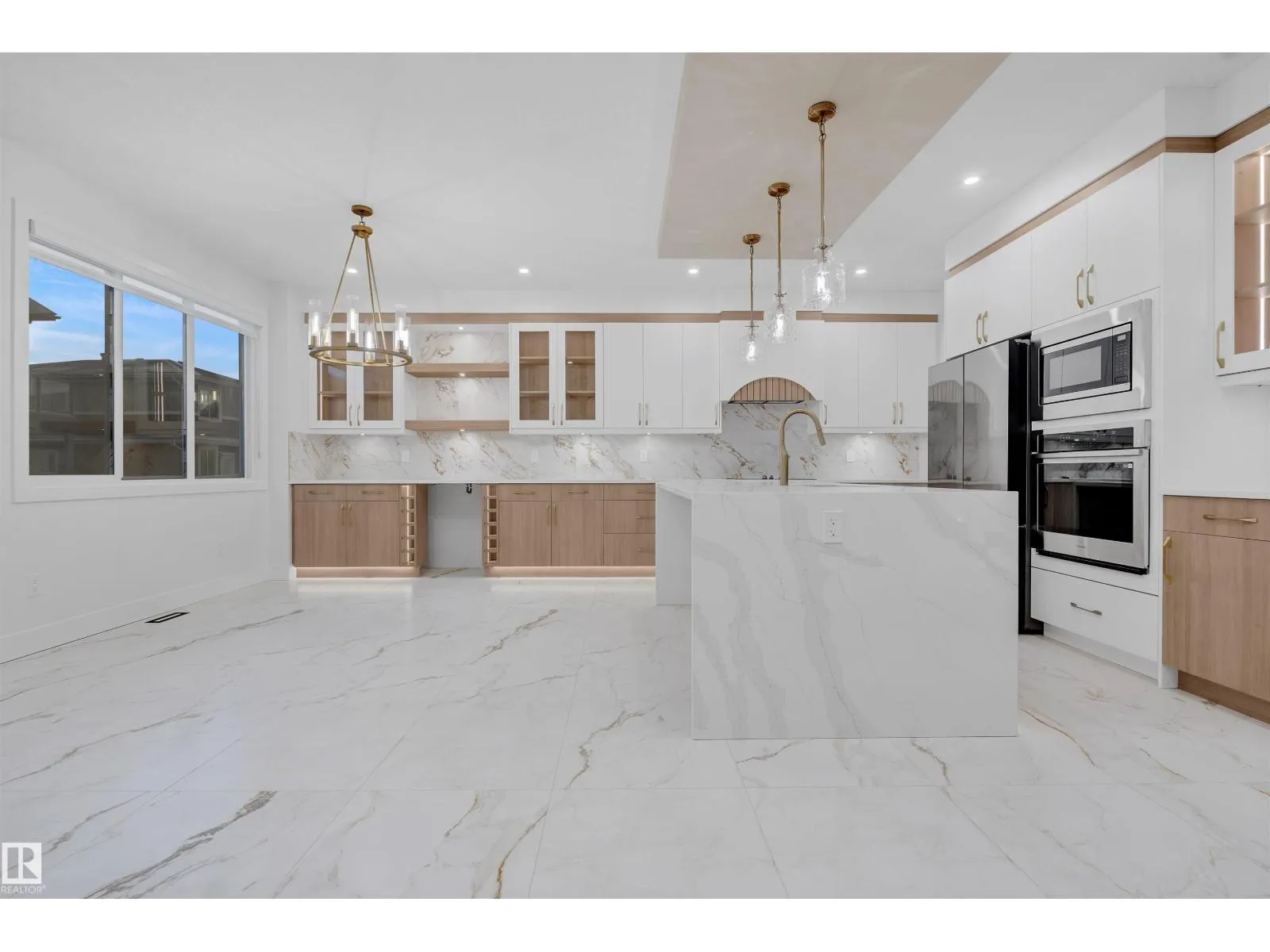 BRAND NEW | MOVE-IN READY | PREMIUM UPGRADES Stunning 2,700+ sq. ft. home on a rare 28-pocket lot with all appliances and blinds included. Features a custom extended kitchen plus spice kitchen, upgraded quartz countertops, and a waterfall island. Grand 9-ft ceilings and 8-ft doors. Main floor offers a bedroom with closet and 3-piece bath. Open-to-above living area with feature wall and electric fireplace. Glass-railed staircase with step lighting leads upstairs to a luxurious primary suite with 5-piece ensuite, plus two bedrooms with attached upgraded baths, a bonus room, and separate prayer room. Includes side entrance with potential for a 2-bedroom legal basement suite. Just 20 minutes from the airport. (id:27476)