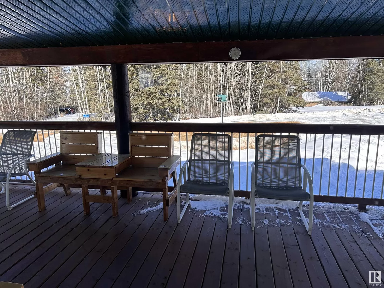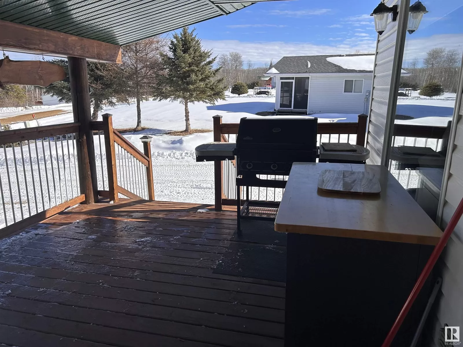 Welcome to SERENE country living! The seller is also including 1/4 OWNERSHIP of a PRIVATE DOCK! Located in the natural Alberta bush with the most gorgeous sunsets, beautiful beach area, camping and year round fishing. Whether your looking for a weekend retreat or a quiet retirement home, this is a MUST SEE! Right off Fawcett Lake, and the famous Fawcett Lake Resort known for its Walleye fishing, quad country and 4 wheel ATV's, this property is also located on the Trans Canada trail. This gorgeous one owner home comes FULLY FURNISHED, NEVER SMOKED IN, with NO PETS and has been taken care of immaculately. From the metal roof, the spray foam insulation, to the beautiful pine treated deck, pine hardwood throughout the main floor, you see the warmth, care and love throughout. The main floor highlights include Master Bedroom with ensuite, laundry room, second bedroom, kitchen with like new appliances. Basement is FULLY FINISHED with a huge flex room, bar, and another fully furnished bedroom, and bathroom. (id:27476)