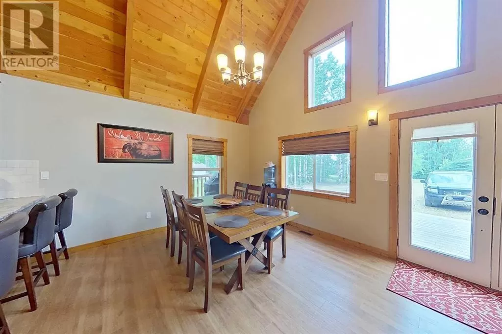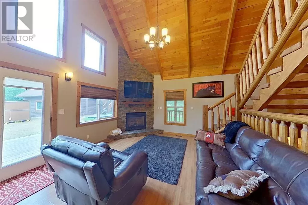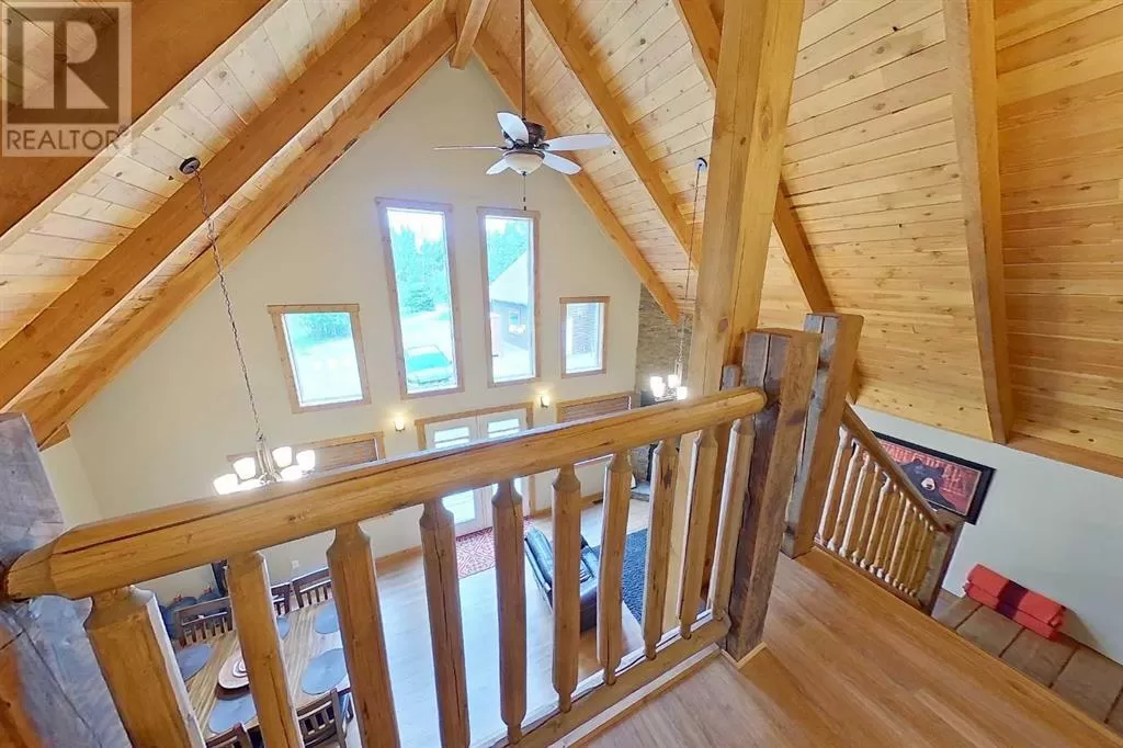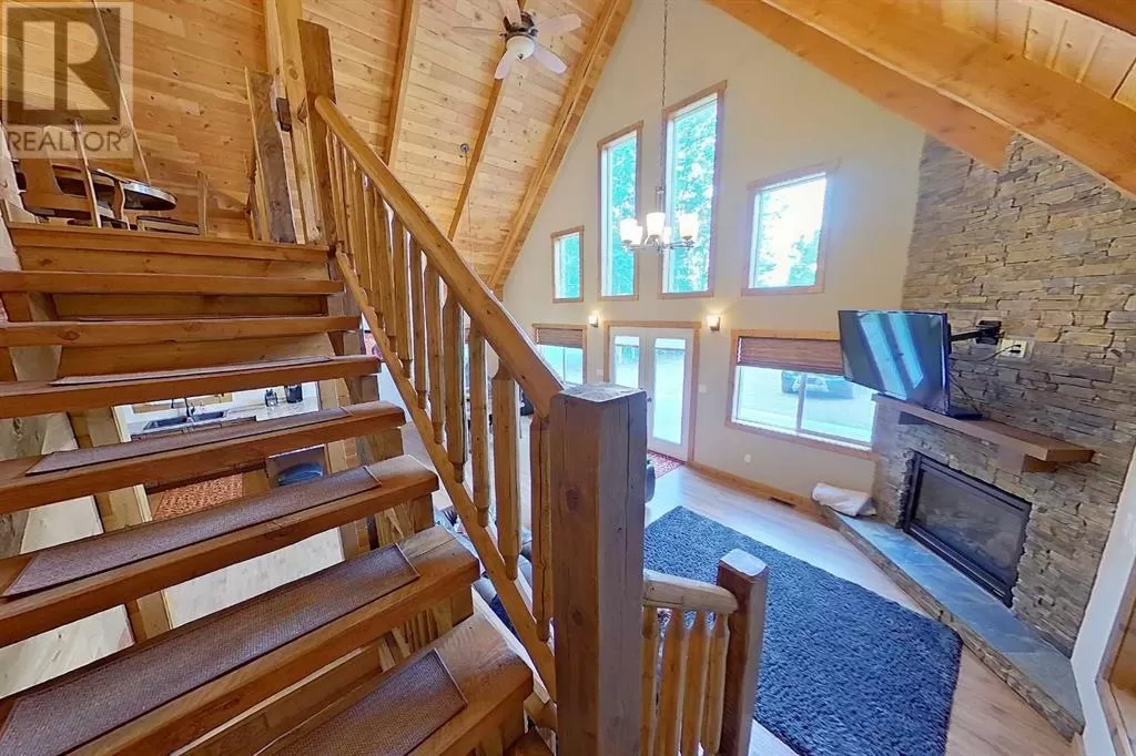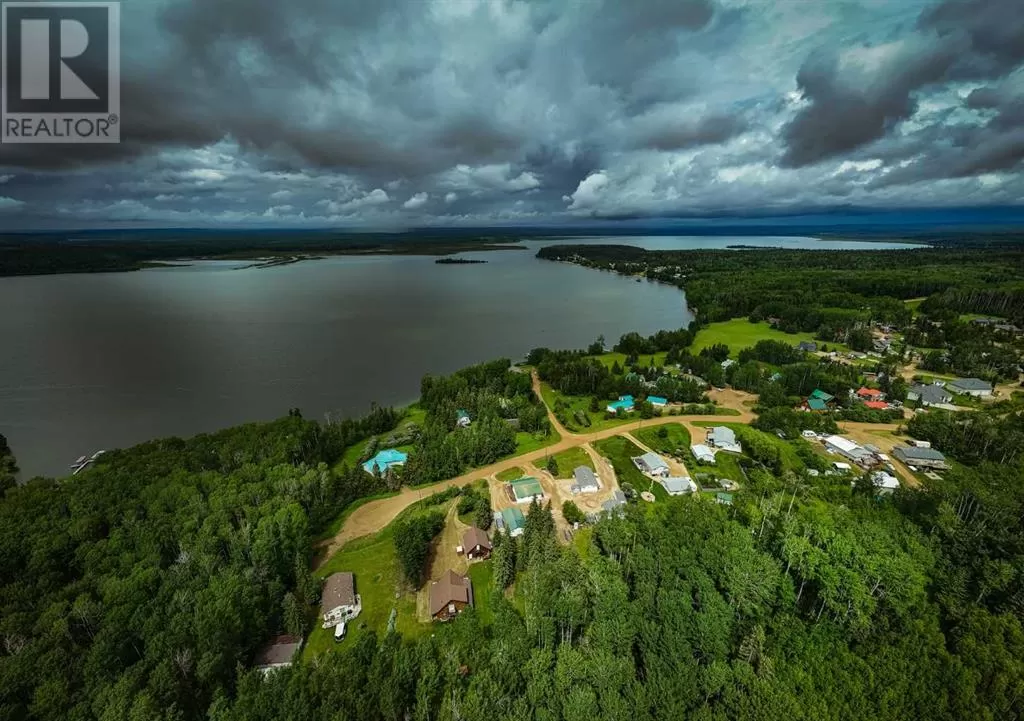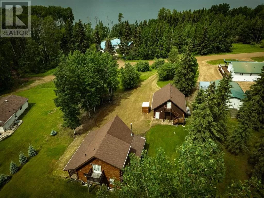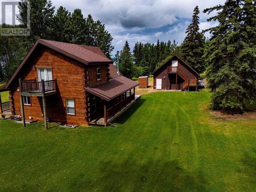 Broken Paddle Estates, one of Alberta's best kept secrets... along the shores of Fawcett Lake. This Charming custom built 3 Bedroom 1.5 Storey home sites on a very private lot. The exterior of the home is sided with split logs, has two covered porches and a deck. Partially finished basement with ICF Foundation. Inside you'll be wowed by the pine accents and details found throughout. Laminate flooring, Vaulted Ceiling with Pine Accents in the open concept Living/Dining and Kitchen. Living room has plenty of windows, a corner gas fireplace with stone accents and patio doors that open to a large deck. Spacious Dining Area and Kitchen with dark cabinets, eating bar and black appliances. Main floor also has a Bedroom, 4 Pc Bath and Laundry. Beautiful staircase with pine spindles takes you to the upper floor, a sitting area overlooks the Living room. Walk into the cozy Primary Bedroom, with Pine accented Vaulted ceiling, wall mounted electric fireplace, a 3 Pc Ensuite and patio door that opens to the balcony with great views. The Basement is partially developed, with a Rec/Games room, Bedroom, Roughed-In Bath and the Utility Room...materials are there to get most of it finished. The home is accessible 12 months of the year and has its own well, and is connected to natural gas and power. The Detached Double garage, with room for the vehicles and toys also has a unfinished loft with outside access. Lot backs onto undeveloped land behind. A short walk to the boat dock for some of the best water sports and fishing. Green space in front of the lake is open for all residents to enjoy. Great trails in the area for quadding and sledding. Located just 35 mins to Smith, 1.25 hrs to Slave Lake and less than 3 hrs to Edmonton. Room for all the family any time of the year. This gem is waiting for you, don't miss it. (id:27476)
