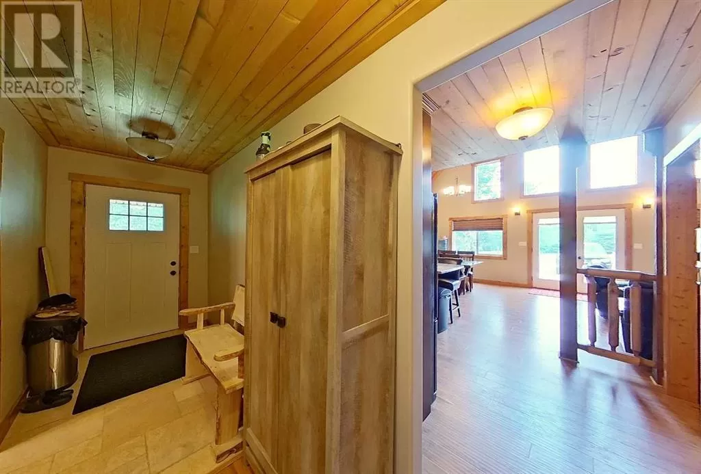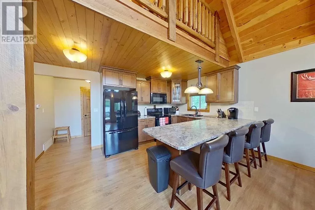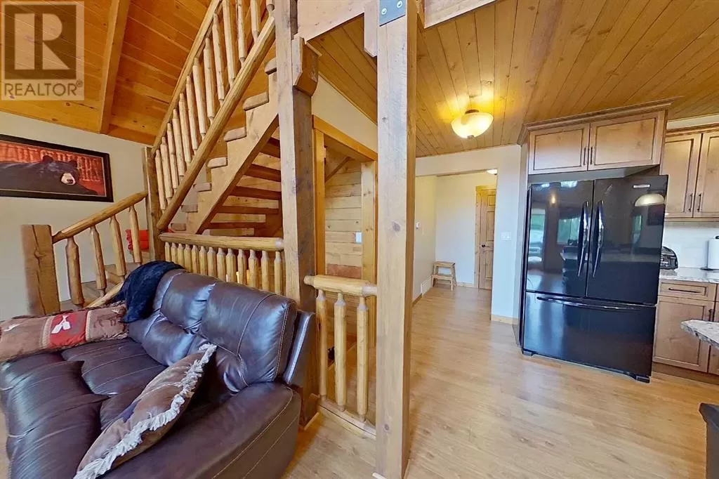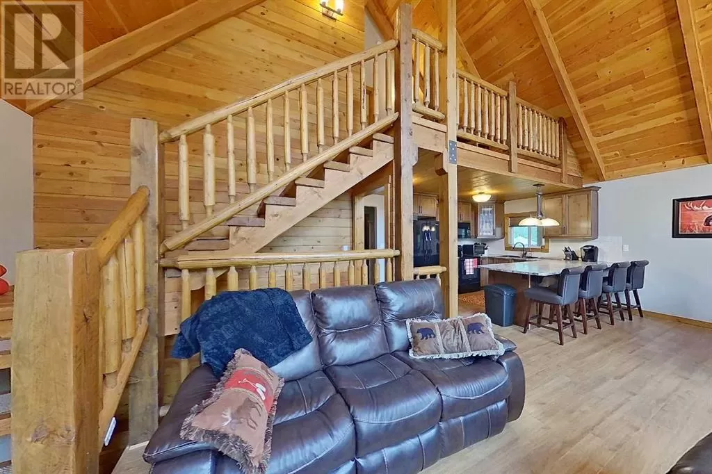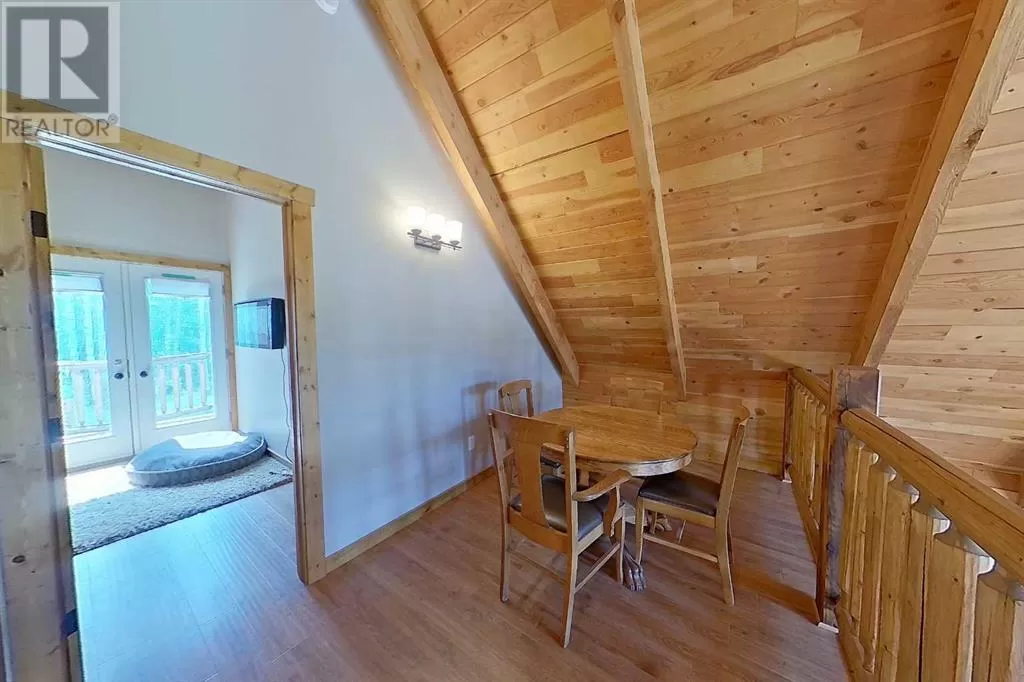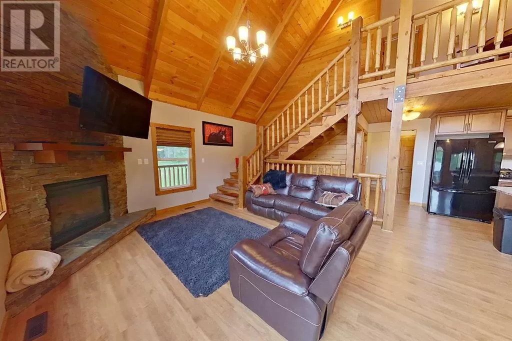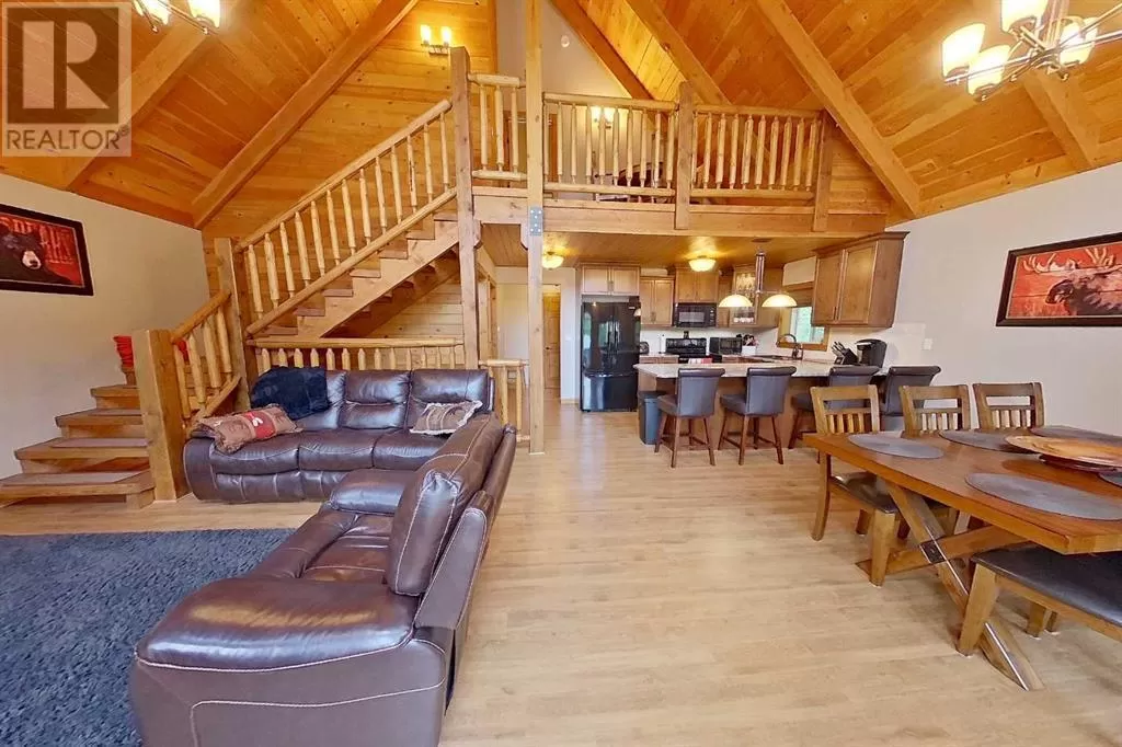 Broken Paddle Estates, one of Alberta's best kept secrets... along the shores of Fawcett Lake. This Charming custom built 3 Bedroom 1.5 Storey home sites on a very private lot. The exterior of the home is sided with split logs, has two covered porches and a deck. Partially finished basement with ICF Foundation. Inside you'll be wowed by the pine accents and details found throughout. Laminate flooring, Vaulted Ceiling with Pine Accents in the open concept Living/Dining and Kitchen. Living room has plenty of windows, a corner gas fireplace with stone accents and patio doors that open to a large deck. Spacious Dining Area and Kitchen with dark cabinets, eating bar and black appliances. Main floor also has a Bedroom, 4 Pc Bath and Laundry. Beautiful staircase with pine spindles takes you to the upper floor, a sitting area overlooks the Living room. Walk into the cozy Primary Bedroom, with Pine accented Vaulted ceiling, wall mounted electric fireplace, a 3 Pc Ensuite and patio door that opens to the balcony with great views. The Basement is partially developed, with a Rec/Games room, Bedroom, Roughed-In Bath and the Utility Room...materials are there to get most of it finished. The home is accessible 12 months of the year and has its own well, and is connected to natural gas and power. The Detached Double garage, with room for the vehicles and toys also has a unfinished loft with outside access. Lot backs onto undeveloped land behind. A short walk to the boat dock for some of the best water sports and fishing. Green space in front of the lake is open for all residents to enjoy. Great trails in the area for quadding and sledding. Located just 35 mins to Smith, 1.25 hrs to Slave Lake and less than 3 hrs to Edmonton. Room for all the family any time of the year. This gem is waiting for you, don't miss it. (id:27476)