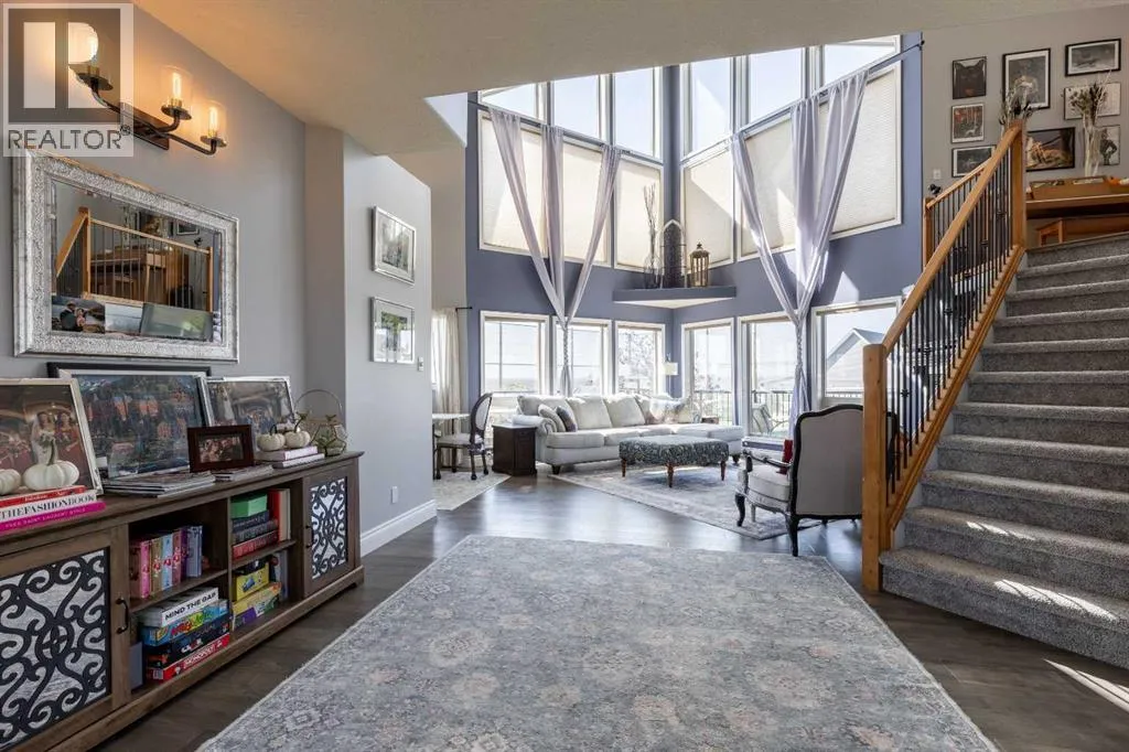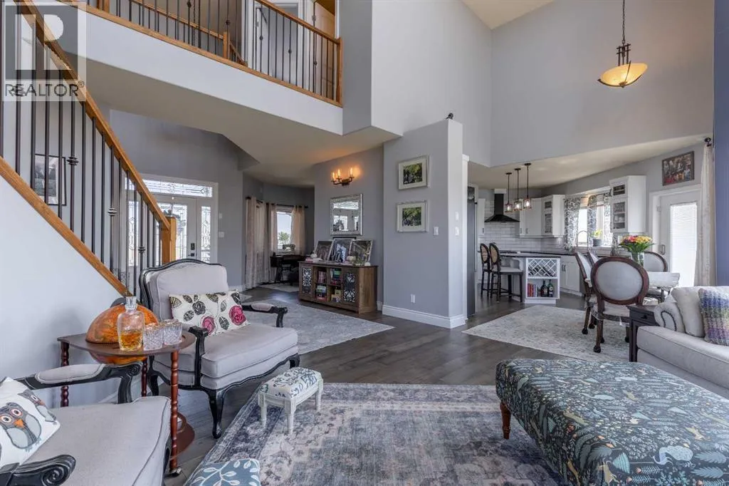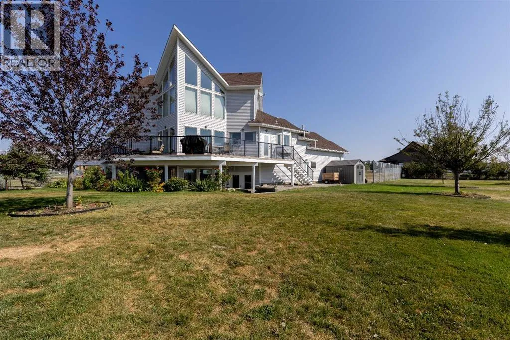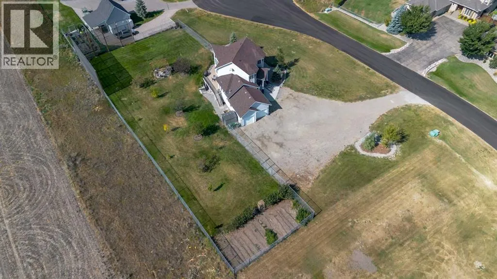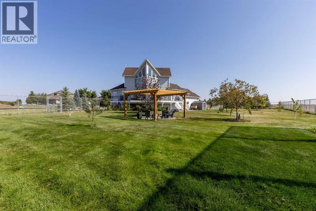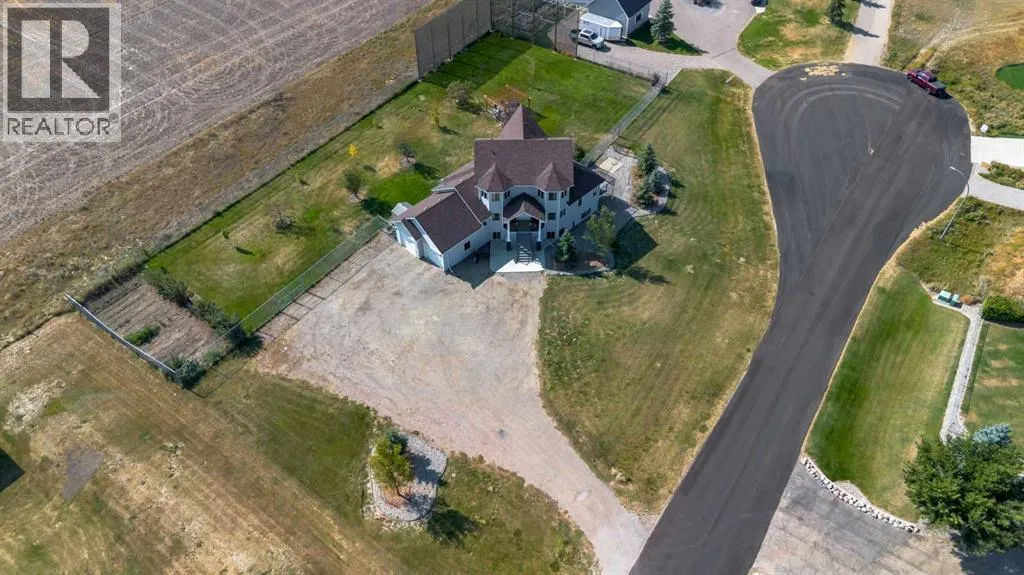 A stunning home in Mountain Meadows - a pristine community just west of Lethbridge that offers unobstructed coulee and mountain views, 1 acre lot size and peaceful country living. This 5 bed, 3.5 bath 2 storey boasts soaring ceilings, a walk-up to grade basement and plentiful parking! Stepping inside the grand entrance, there's an office/flex space, a huge living room with tons of natural light and a gas fireplace, granite adorned kitchen, powder room and walk-through mudroom. The primary suite enjoys a 4 piece ensuite with soaker tub and a massive walk-in closet! Heading upstairs there are 2 additional bedrooms that share a 4 piece bathroom. The basement has 9' ceilings, a bright family room with direct access to the covered patio, 2 more bedrooms, laundry room with sink, 3 piece bathroom and storage space! There's a ton of deck space, a gazebo protected by wind screen, fenced yard and more! (id:27476)
