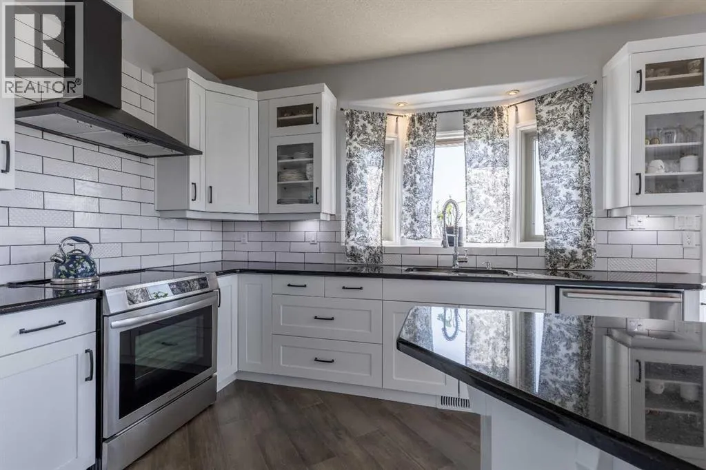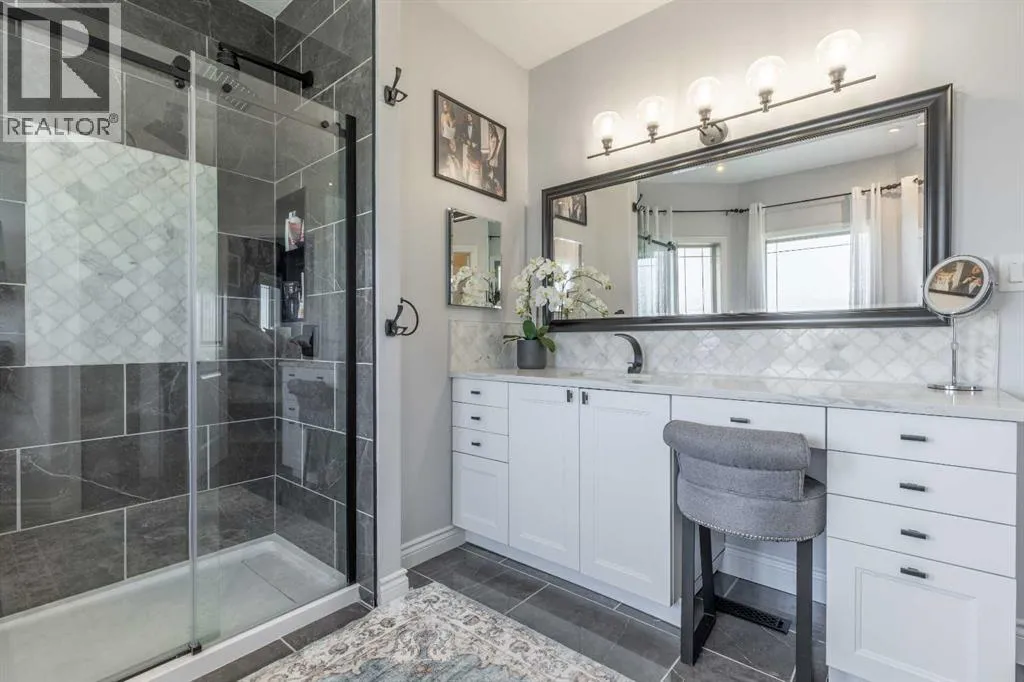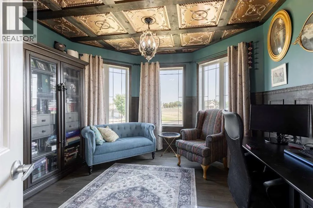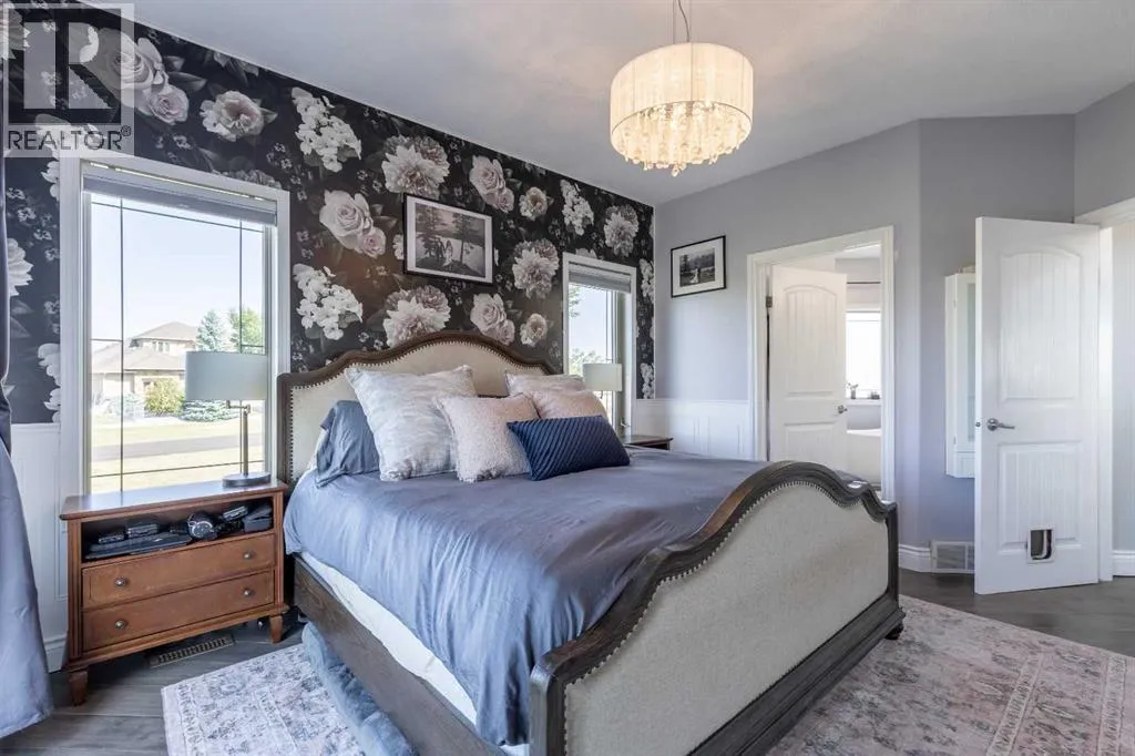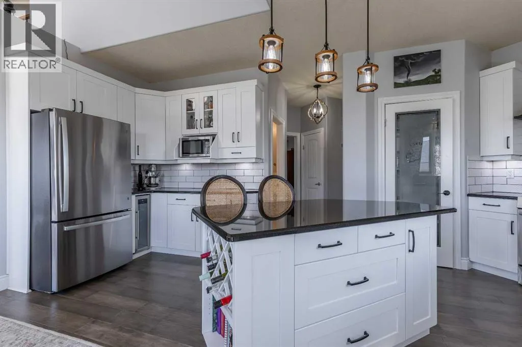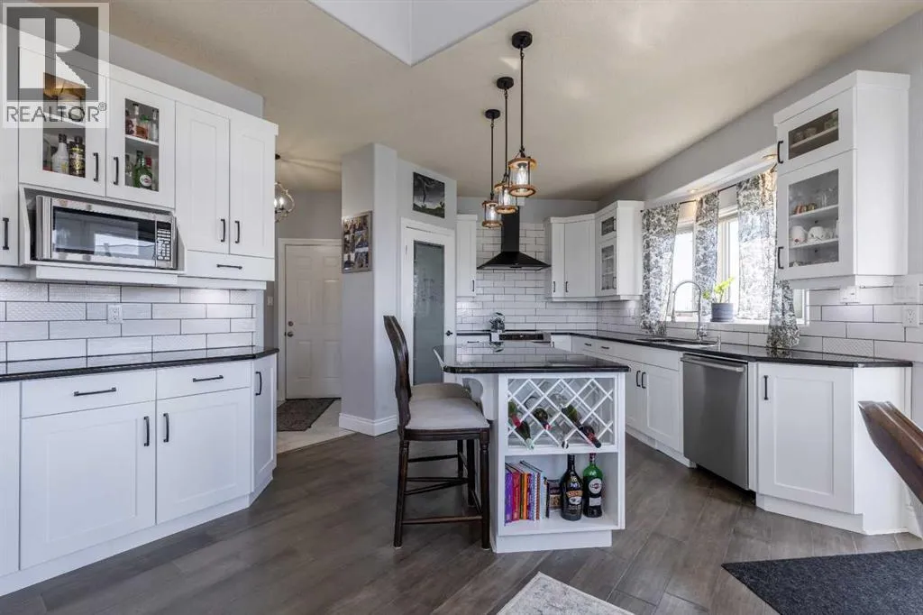 A stunning home in Mountain Meadows - a pristine community just west of Lethbridge that offers unobstructed coulee and mountain views, 1 acre lot size and peaceful country living. This 5 bed, 3.5 bath 2 storey boasts soaring ceilings, a walk-up to grade basement and plentiful parking! Stepping inside the grand entrance, there's an office/flex space, a huge living room with tons of natural light and a gas fireplace, granite adorned kitchen, powder room and walk-through mudroom. The primary suite enjoys a 4 piece ensuite with soaker tub and a massive walk-in closet! Heading upstairs there are 2 additional bedrooms that share a 4 piece bathroom. The basement has 9' ceilings, a bright family room with direct access to the covered patio, 2 more bedrooms, laundry room with sink, 3 piece bathroom and storage space! There's a ton of deck space, a gazebo protected by wind screen, fenced yard and more! (id:27476)