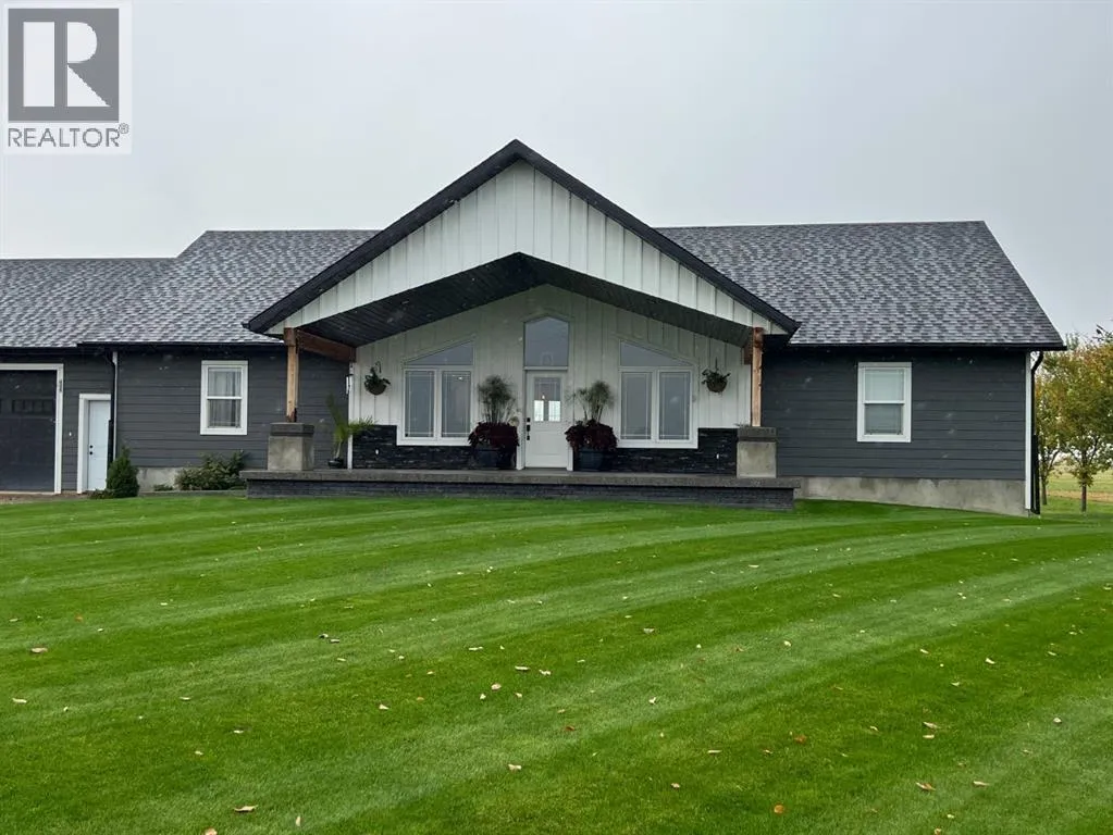 Have you been dreaming of living on an acreage close to Coaldale, AB? Take a closer look at this custom built 2023, 4 bedroom, 3 bathroom, bungalow, with a 28 x 32 double car attached garage, on 2.57 acres! Located 3 miles (5km) east of Coaldale, with only .75 miles (1.2km) of gravel, this home has everything you need for country living. Approaching the property, notice the semi mature trees, well landscaped yard and beautiful home. Come up on the, east facing covered, concrete patio and enjoy the countryside view of fields and blue skies. Enjoy every sunrise whether inside, or out here. Step inside and explore, leaving your shoes and worries behind. This custom home defines well-thought-out. The open concept living room and dining room, features a vaulted ceiling with pot lights and plenty of windows to let in a generous amount of natural light. Itâs large but still feels like home. Continuing the open concept, the kitchen features 4 Stainless Steel Appliances, modern lighting, a pantry/prep room, plenty of soft-close cabinets and a window facing the backyard to enjoy the sunsets. Beyond the living room are 3 bedrooms. The 1st bedroom is a good size with a walk-in-closet, the 2nd bedroom is a fair size with a large walk-in-closet and would make a fantastic office, project or baby room. Lastly, the primary bedroom is plenty large enough for a king suite of furniture and features a large walk-in-closet and an ensuite with double sinks and a large tiled step in shower. Moving across the home to towards the garage is a 4th good size bedroom with a walk-in-closet. Here you will also find the access to the basement, the laundry room and the 4 pc main bathroom. In the basement is a fully finished 3rd 4pc bathroom, 2 unfinished bedrooms, with walk-in-closets. There is also a cold room to be finished and a large area for a future family room. Heading out to the large garage, there is plenty of room for 2 full size vehicles and some room to spare. Step out the garage backdoo r to the back patio and enjoy the sunsets here, a fire pit, and a fenced wind break. The property also features a horse shelter, close to 2 acres of pasture, a cistern large enough to last 6-9 months, underground sprinklers, and a large garden with great soil. Come and see this beautiful acreage today, only a few minutes from Coaldale, with all the features of country living! It wonât last long! (id:27476)