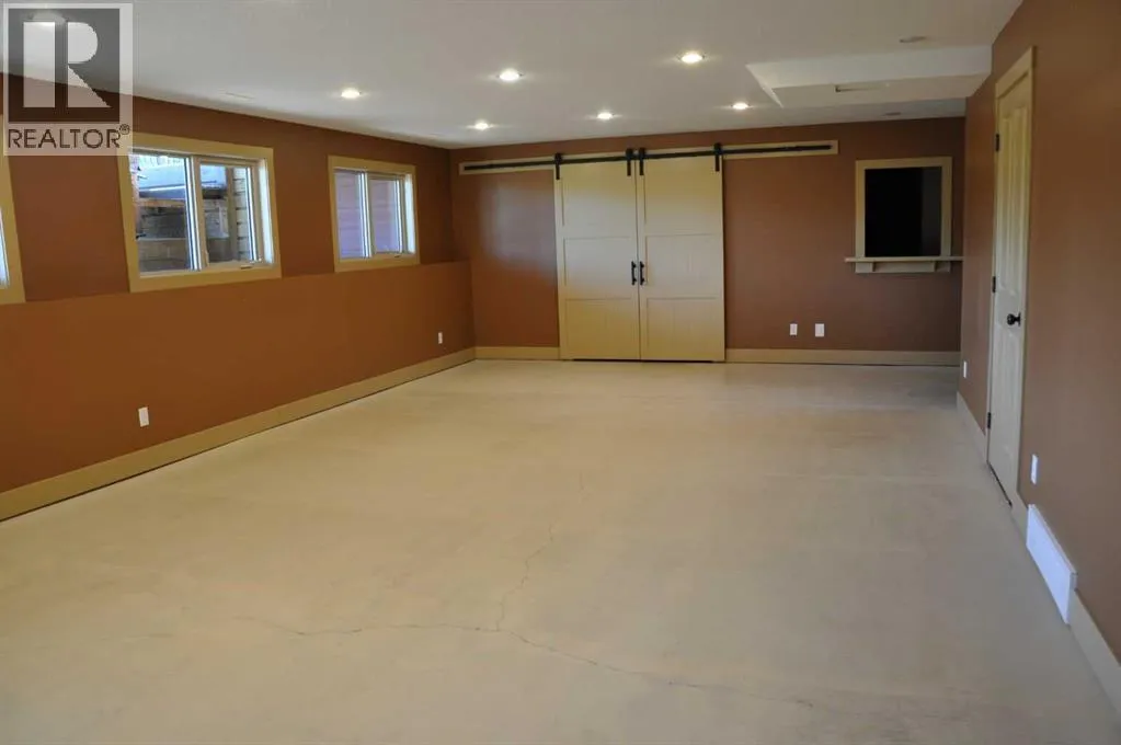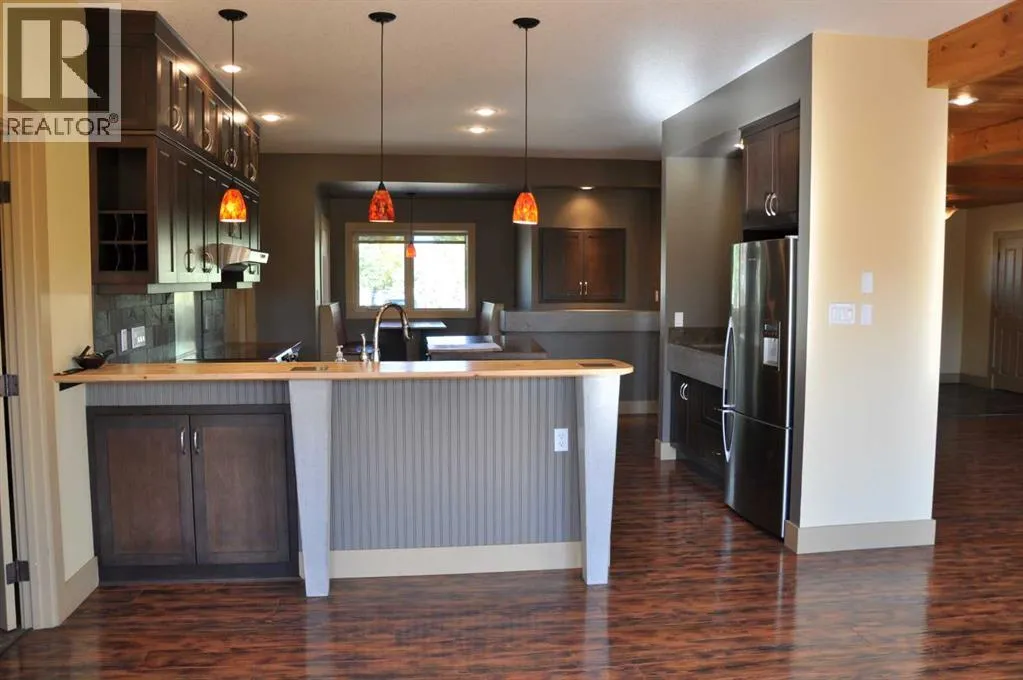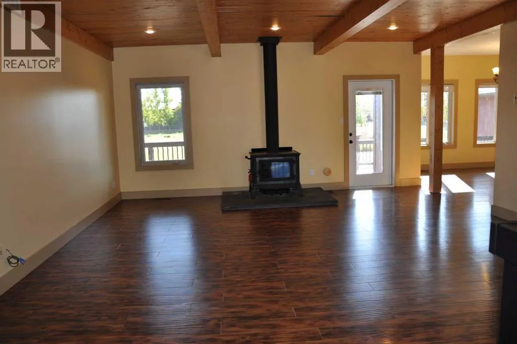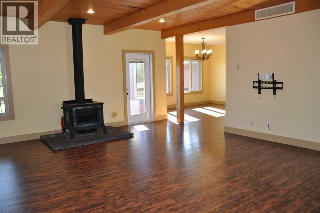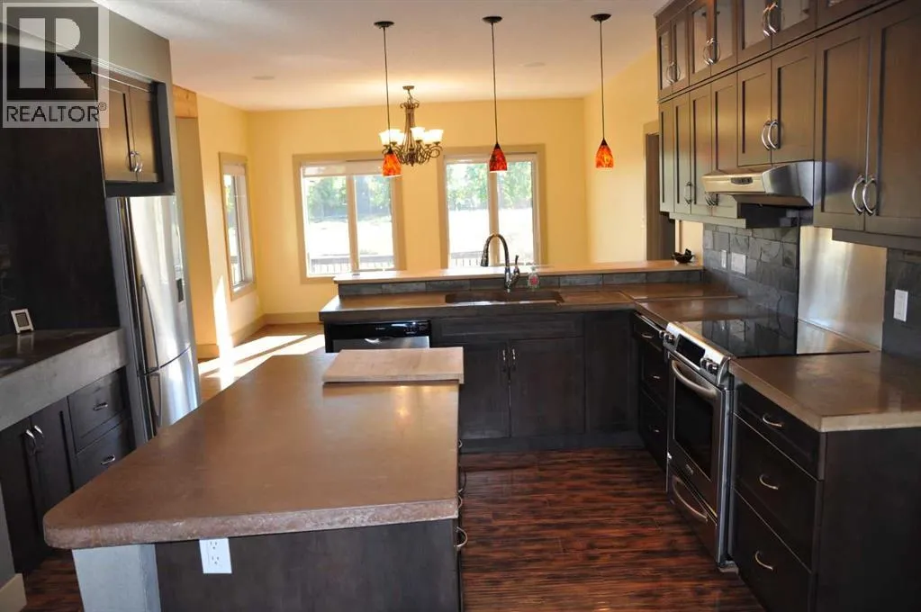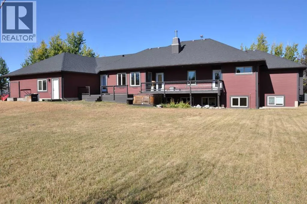 A beautiful custom built bungalow that welcomes you with style and warmth. Situated on 2.77 acres there are panoramic country views from every window. Solid fir steps lead you into the large foyer with slate tiles. The warmth of spruce beams and a wood burning stove welcome you into the living room. The spacious kitchen has a coffee station, a seating nook and concrete counters that give ample work space. The pantry truly is a walkin pantry that can store food staples and kitchen appliances to delight any gourmet cook. An abundance of maple kitchen cupboards line the kitchen walls. Large dining room windows look out onto the deck and the fields behind the house. Next to the kitchen is the main floor laundry room and mudroom with custom built coat lockers. Then this area leads out to the 30x50 garage and workshop which is any man's dream space. Down the hall from the living room is a den, and 2 bedrooms with walkin closets. The primary bedroom opens out onto the deck and has a spacious ensuite with walkin closet. The lower level has a massive rec room that could accomodate any number of recreation tables. The media room that can easily seat 6-8 reclining chairs is ready for your family or friends movie nights. 2 additional bedrooms with large windows make them bright and inviting for family or guests. A 4 pc. bathroom, large storage room and flex room for exercise equipment/crafts, complete the lower level. The walk out basement makes access to the back yard and decks quick and convenient. The acreage has a firepit with a stack of firewood and lots of room for motorcycle track or horses. 2 decks line the back of the home to enjoy the sunshine for entertaining and barbecuing. A curved deck along the front of the home is a perfect place to curl up on a cushioned bench. A shelter belt of trees line the acreage on 3 sides. The convenience of City water has been added for a worry free water source. With the acreage only being 10 minutes outside of the City it is conv enient for all the City amenities without giving up your country lifestyle. It is on a quiet road with little traffic. Come and make this your country home. Quick possession is possible. (id:27476)