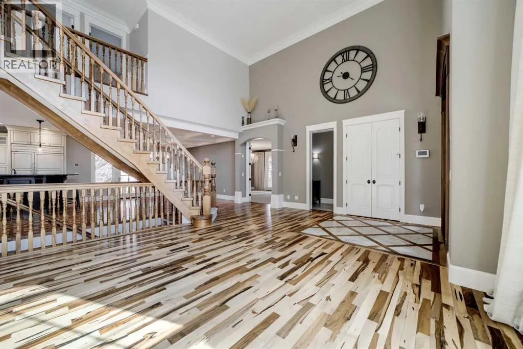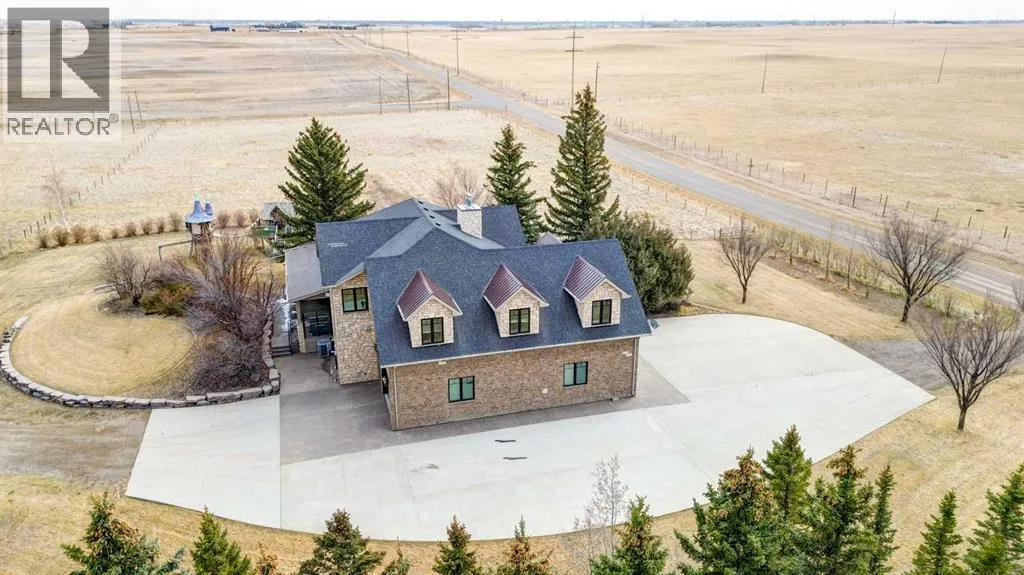 Beautiful acreage for sale just outside of Lethbridge and Coalhurst. 11.89acres with front pasture for livestock, fenced and cross fenced. This property is on city water. This property truly is a one of a kind and must be seen to fully appreciate it. The homeâs exterior showcases timeless brick and stone, leading to a stunning premier arched front entry door crafted from maple with elegant detailing. Inside, youâre greeted by soaring 20-foot ceilings and a breathtaking floor-to-ceiling stone gas fireplace. Expansive windows flood the space with natural light, highlighting the custom tile work and rich Brazilian hardwood finishes. A jaw dropping curved walnut staircase adds architectural elegance to the grand entrance.The open-concept kitchen and dining area features a tray ceiling with custom crown moulding and is designed for both everyday living and entertaining. The chefâs kitchen includes two-tone cabinetry, a Sub-Zero refrigerator, Miele dishwasher, double Wolf ovens, a gas cooktop, custom hood fan, cast iron sink, and stylish lighting throughout.The main floor primary suite is a private retreat, complete with its own gas fireplace and access to a wraparound exposed aggregate patio. The spa-like ensuite offers custom built-ins, dual sinks, a large jetted tub, and a steam shower with rain head and body jets. A separate restroom includes an additional sink and washer/dryer hookups. Dual walk-in closets provide ample space and organization. Conveniently and smartly located off the kitchen is a functional back entry with generous storage, a laundry room with sink, and a half bath with ideal access to the garage.Upstairs, youâll find four additional bedrooms, a spacious bonus living area, and one-and-a-half bathrooms, all boast large windows.The fully developed walk-up basement features 9-foot ceilings, stone feature walls, and a long gas fireplace. Host like a professional in the bar area complete with a wine fridge and dishwasher, or enjoy movie nights in the theater room. This level also includes a full bathroom, a dedicated workout room with custom brick and reclaimed wood accents, and a bright office with built-ins.The oversized 30â x 48â garage offers drive-through access, custom storage, in-floor heating, and durable epoxy flooring.Additional features include RTI surround sound, a full security system, and connection to city water.The beautifully landscaped yard boasts custom brickwork, rock retaining walls, a fire pit area, mature trees, underground sprinklers, and charming playhouse structures. A 50â x 84â fully insulated Quonset, complete with radiant heat, gas heater, concrete floors, a half bath, and an overhead powered door. Again, this is an absolute must view in person property for any serious acreage buyers. (id:27476)