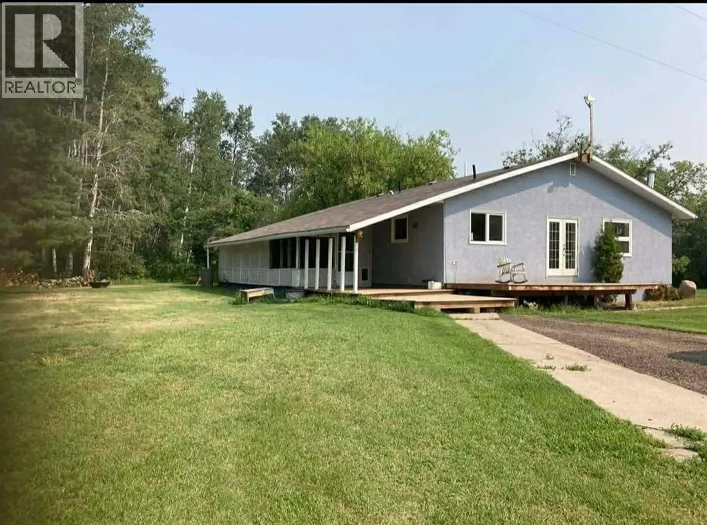 Country living awaits !! This 5 Bedroom, 2 1/2 Bath home rest peacefully on 14 + acres is sure to mark off everything and more ! Itâs perfect for those seeking a slice of country life while still being only a short drive from town. Gaze out at the country setting through the garden doors while enjoying your morning coffee or witnessing the beautiful sunrise on your covered veranda . The aroma of the freshly baked bread resting on the counter and home grown produce lingers as you prepare meals in the bright "Country" Kitchen with an abundance of cupboards and a fantastic walk-in pantry, flowing into the great size eat-in Dining Room where meals will be shared around the table with the ones you hold near and dear to your heart, The Sitting Room with wall space to showcase all your special artwork and family photos ,a corner wood stove to keep you warm in the cool nights after building snowmen or sledding enjoying a cup of cocoa , while also keeping the gas bills lower. The main bath offers plenty of space as well as the main floor Laundry Room with a perfectly placed bathroom for easy access when working outside right by the door. A good-sized Primary Bedroom is tucked away with a stunning view overlooking the majestic trees , there is another two bedrooms on the main level . The lower level is home to the Family Room to spend time together watching movies and playing games, 2 pc bathroom .There is a cold storage room to keep your produce from the bounty of your garden and another 2 bedrooms. Enjoy long summer days basking in the sun or working in your gardens, with a dugout close to keep your garden watered . This property allows you to embrace all the pluses of acreage life . If you have any projects youâre working on, the detached garage gives you the perfect space to fix up that old clunker youâre trying to get running or store your quad or snowmobile during their off-seasons and still have room to keep your car out of the elements. A wonderful outdoor area i s sure to be the scene of quiet reflective mornings, peaceful afternoon naps, and savoring memorable moments with the ones you love while enjoying endless-starry Northern night skies around a campfire singing, sharing stories while roasting marshmallows. This acreage is yearning to be used to its full potential, where children are running around laughing, building tree forts, or your four legged family members, a huge thriving garden, maybe add a few animals and chickens? and all the wonders that can only be found enjoying the country living . The only question may be, are you ready to start living this lifestyle ? (id:27476)