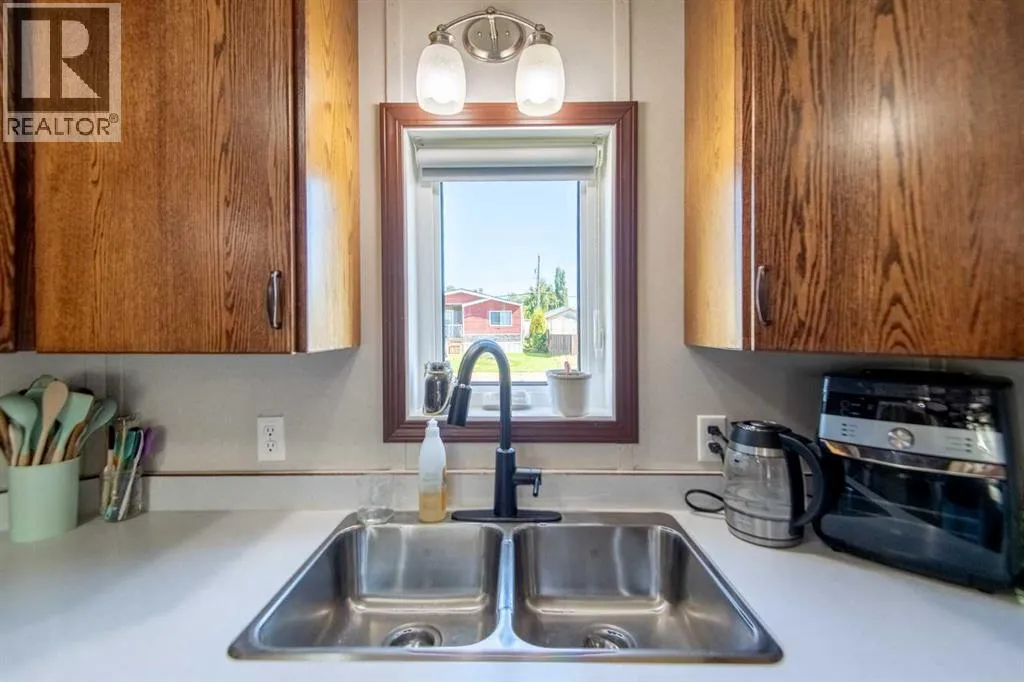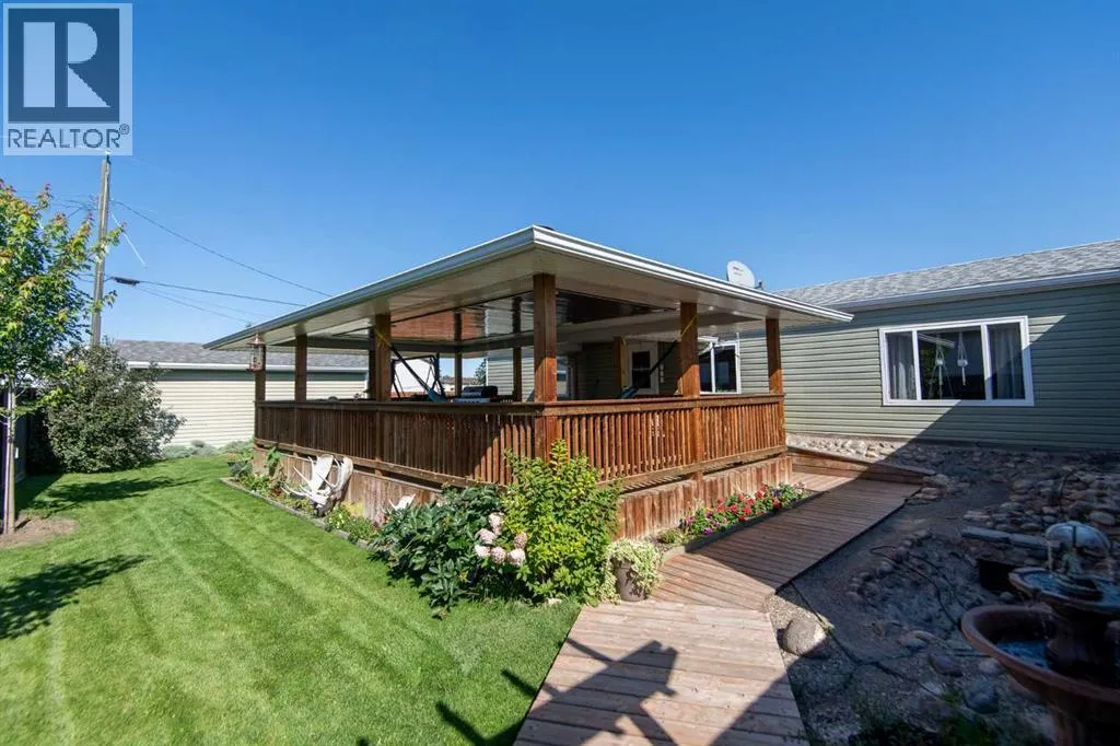 Welcome to this spacious 4 bedroom, 2 bathroom mobile home with a 16x22 addition, perfectly set on a quiet corner lot. This home offers plenty of room inside and out, featuring a large covered deck, ideal for summer barbecues, hosting friends, or simply relaxing in the shade. The yard is fully fenced and beautifully landscaped with a fish pond, mature trees, and green space for kids or pets to play. An insulated shed adds extra storage and can easily be converted into a heated workshop with just a heating source. Inside, the kitchen is warm and functional with rich wood cabinetry, ample counter space, and updated appliances. The open layout flows seamlessly into the living spaces, while the 2012 renovations add peace of mind and modern comfort. With an appraised price of $343,000, this property delivers value, privacy, and a lifestyle ready for both relaxation and entertaining. Conveniently located on a quiet street in a family-friendly neighbourhood, this home combines comfort and charm with practical upgrades. (id:27476)