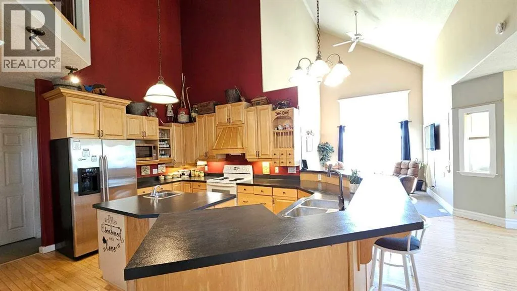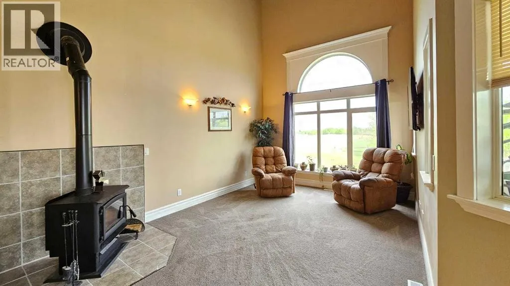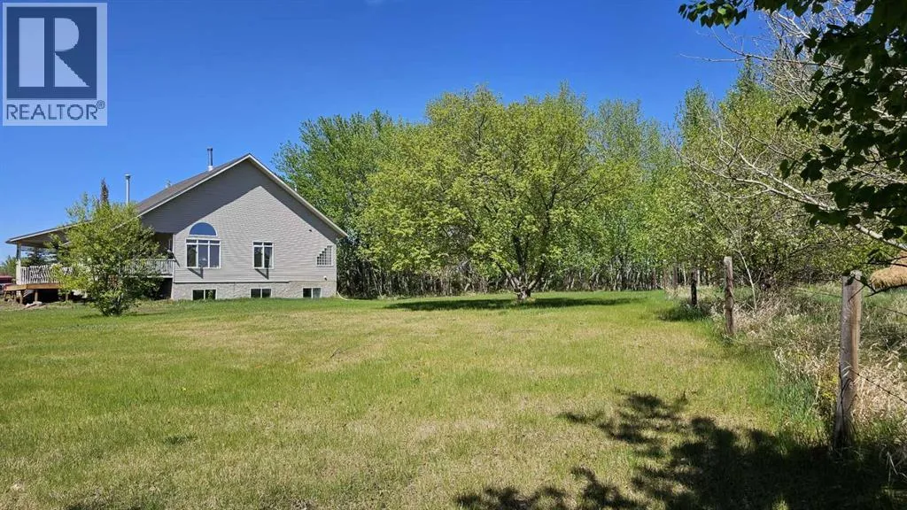 This exquisite 1.5-storey, custom-built home offers 2,240 sq ft of beautifully designed living space, nestled on a breathtaking 8.28-acre parcel of land. Surrounded by sweeping panoramic views and expansive pasture land, this tranquil and secluded oasis is fully fenced and cross-fenced, perfect for hobby farming or simply enjoying nature in peace and privacy. Step onto the inviting front veranda and picture yourself relaxing on warm summer evenings, soaking in the stunning scenery that stretches as far as the eye can see. Outside, you'll find a thoughtfully landscaped yard featuring numerous fruit trees, vibrant perennial flowers, and a charming garden shedâperfect for storing tools and tending to your garden all season long. Just steps from the new deck, relax and soak your cares away in the brand-new 4-person hot tub, the ultimate spot to unwind while taking in the peaceful beauty that surrounds you. Inside, the grand foyer welcomes you with soaring vaulted ceilings and an abundance of natural light pouring through large windows, offering clear views of the home's elegant interior. A charming front den with a cozy gas fireplace provides a versatile space for a formal dining room or a sophisticated home office. The heart of the home is the open-concept kitchen, fully equipped with center island, breakfast counter, pantry, and ample cabinetry to meet all your storage needs. Adjacent is a cozy living room featuring a newer wood stove and large windows that frame the surrounding landscapeâideal for wildlife watching or curling up for a movie night. The spacious dining room accommodates a large table and coffee bar, and boasts a beautiful bay window overlooking the brand-new 24' x 14' deckâjust one of two decks perfect for outdoor entertaining, with one being fully covered so you can enjoy unforgettable nights under the Northern lights. The main floor also features two generously sized bedrooms, along with a luxurious master suite complete with vaulted ceilings, a walk -in closet, double-sided gas fireplace, and a spa-like ensuite with jetted soaker tub, stand-up shower, and private toilet room. A well-appointed main floor laundry room includes newer washer and dryer units and built-in shelving for added convenience. Upstairs, a balcony offers a stunning overlook of the main living area. Discover a spacious bonus area over the garage, with partial walls and two built-in bedsâideal as a playroom, studio, or guest retreat. The lower level features a spare room with a pedestal sink perfect for a home business space, a large unfinished rec room ready for your personal touch, and a private 2-bedroom in-law suite with its own separate entrance. This suite is perfect for use as a rental property or a comfortable space for accommodating extended family, offering everyone their own private area to relax and unwind. From cozy evenings by the fire, and tranquil soaks in the hot tub, donât miss your opportunity to own a piece of paradise! Call today, this one won't last long! (id:27476)