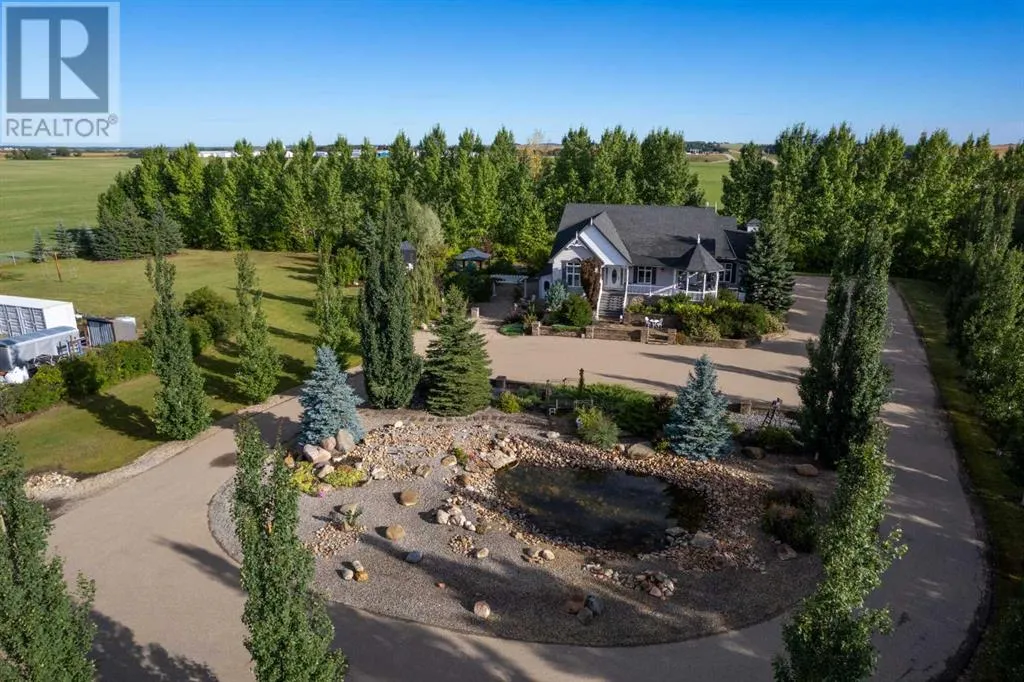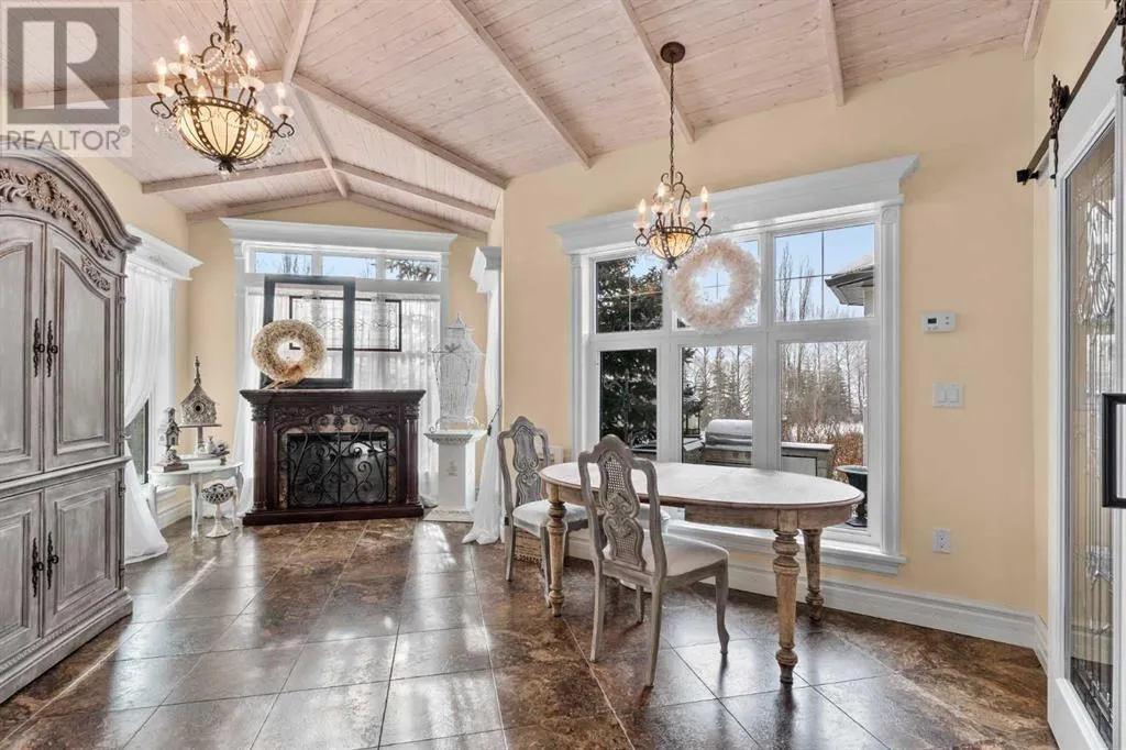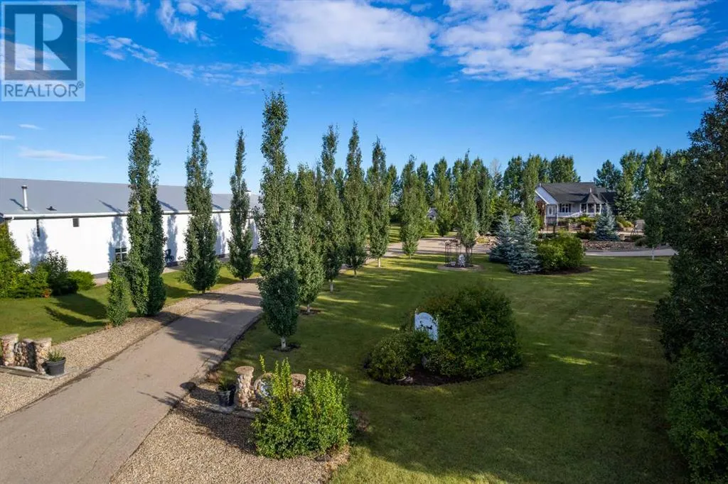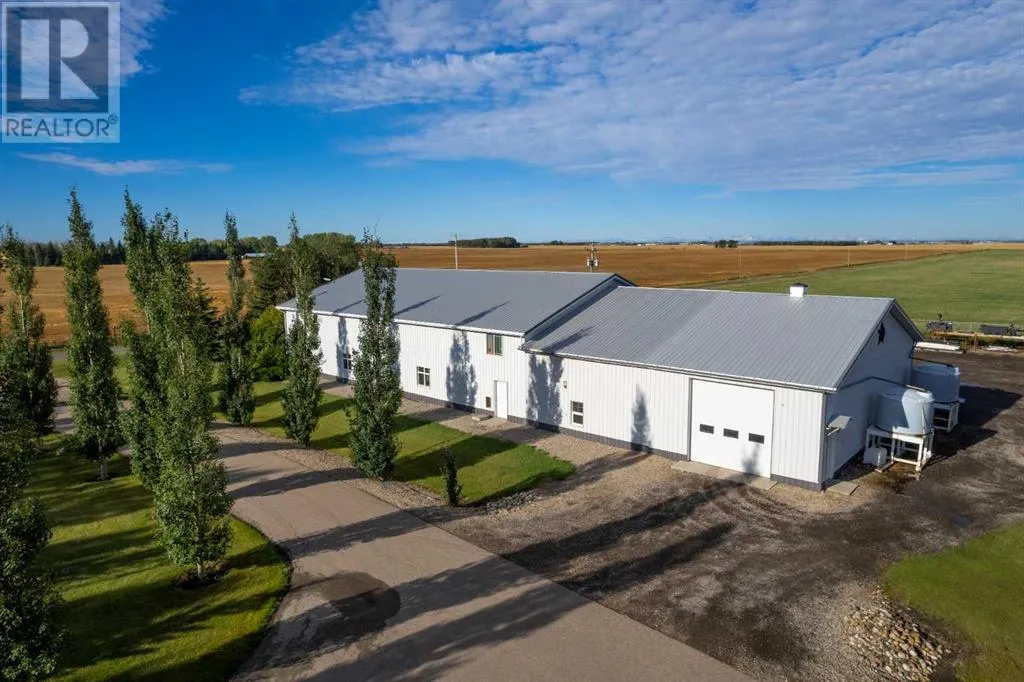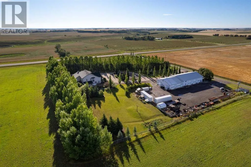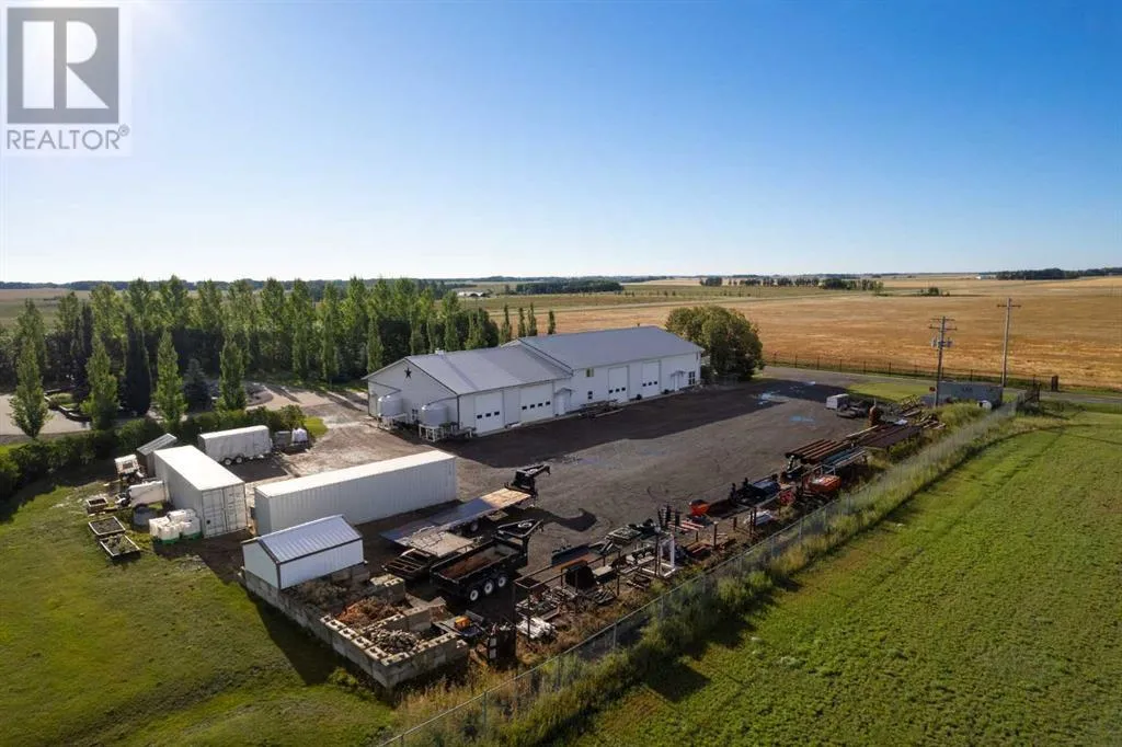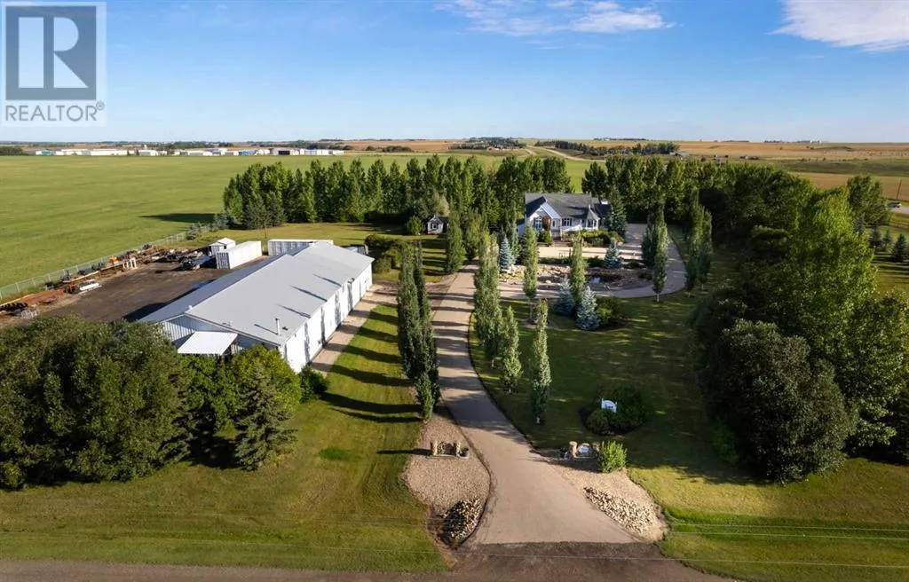 This beautifully landscaped 5.49-acre acreage offers exceptional potential for a small/medium-sized business and additional housing for extended or blended families. Located 5 minutes north of Didsbury, AB, and 10 minutes south of Olds, AB, just off Highway 2A, it boasts gorgeous mountain views. The main house, with 2,017 sq ft of French country charm, features crown moldings, barn and French doors, and hardwood floors. The spacious kitchen, updated in 2023, has a two-tiered island, quartz countertops, a farmhouse sink, hard wood floors and ample cabinet space. The main floor also includes a dining room, living room, covered maintenance-free veranda with an outdoor kitchen. Master bedroom with a 4-piece ensuite, fireplace, soaker tub, and walk-in closet. Additional spaces include a 2-piece bath, second bedroom, laundry room, mudroom, and garage entrance. The fully finished walk-out basement provides 1,735 sq ft, featuring 2 bedrooms, a media room, a 4-piece bath, a playroom, and storage. ICF construction, crown moldings, fresh paint (2023), and in-floor heating throughout enhance the home's appeal. The oversized, heated double garage has a paved driveway. The property includes a 6,400 sq ft shop (128' x 50') with three-phase power. Features include a 50âx24â drive-through wash bay with 12â overhead doors, a 50âx24â welding bay with a 16â overhead bay door and crane. 50âx80â main shop area with two 14â bay doors and 16â clearance. The shop also has a wood workshop, paint storage, front office space, and a 3-piece bathroom. A new boiler (2024) ensures in-floor heating. Above the woodworking shop, a spacious living area includes a kitchen, laundry, 4-piece bathroom, 3 bedrooms, a master bedroom with a walk-in closet, and a storage room. The mezzanine adds additional living space, perfect for additional family members. This exceptional property has been meticulously maintained and offers an unparalleled combination of country residential comfort and business potential. Whether you are seeking a spacious family home, a live-work opportunity, or a combination of both, this acreage provides a rare and sophisticated setting with limitless possibilities. (id:27476)