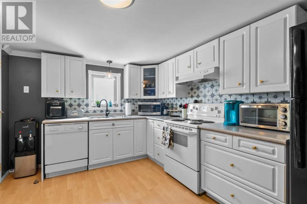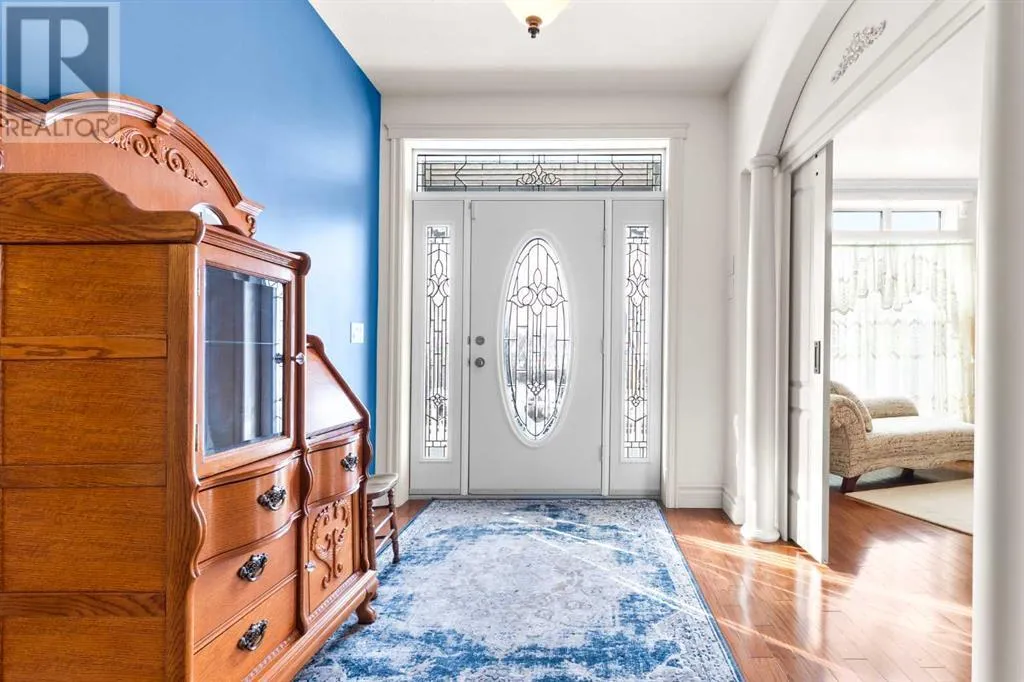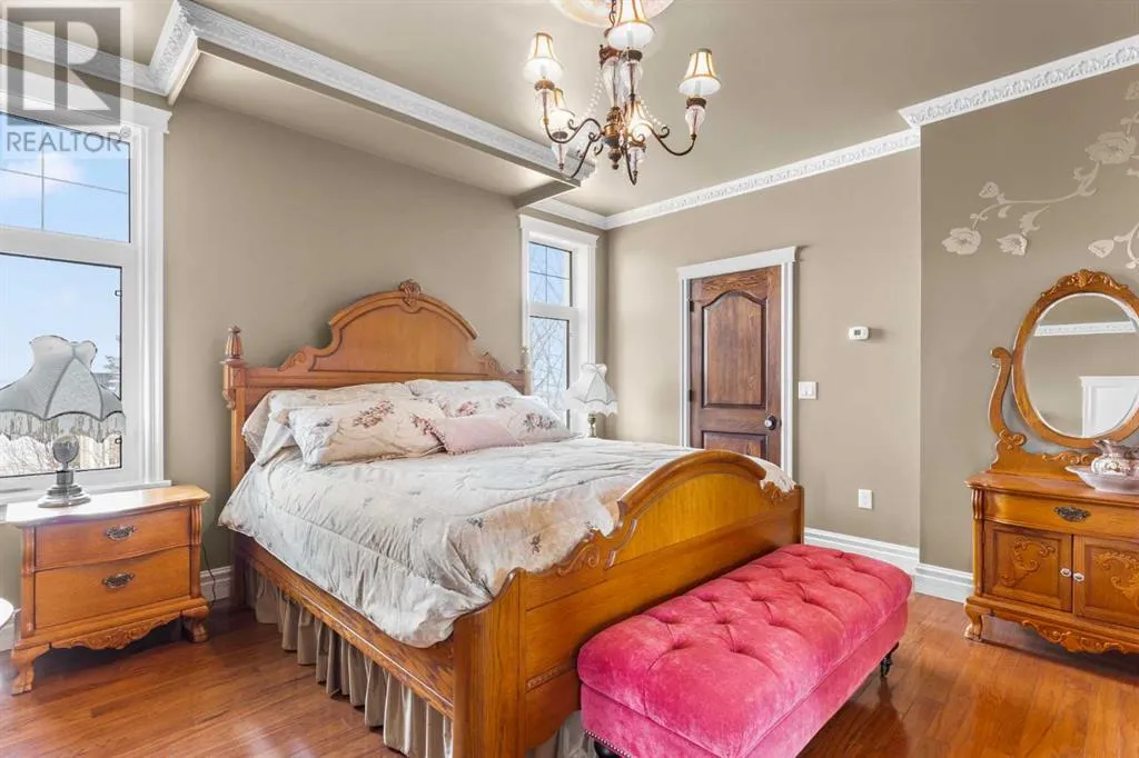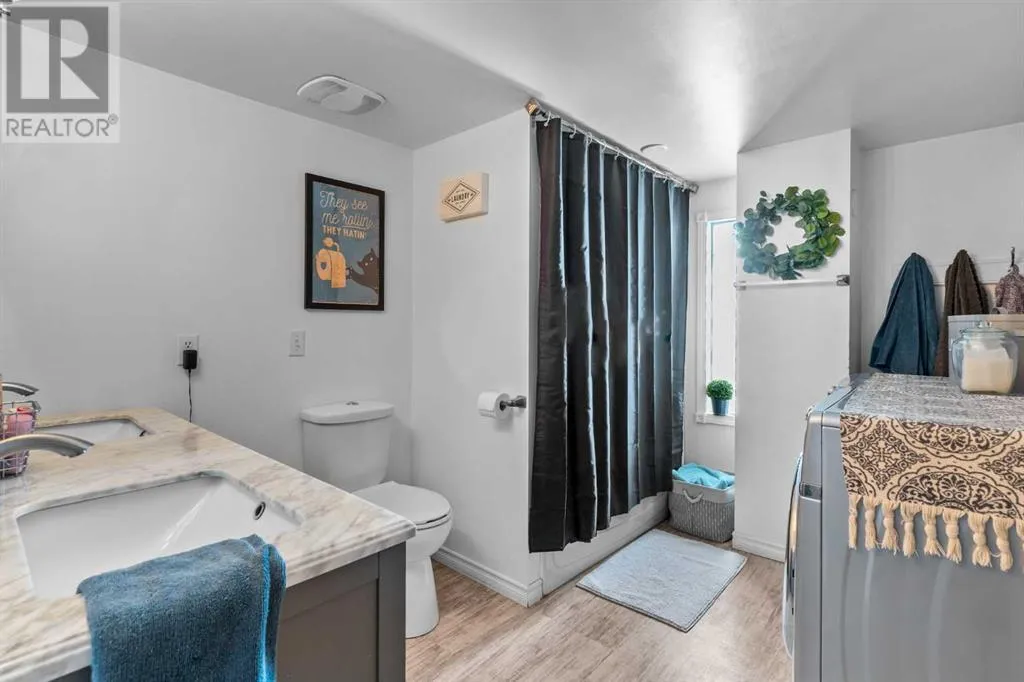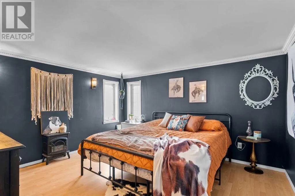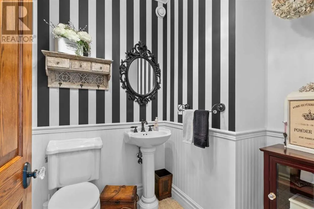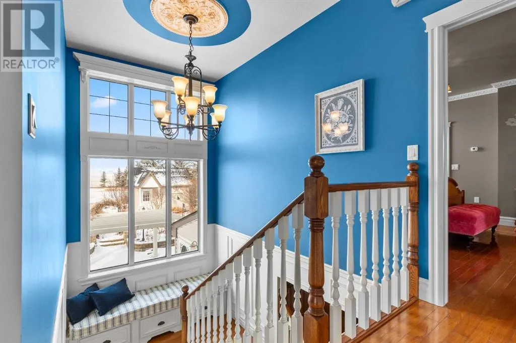 This beautifully landscaped 5.49-acre acreage offers exceptional potential for a small/medium-sized business and additional housing for extended or blended families. Located 5 minutes north of Didsbury, AB, and 10 minutes south of Olds, AB, just off Highway 2A, it boasts gorgeous mountain views. The main house, with 2,017 sq ft of French country charm, features crown moldings, barn and French doors, and hardwood floors. The spacious kitchen, updated in 2023, has a two-tiered island, quartz countertops, a farmhouse sink, hard wood floors and ample cabinet space. The main floor also includes a dining room, living room, covered maintenance-free veranda with an outdoor kitchen. Master bedroom with a 4-piece ensuite, fireplace, soaker tub, and walk-in closet. Additional spaces include a 2-piece bath, second bedroom, laundry room, mudroom, and garage entrance. The fully finished walk-out basement provides 1,735 sq ft, featuring 2 bedrooms, a media room, a 4-piece bath, a playroom, and storage. ICF construction, crown moldings, fresh paint (2023), and in-floor heating throughout enhance the home's appeal. The oversized, heated double garage has a paved driveway. The property includes a 6,400 sq ft shop (128' x 50') with three-phase power. Features include a 50âx24â drive-through wash bay with 12â overhead doors, a 50âx24â welding bay with a 16â overhead bay door and crane. 50âx80â main shop area with two 14â bay doors and 16â clearance. The shop also has a wood workshop, paint storage, front office space, and a 3-piece bathroom. A new boiler (2024) ensures in-floor heating. Above the woodworking shop, a spacious living area includes a kitchen, laundry, 4-piece bathroom, 3 bedrooms, a master bedroom with a walk-in closet, and a storage room. The mezzanine adds additional living space, perfect for additional family members. This exceptional property has been meticulously maintained and offers an unparalleled combination of country residential comfort and business potential. Whether you are seeking a spacious family home, a live-work opportunity, or a combination of both, this acreage provides a rare and sophisticated setting with limitless possibilities. (id:27476)