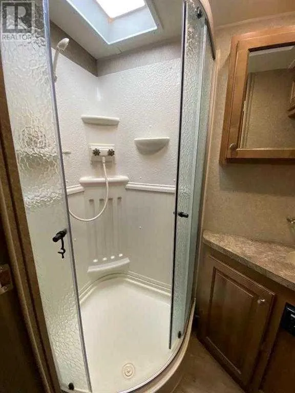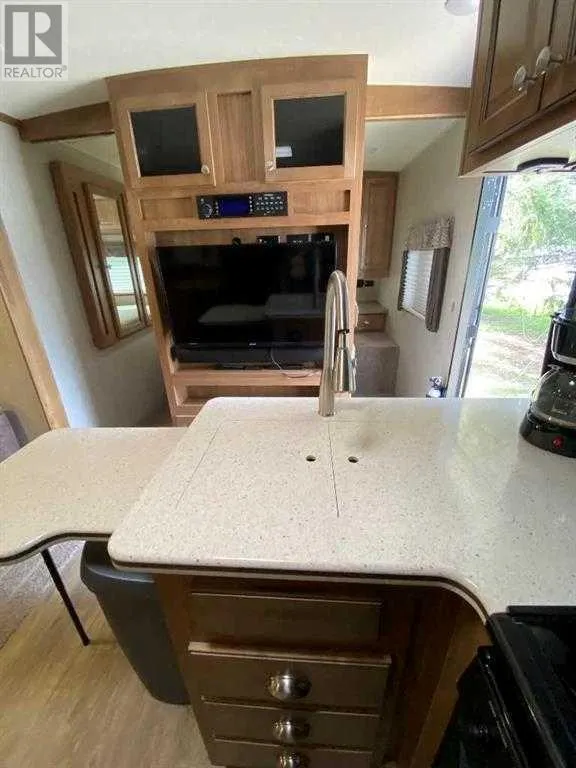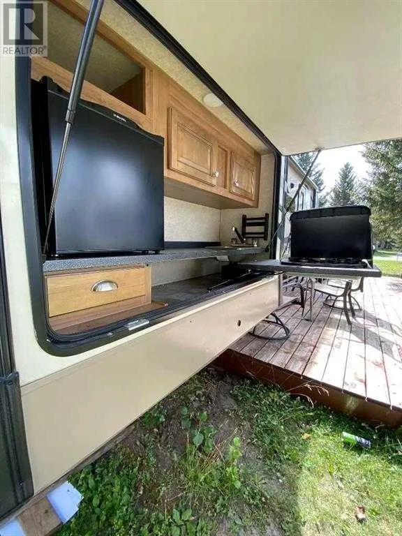 Welcome to #29 Timber Drive in the beautiful Tall Timber leisure Park. If you are looking for a well laid out family geared RV in a super family friendly RV park, then look no more...This Cadillac unit could sleep 8 with a great family room area in the rear consisting of 3 bunk beds and a love seat hide-a-bed the perfect kid zone. The main area has a couch, TV, eating nook, large fridge, covered sink (making for extra counter), microwave and covered stove top and oven. The master bed room at the front has plenty of storage and its own TV. The roomy bathroom has a large shower with room to move around. Seriously one of the best floor plans I've seen in an RV and it shows like new! Definitely a 10! The west facing deck has room to enjoy your evening with your favorite beverage on but I would be remiss if I didn't mention the FABULOUS outdoor kitchen WOW!!! The site includes a roomy shed, firepit area and a wonderful shade tree to relax under. Tall Timber is one of Sundre's most sought after RV parks where you own the lot and the extra's include an indoor swimming pool with a large hot tub, snack/convenient store, pickle ball court, playground, tennis courts and trails along the Red Deer River. This is a special unit on a great site close to all the amenities. Book a viewing today and get in before this years camping season is over. (id:27476)