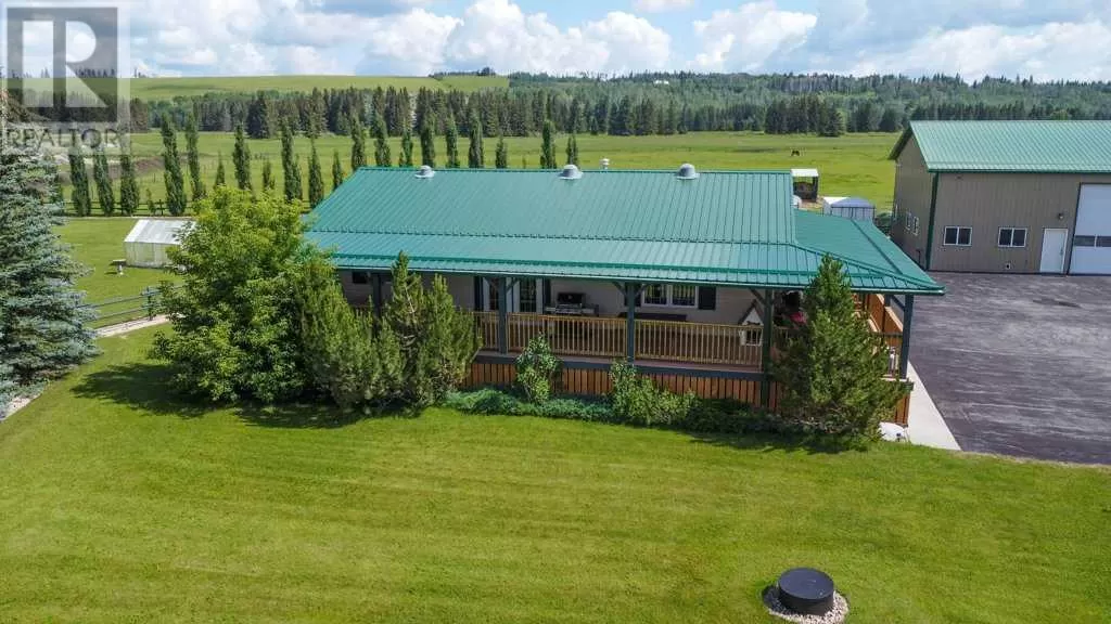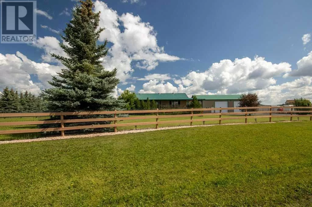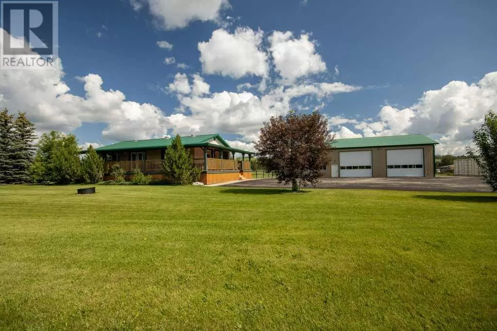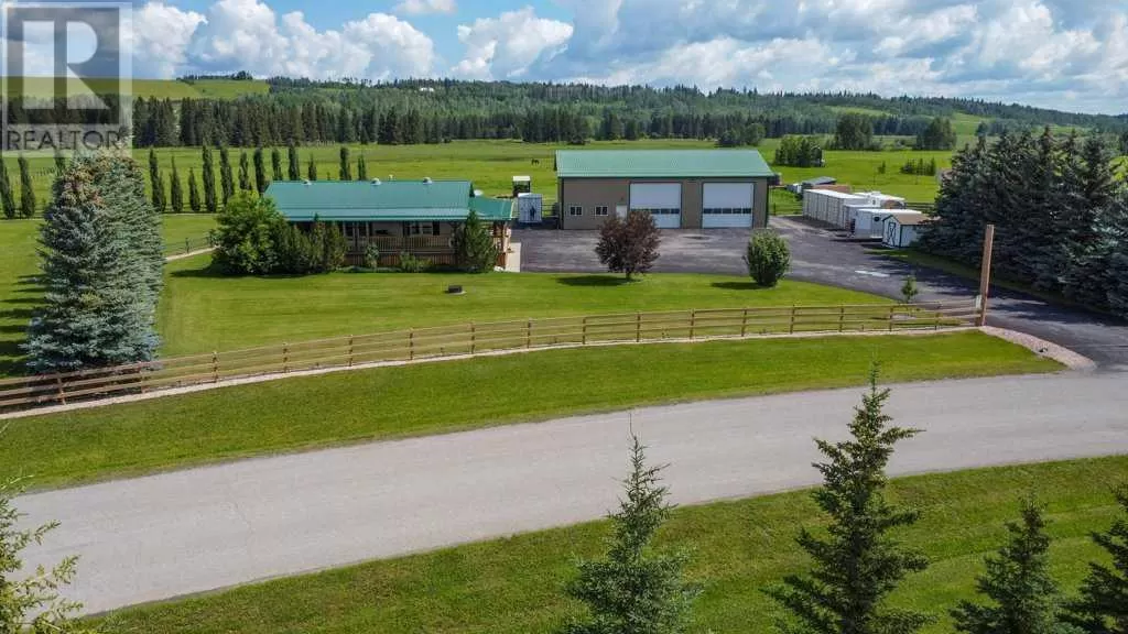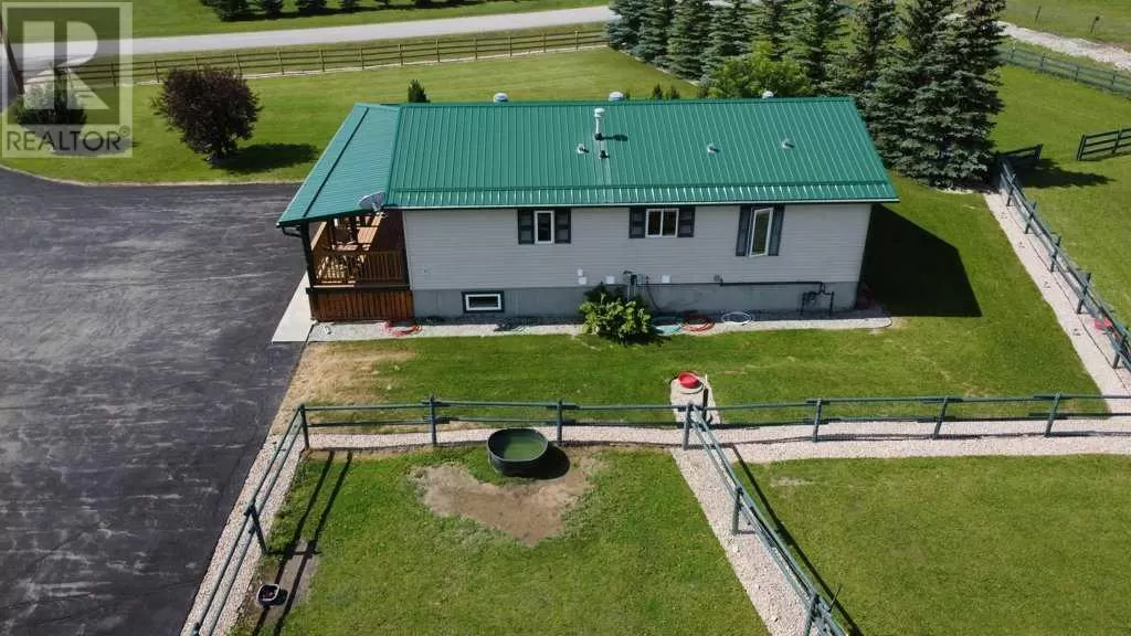 Welcome to your pristine 5.61-acre horse-ready oasis just minutes from the charming town of Sundre! This immaculately maintained property is fully fenced and thoughtfully set up for equestrian living, featuring an outdoor riding arena. The highlight is a massive 2,576 sq ft heated shop with infrared heat, 14â and 12â overhead doors, a 2-piece bathroom, 50-gallon hot water tank, built-in metal toolboxes with drawers, workbench, and parking for up to 8 vehicles â ideal for hobbyists, mechanics, or storage. A full security system protects both the shop and yard.The 1,242 sq ft bungalow offers a total of 4 bedrooms and a fully developed basement, perfect for families or guests. The primary suite includes a walk-in closet and a 4-piece ensuite with a relaxing jetted tub. The home features a new metal roof and covered wrap-around deck (updated just 2 years ago with a $65,000 investment), providing the perfect spot to unwind and enjoy peaceful country views.The paved driveway offers ample space for outdoor parking, adding to the convenience and functionality of this rare acreage package. Whether youâre a horse lover, car enthusiast, or simply seeking the tranquility of country living with turn-key infrastructure â this one checks every box! Located just minutes from Sundre, where youâll find everything you need â hospital, grocery store, doctors, dentist, hair salons, restaurants, elementary and high schools, a hockey rink, library, recreation centre with indoor pool, and even an Arts Development Centre offering live theatre and music.Plus, youâre only a short drive to Ya Ha Tinda, where wild horses roam free and the foothills meet the mountains, offering breathtaking views and outdoor adventure.This is acreage living at its finest â impeccably maintained, expertly set up, and surrounded by natural beauty and community charm. (id:27476)