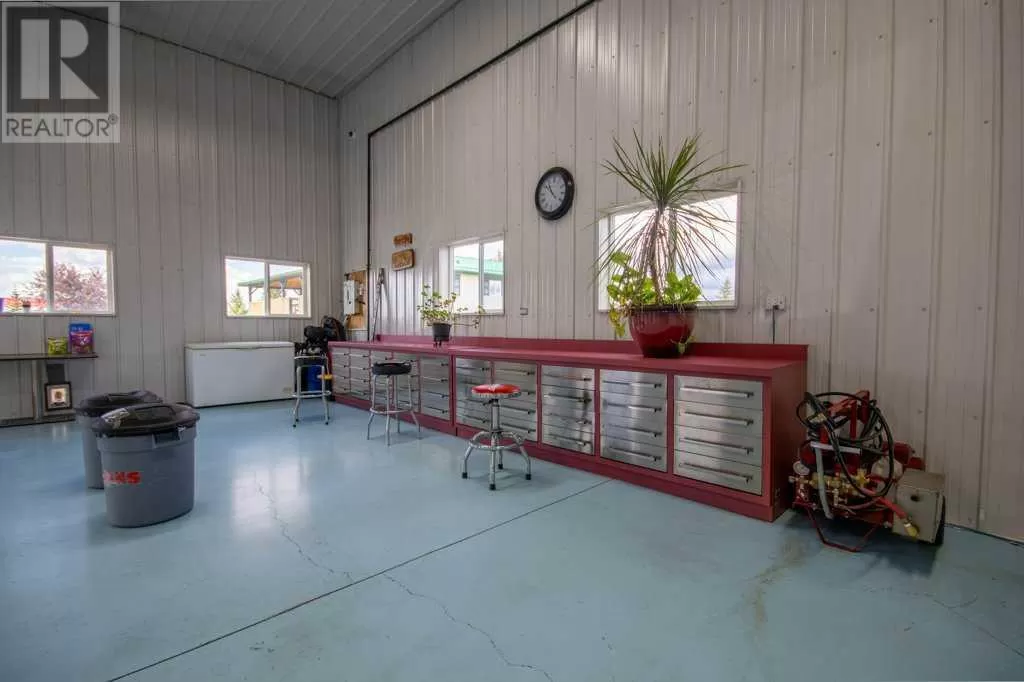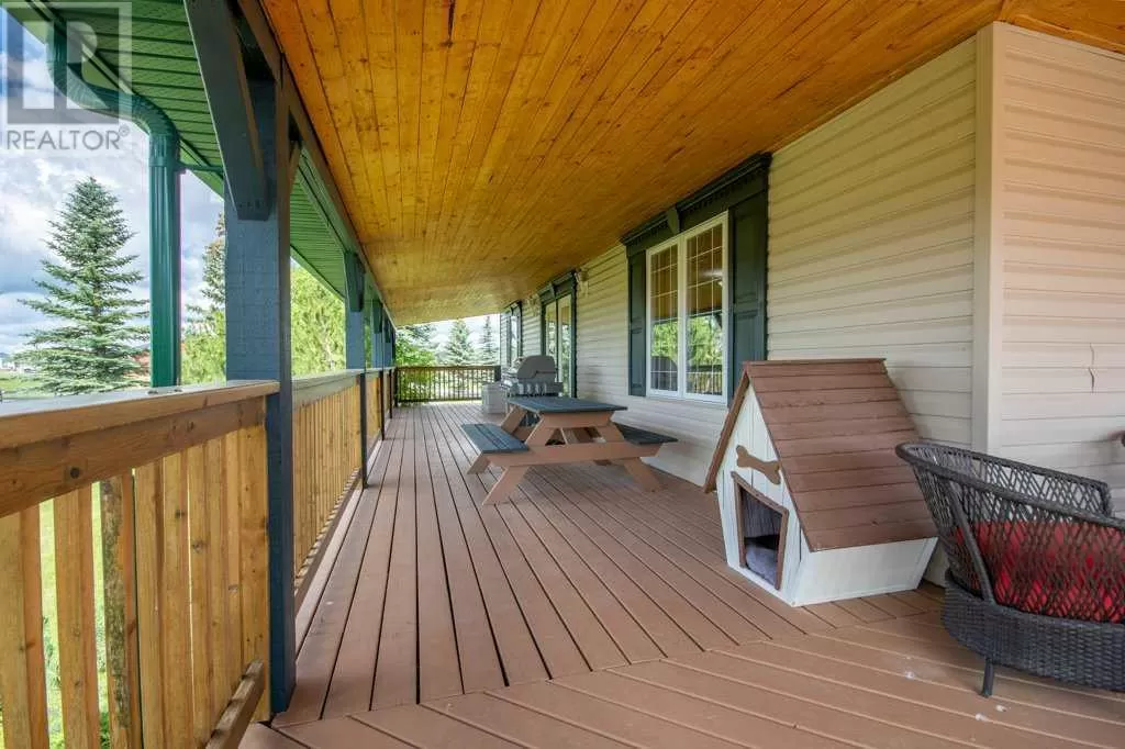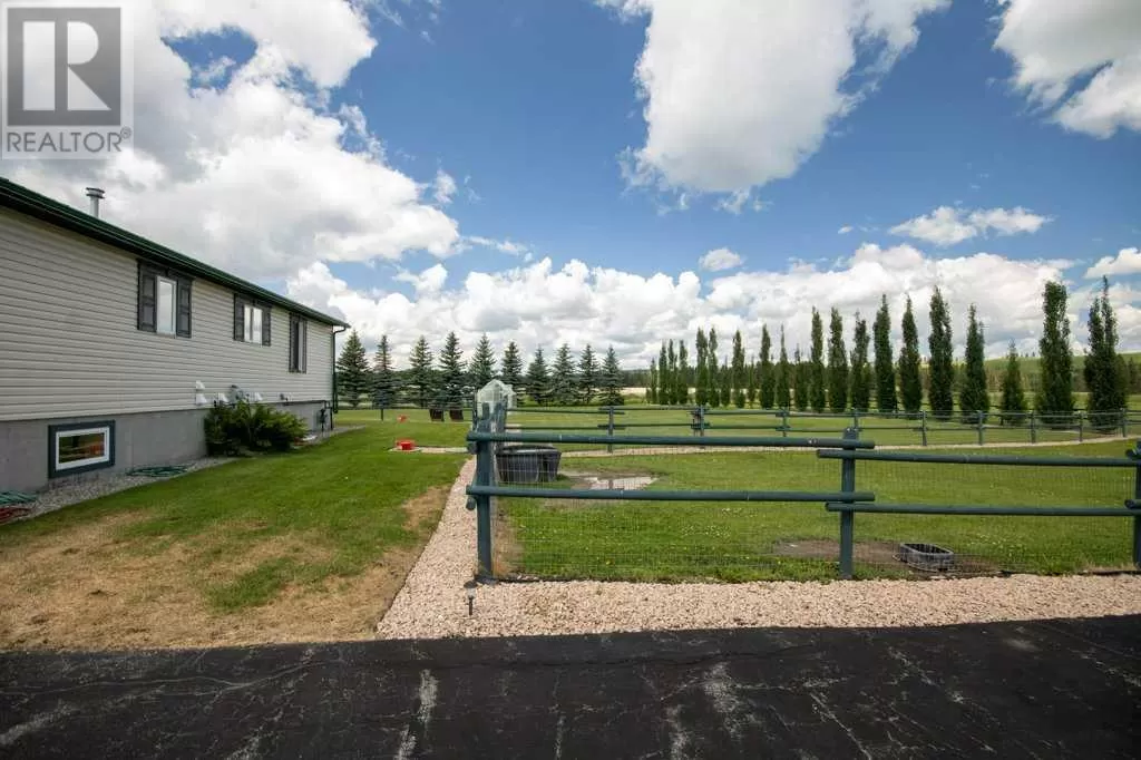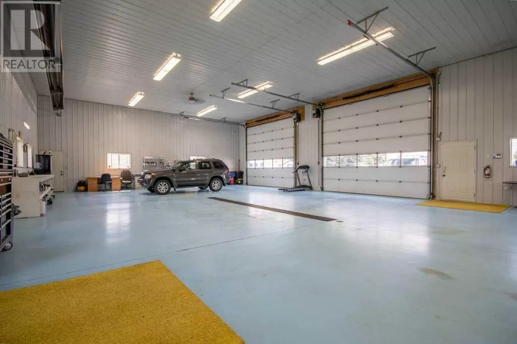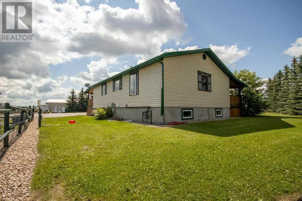 Welcome to your pristine 5.61-acre horse-ready oasis just minutes from the charming town of Sundre! This immaculately maintained property is fully fenced and thoughtfully set up for equestrian living, featuring an outdoor riding arena. The highlight is a massive 2,576 sq ft heated shop with infrared heat, 14â and 12â overhead doors, a 2-piece bathroom, 50-gallon hot water tank, built-in metal toolboxes with drawers, workbench, and parking for up to 8 vehicles â ideal for hobbyists, mechanics, or storage. A full security system protects both the shop and yard.The 1,242 sq ft bungalow offers a total of 4 bedrooms and a fully developed basement, perfect for families or guests. The primary suite includes a walk-in closet and a 4-piece ensuite with a relaxing jetted tub. The home features a new metal roof and covered wrap-around deck (updated just 2 years ago with a $65,000 investment), providing the perfect spot to unwind and enjoy peaceful country views.The paved driveway offers ample space for outdoor parking, adding to the convenience and functionality of this rare acreage package. Whether youâre a horse lover, car enthusiast, or simply seeking the tranquility of country living with turn-key infrastructure â this one checks every box! Located just minutes from Sundre, where youâll find everything you need â hospital, grocery store, doctors, dentist, hair salons, restaurants, elementary and high schools, a hockey rink, library, recreation centre with indoor pool, and even an Arts Development Centre offering live theatre and music.Plus, youâre only a short drive to Ya Ha Tinda, where wild horses roam free and the foothills meet the mountains, offering breathtaking views and outdoor adventure.This is acreage living at its finest â impeccably maintained, expertly set up, and surrounded by natural beauty and community charm. (id:27476)