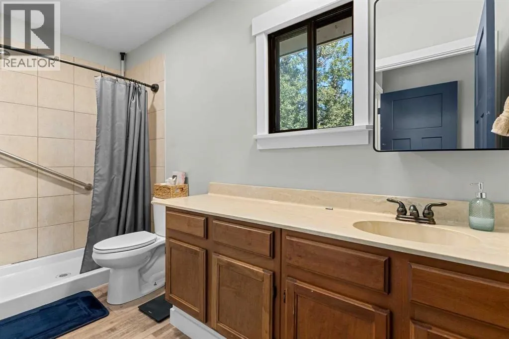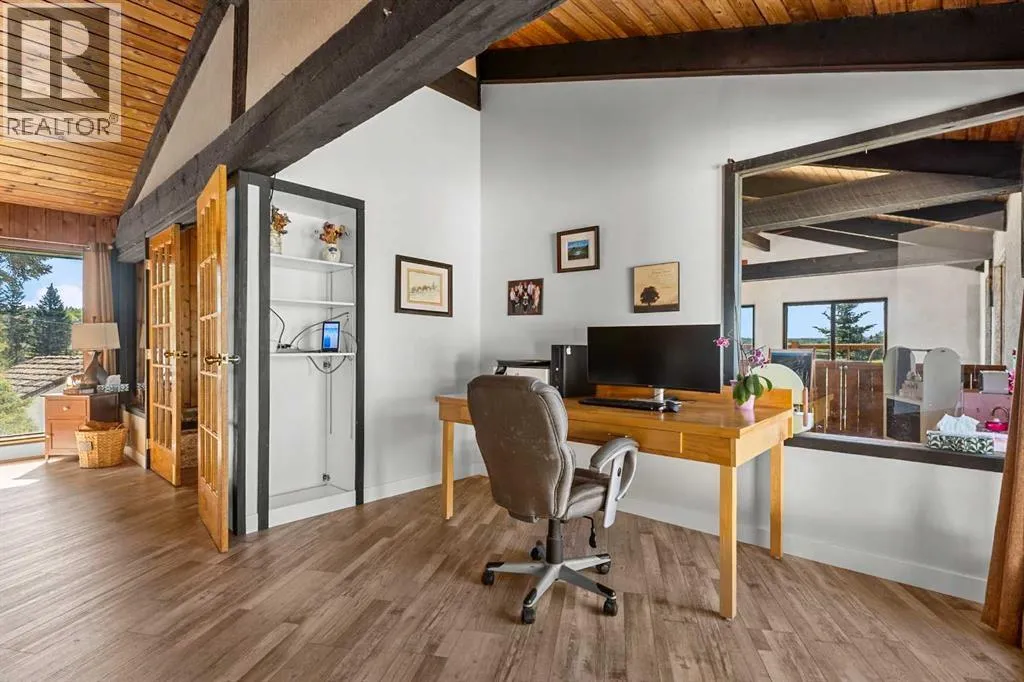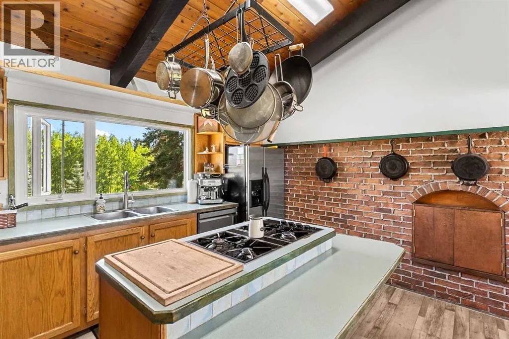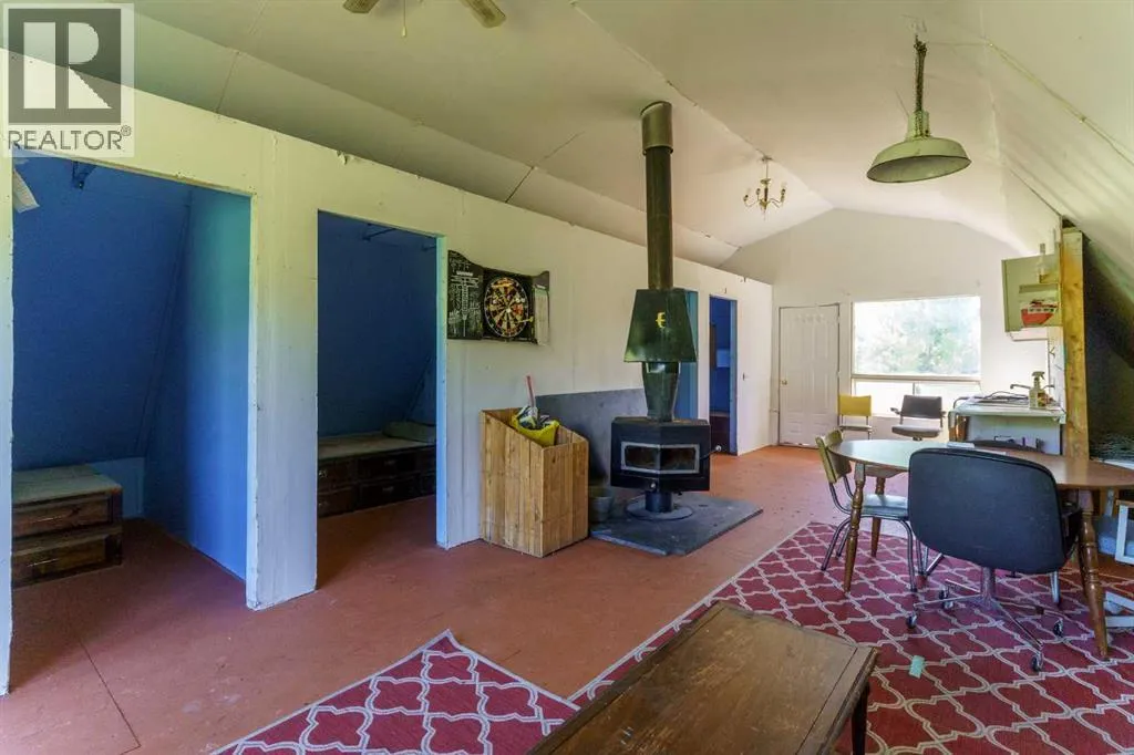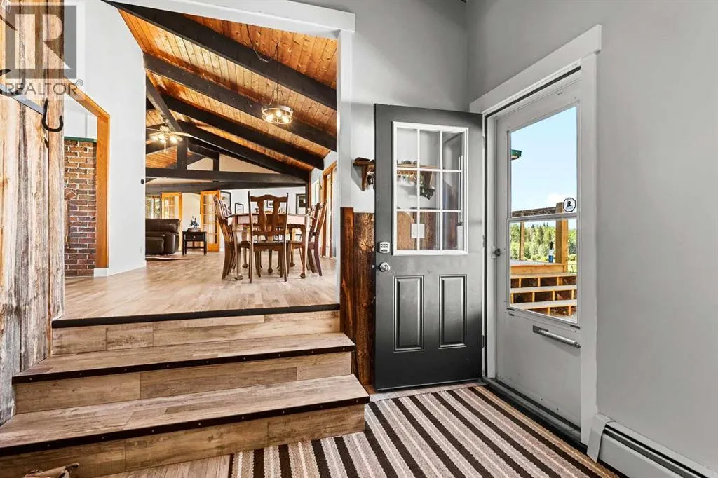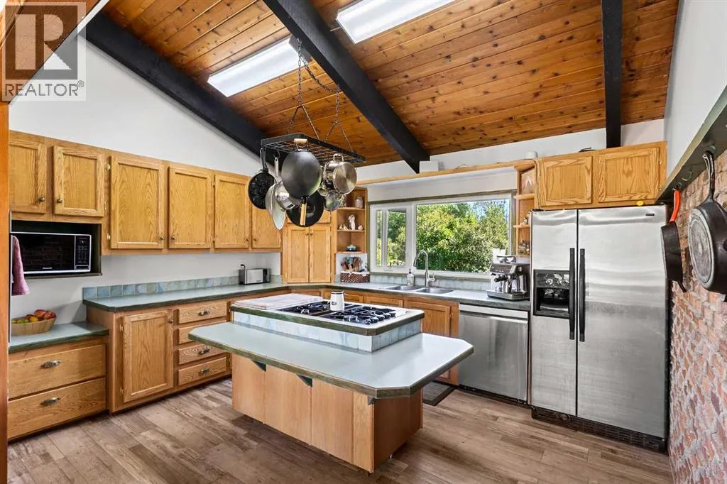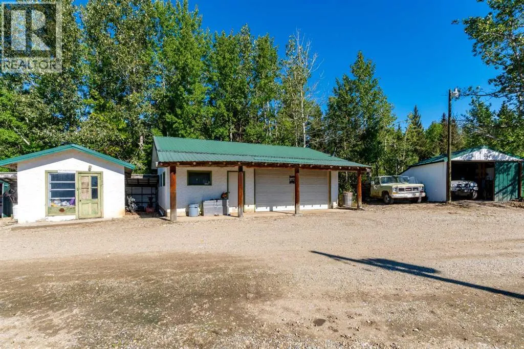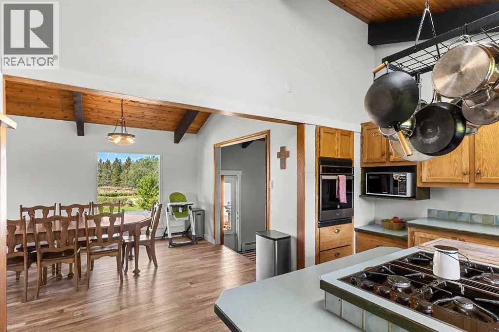 Welcome to your private 40 +/- acre rural oasis! A rare and versatile property that truly has it all. This beautifully finished walk-out bungalow offers 5,000+ Sq Ft, 6 bedrooms and 3 bathrooms. Upon entering the foyer, you will immediately notice the T&G CEDAR CEILING with dark accent BEAMS. To your left up a short run of stairs is access to 2 bedrooms plus the primary suite with 3-piece ensuite. Straight ahead is the main 4-piece bathroom, and then up another short run of stairs is your Kitchen and Dining spaces which is then open to a large living room offering an office nook with a picture window to the rec room and a WOOD BURNING FIREPLACE complete with a hearth, stone & wood mantel. Here you can also look west to your MOUNTAIN VIEWS. Through the living room is an additional rec/play space open to the lower level. This home offers a unique layout that has been optimized to suit a large family. Access to the basement is off the upper rec space or from the foyer. Downstairs you will find a 3-piece bathroom as well as a massive recreation/games space, complete with a PELLET STOVE, dry bar, and family room. From here a large STORAGE space connects you to 3 more bedrooms and the laundry room. With more recent UPDATES include vinyl plank flooring on the main floor, updated interior doors, new carpet & trim on the north side of the home, and updated main floor bathroom. This home is perfect for families or those who love to entertain while enjoying their own piece of rural paradise. This is a place where you come home from work and can truly unwind, while being able to support your inner child with plenty of recreational opportunities right here for you and the kiddos! No need to fight for a camping spot with what this parcel has to offer. The outdoors impress with an array of features including the convenience of a CARPORT right off the house, a large west DECK (partially covered) that wraps to the south side of the home, a 32'x24' HEATED GARAGE/WORKSHOP, multiple sh eds, a 24'x32' BARN for the horse lovers with finished LOFT (did someone say poker night)? Plus a 60'x42' HEATED SHOP with its own well, septic system, power, gas and RI for a bathroom! Explore WALKING TRAILS, a MOTOCROSS TRACK, and 2 large spring fed PONDS stocked with rainbow trout. All this plus a dock for swimming in summer and a perfect skating surface in winter for year-round enjoyment! The year round flowing creek that meanders through the land can be heard running in the background and adds to this property's retreat feel. With ~25 ACRES OF FENCED PASTURE, a lush garden, and abundant privacy, this property is a true rural haven just waiting for its next chapter. Enjoy the peace of rural living without feeling isolated â conveniently located just off pavement, only 10 minutes to the community of Sundre & only 30 minutes to the larger center of Olds. GST due diligence required. (id:27476)