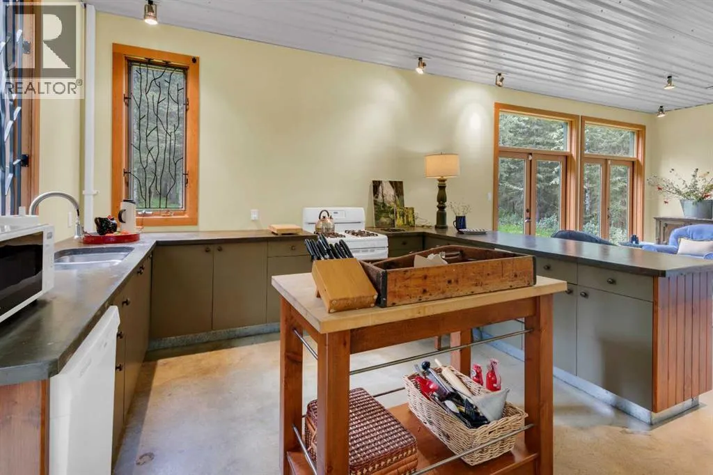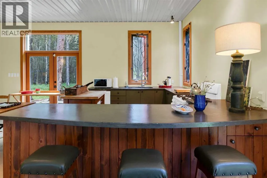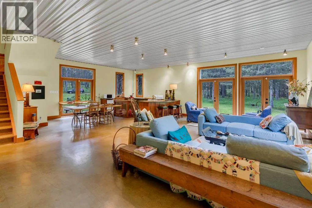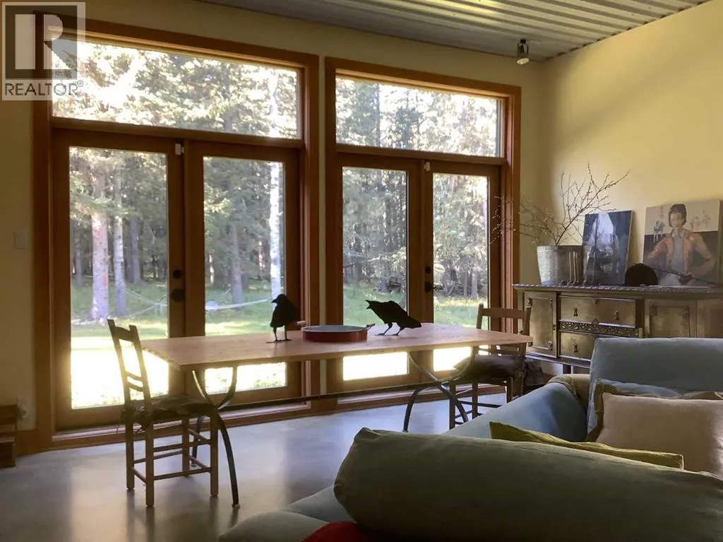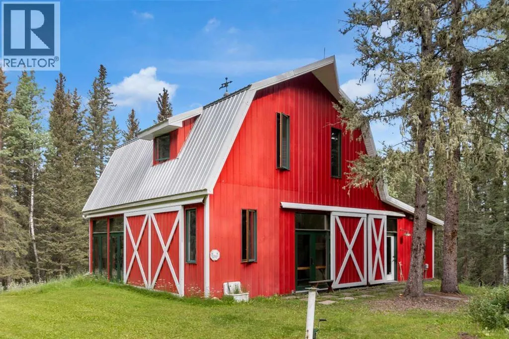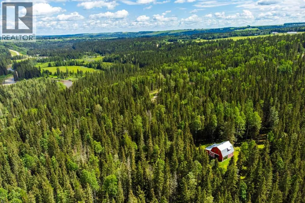 Escape to your own private retreat, 13.72 acre property in the desirable Water Valley area, Little Red Estates, backing on to the Little Red Deer River. This unique property is tucked away on a serene, treed setting bordering a green space along the Little Red Deer River. This one-of-a-kind property offers a rich tapestry of flora and faunaâan abundance of wildflowers, moss, mushrooms & native trees, creating a natural parklike setting and playgroud for variety of local wildlife. This charming Barn Style home was professionally designed w/ ease of maintenance for the home owner, exuding Rustic charm with a Modern Industrial Chic. The interior offers quality finishes & craftmanship thoroughout. The main floor has 11-foot metal ceiling with architectural lighting and large custom fir windows flooding the home with natural light, Custom window decorative wrought iron grills, french doors that frame the boreal forest view. Solid firwood trim detailing throughout. Spacious main floor features concrete floors w/ in-floor heating for year-round comfort. Spacious open plan great room includes large Kitchen w/ concrete countertops, custom cabinetry & gas stove, entertaining and Dining area, Living Room and a warm, inviting Den which is anchored by a wood-burning stove & custom fir entertainment centre. The vaulted arrival area includes a small bunk room or office, 3pc Bath, laundry Rm w/ sink & large Utility room. Loft level also hosts a large arrival hall w/ vaulted ceilings, 3 spacious, bright Bedrooms all with lovely forest vistas, beautiful 3pc bath includes a clawfoot cast iron tub & antique pedestal sinkâperfect for unwinding after a day outdoors. The property is fully serviced w/ underground power,natural gas, septic tank/field, drilled well ( 18 GPM). Land line, and a security system to monitor building temperature, water & building security, sliding metal panels on the exterior of the home provide extra protection and security as a cover over all windows and front door, at the same time adding to the character of the exterior. Outdoors the property invites endless possibilities, with direct access to the river, the adventures are endless. Whether you are seeking a year-round residence, or a recreational retreat for outdoor adventures, this property offers unmatched privacy, quiet beauty, and connection to nature. (id:27476)