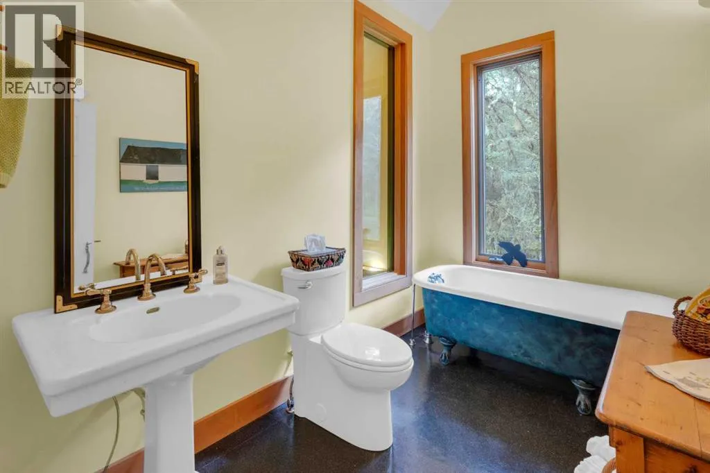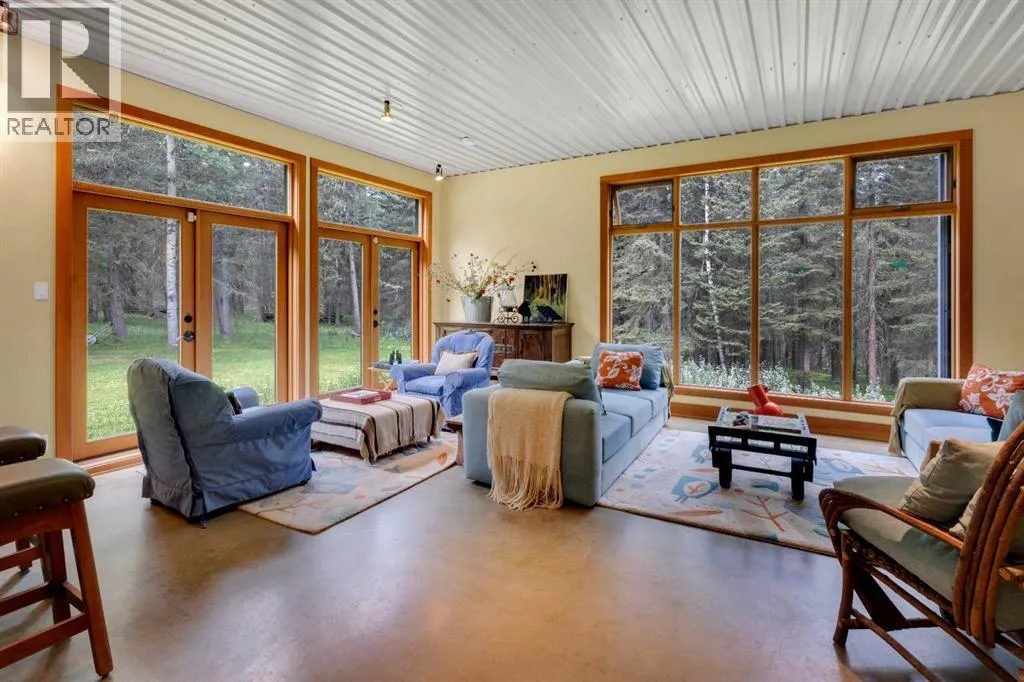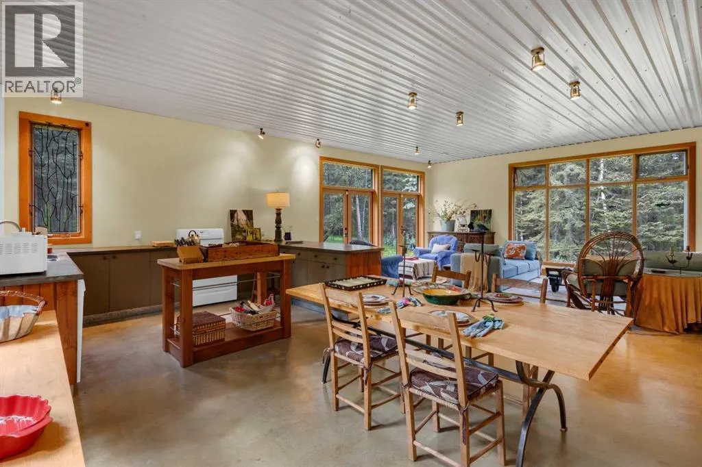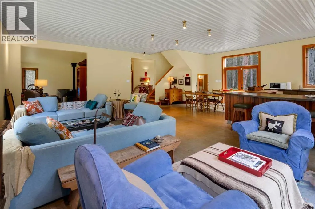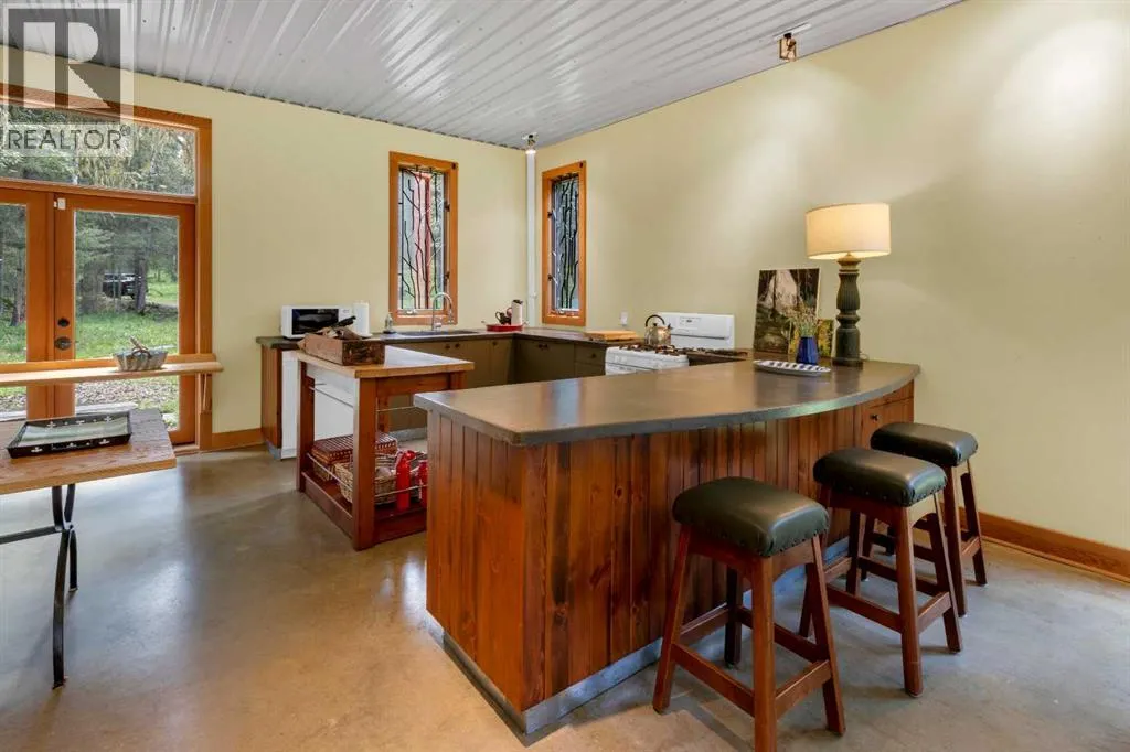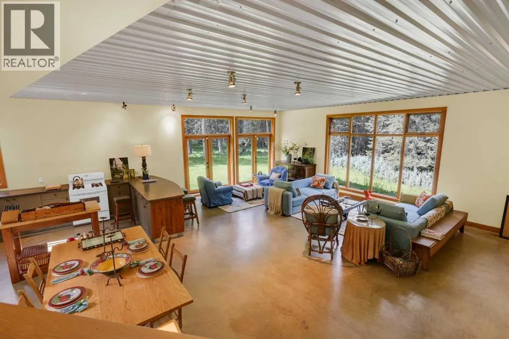 Escape to your own private retreat, 13.72 acre property in the desirable Water Valley area, Little Red Estates, backing on to the Little Red Deer River. This unique property is tucked away on a serene, treed setting bordering a green space along the Little Red Deer River. This one-of-a-kind property offers a rich tapestry of flora and faunaâan abundance of wildflowers, moss, mushrooms & native trees, creating a natural parklike setting and playgroud for variety of local wildlife. This charming Barn Style home was professionally designed w/ ease of maintenance for the home owner, exuding Rustic charm with a Modern Industrial Chic. The interior offers quality finishes & craftmanship thoroughout. The main floor has 11-foot metal ceiling with architectural lighting and large custom fir windows flooding the home with natural light, Custom window decorative wrought iron grills, french doors that frame the boreal forest view. Solid firwood trim detailing throughout. Spacious main floor features concrete floors w/ in-floor heating for year-round comfort. Spacious open plan great room includes large Kitchen w/ concrete countertops, custom cabinetry & gas stove, entertaining and Dining area, Living Room and a warm, inviting Den which is anchored by a wood-burning stove & custom fir entertainment centre. The vaulted arrival area includes a small bunk room or office, 3pc Bath, laundry Rm w/ sink & large Utility room. Loft level also hosts a large arrival hall w/ vaulted ceilings, 3 spacious, bright Bedrooms all with lovely forest vistas, beautiful 3pc bath includes a clawfoot cast iron tub & antique pedestal sinkâperfect for unwinding after a day outdoors. The property is fully serviced w/ underground power,natural gas, septic tank/field, drilled well ( 18 GPM). Land line, and a security system to monitor building temperature, water & building security, sliding metal panels on the exterior of the home provide extra protection and security as a cover over all windows and front door, at the same time adding to the character of the exterior. Outdoors the property invites endless possibilities, with direct access to the river, the adventures are endless. Whether you are seeking a year-round residence, or a recreational retreat for outdoor adventures, this property offers unmatched privacy, quiet beauty, and connection to nature. (id:27476)