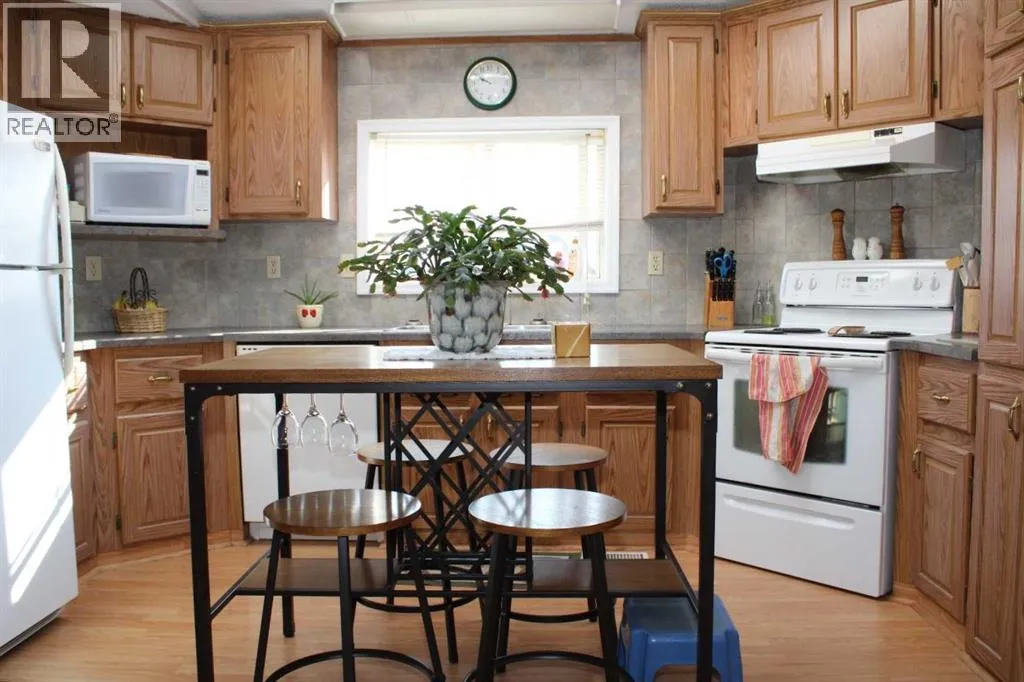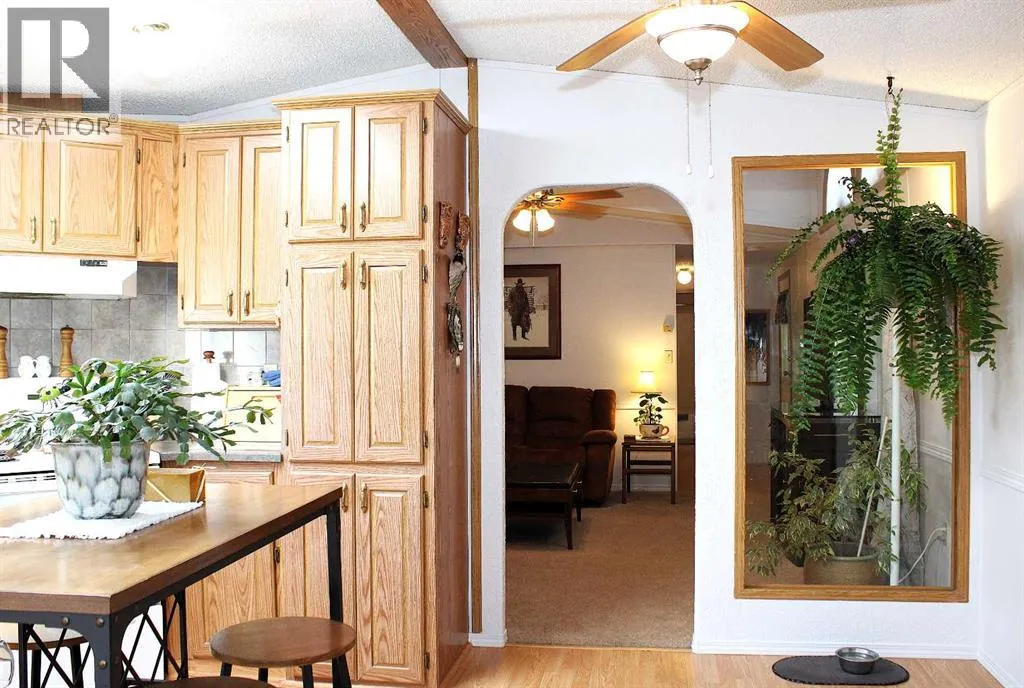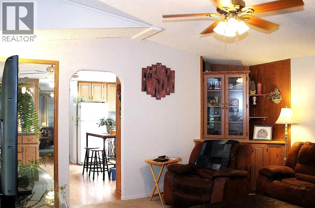 AFFORDABLE acreage located MINUTES west of Sundre. WILLOW HILLS ESTATES is a condominium-style community - where owners OWN TITLE to their lots, with each lot measuring approximately 0.60 acres. The monthly FEES are low - $132.00/month - and cover services such as community WATER / SEPTIC SYSTEM / GARBAGE BINS / common AREA maintenance, and road UPKEEP. This property BORDERS an undeveloped utility reserve, providing a sense of SPACE and increased PRIVACY with fewer neighbouring properties in CLOSE proximity. At the CORE of this property is a well-maintained 1992 modular home, enhanced by a SUBSTANTIAL 40x14 ADDITION that integrates smoothly with the original structure to offer increased space and comfort. The GREAT ROOM addition serves as a versatile space within the residence. It features a WOOD BURNING stove that provides efficient HEATING. While currently utilized as a DINING area, the room can be adapted for use as a FAMILY room or to accommodate RECREATIONAL amenities such as a pool table, offering flexibility to meet DIVERSE needs. Two additional rooms offer further adaptabilityâone is presently designated for STORAGE, and the other functions as an OFFICE; BOTH COULD BE BEDROOMS. The open-concept floor plan positions the great room at the HEART of the home, creating an INVITING environment conducive to a range of activities. The kitchen functions as the CENTRAL HUB of this home, filled with NATURAL light from strategically placed windows and a skylight. Extensive oak-toned cabinetry provides WARMTH to the space, while the EFFICIENT U-shaped design ensures that all appliances are CONVENIENTLY within reach. An elegantly BUILT-IN corner cabinet offers the potential for a dedicated COFFEE STATION, providing added convenience for daily routines. The SPACIOUS living room features distinctive floor-to-ceiling windows, providing AMPLE natural light and WESTWARD views. These windows overlook the covered 24x14 deck, offering an ideal setting for relaxation. Two bedroo ms are accompanied by the main bathroom, enhancing privacy for family members or guests. A PRIVATE primary bedroom is a serene retreat, nestled at the OPPOSITE end of the home. It is COMPLETE with a well-designed 5-piece ensuite that spans the entire width. The layout of the home FOSTERS both connection and privacy, with FLEXIBLE spaces designed to suit CHANGING family dynamics. Whether you envision lively GATHERINGS in the great room, quiet EVENINGS by the fire, or PEACEFUL mornings tending the garden outside, every aspect of the property has been thoughtfully planned. The covered west-facing deck is perfect for ALFRESCO DINING or simply soaking in the tranquil ACREAGE atmosphere. Modern conveniences blend seamlessly with rural CHARM, offering a BALANCED lifestyle where you can ENJOY both comfort and the beauty of NATURE. For those seeking a harmonious transition between indoor and outdoor living, this property truly delivers an EXCEPTIONAL EXPERIENCE. (id:27476)