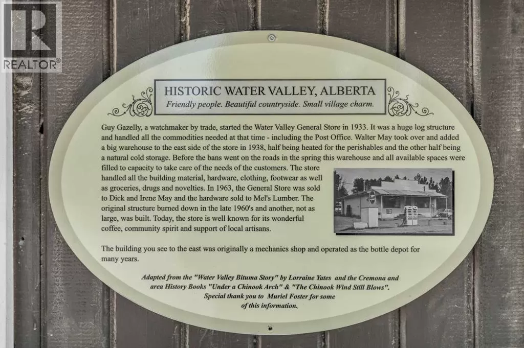 The Water Valley General Store, established in 1933, is more than just a buildingâit is a living piece of Albertaâs history and a cornerstone of the Water Valley community. For generations, it has provided not only everyday goods and services but also a welcoming place where neighbours meet, friendships grow, and traditions are carried forward.Purchasing the General Store means stepping into a rare opportunity: the chance to own an iconic property that combines business potential with community impact. Centrally located in the heart of Water Valley, this historic building offers unique possibilities for retail, café, or mixed-use development, all while preserving a landmark that residents deeply value.For the community, the General Store is more than commerceâit is a connection. For a buyer, it is both an investment in a strong business location and a role in continuing the legacy of a gathering place that has shaped Water Valley for nearly a century.Features include inspected gas tanks, upgraded new gas pumps, a brand-new air conditioning unit, newer fixtures, and a reverse osmosis water filtration systemâto name a few. This property is fully equipped and ready for turn-key operation.In addition to a sale, the Seller is also open to leasing options. The Main Buildingâor the second Main Building, if preferredâcan be leased upon request, providing flexibility for those who wish to operate without purchasing immediately. (id:27476)