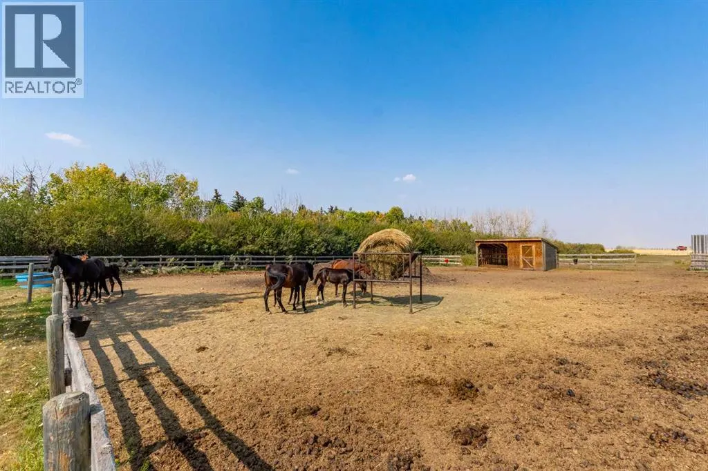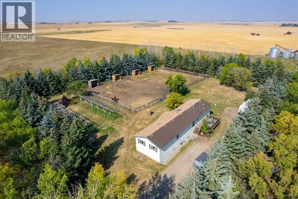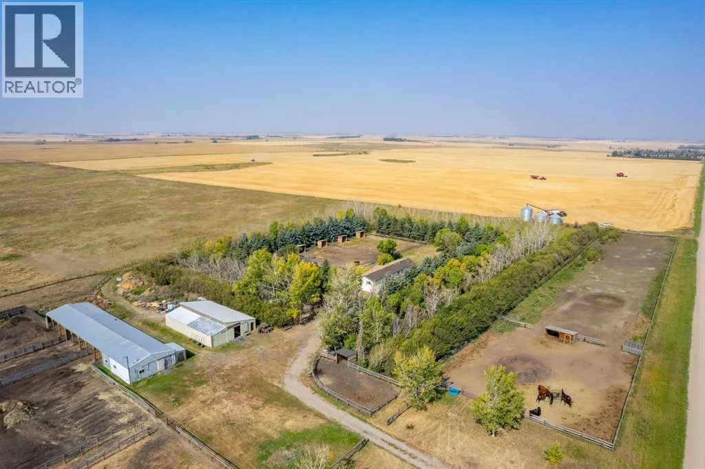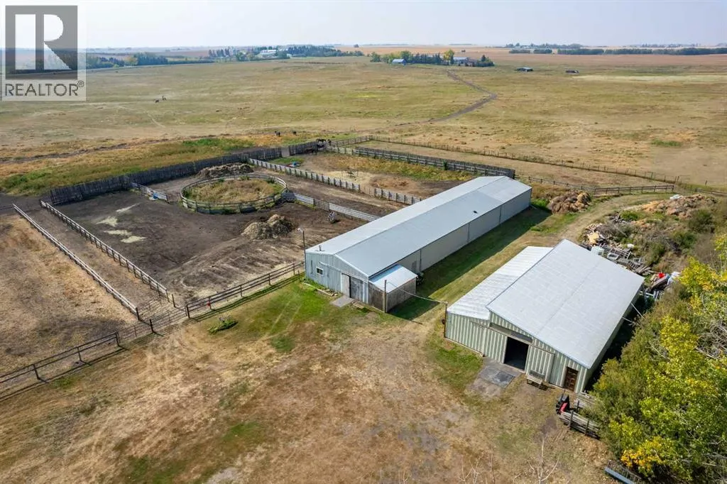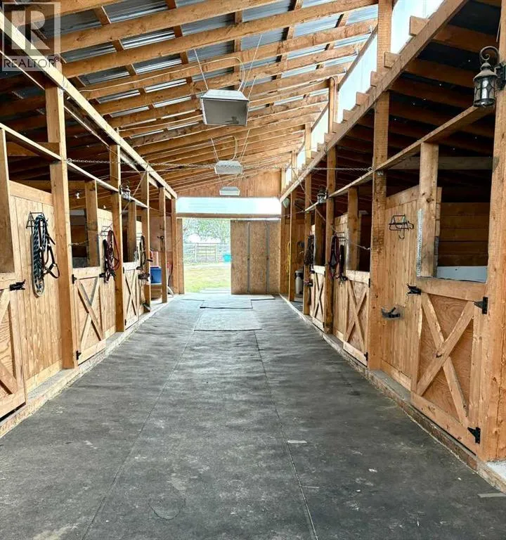 Incredible opportunity to own 120 ACRES of native pasture just 25 km east of CARSTAIRS! This beautiful property features a 1,500 sq ft modular home with 2 bedrooms (was 3 bedrooms + a Den, converted into 2 bedrooms so could have 4 bedrooms), 2 full bathrooms, drywall interior, and brand-new appliances (2024) & an OPEN CONCEPT LAYOUT. The home has been well maintained & could be Perfect for multi-generational living or future development of a 2nd/new home. Equestrian-ready with a 4-year-old- 8-stall barn (3 double, 2 single stalls) and foaling cameras. Includes a heated 36' x 30' WORKSHOP/GARAGE, 5 fenced paddocks (4 with shelters), 2 auto waterers, 96â x 160â outdoor riding arena (convertible into 4 paddocks), and a 96â long shelter. Thereâs even a full 1-mile dirt track for training or riding. The land is serviced by a strong well, new pressure tank (2023), and a deep SPRING-FED DUGOUT & a great MATURE TREE ROW surrounding the yard site. Conveniently located approx. 1 hour to Calgary or Red Deer. This is a turn-key rural property you've been waiting for! (id:27476)
