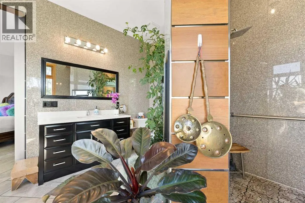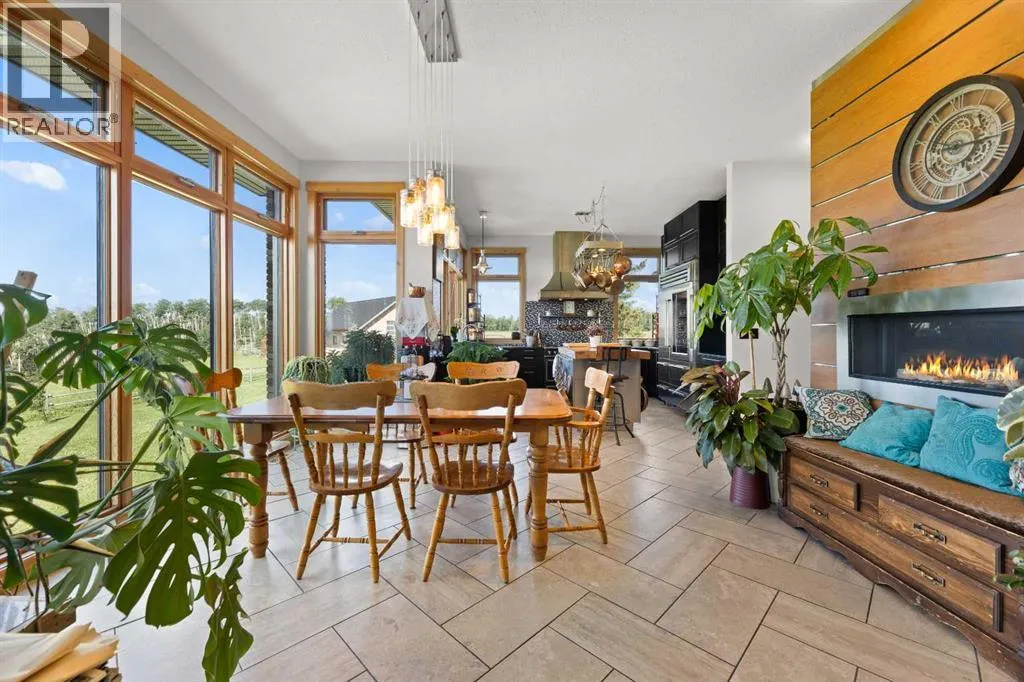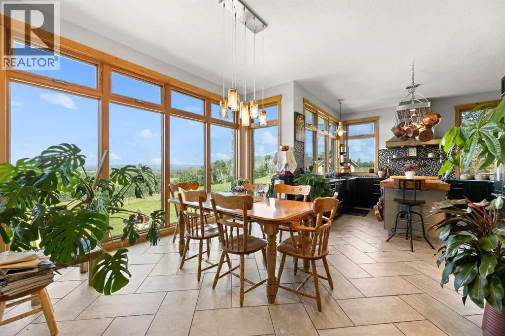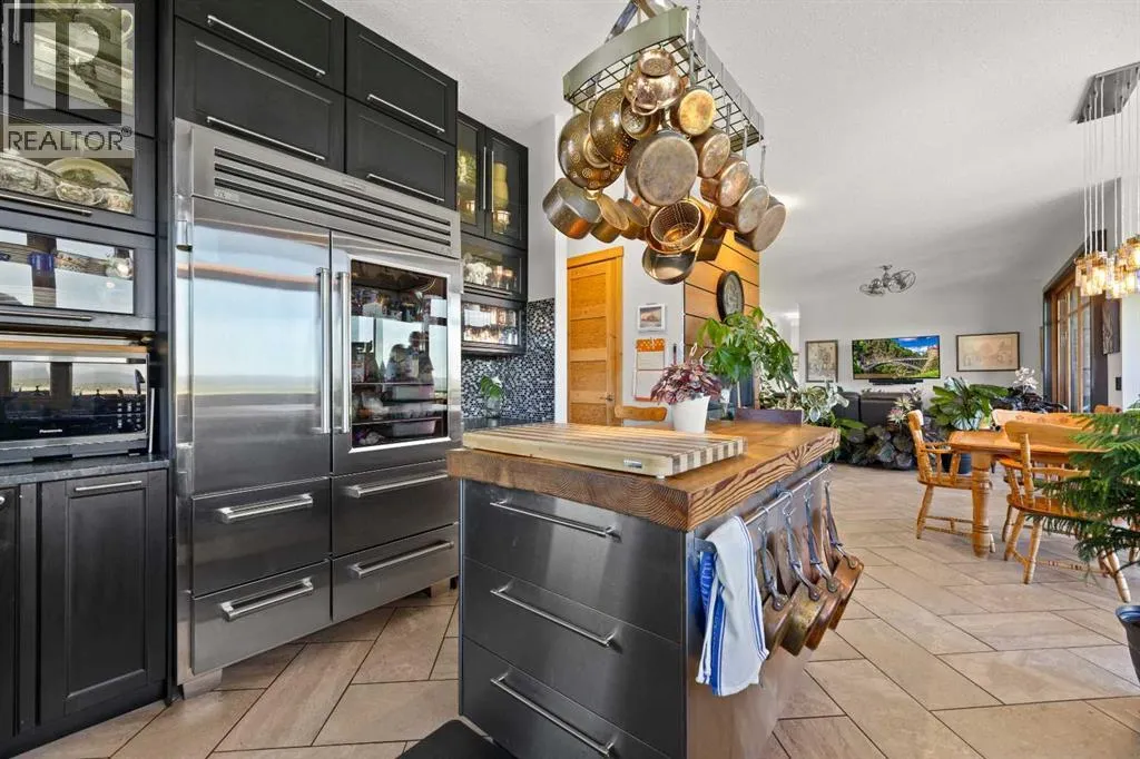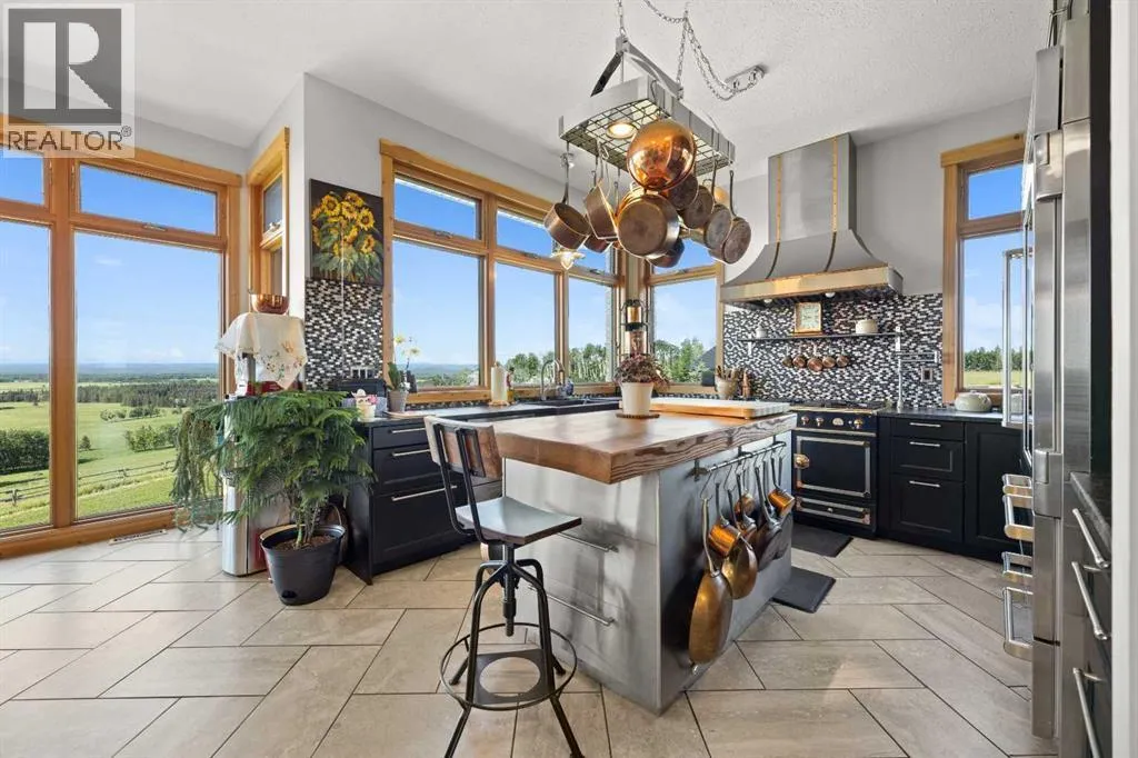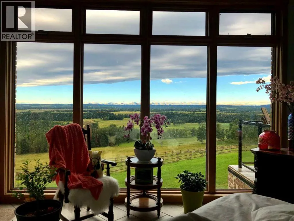 Set 300 feet above the Red Deer River valley, this CUSTOM-BUILT ESTATE blends striking design with unmatched durability. Just five minutes from Sundre, it showcases sweeping 100-mile vistasâamong the very best MOUNTAIN VIEWS IN MOUNTAIN VIEW COUNTYâwhile offering the security of fortress-like construction.Situated on 20 ACRES, both the HOME AND SHOP feature FULL BRICK EXTERIORS and a 100-YEAR EUROSHIELD RECLAIMED RUBBER ROOF, providing maintenance-free protection that endures extreme weather. TRIPLE-GLAZED LOEWEN WINDOWS with steel exteriors and Douglas fir interiors maximize efficiency, while DUAL FURNACES and DUAL A/C UNITS ensure comfort in every season.Inside, premium finishes define every space. The CHEFâS KITCHEN boasts SOLID CUSTOM CABINETRY, LEATHERED GRANITE COUNTERTOPS, TWO PANTRIES, a BUTCHER BLOCK ISLAND, SUB-ZERO 48â FRIDGE, and LA CORNUE 5-BURNER STOVE WITH DOUBLE OVEN. FLOOR-TO-CEILING WINDOWS and ACCORDION DOORS WITH PHANTOM SCREENS open to a LARGE WEST-FACING DECK, framing endless views.Throughout, 10-FOOT CEILINGS, 8-FOOT DOUGLAS FIR DOORS, and GRANITE FINISHES elevate the homeâs timeless quality. The MASTER RETREAT features a PRIVATE DECK, WALK-IN CLOSET, and a SPA-INSPIRED ENSUITE with FIREPLACE, AIR-JET TUB, and WALK-IN SHOWER. A SECOND BEDROOM, OFFICE, BATHROOM, and LAUNDRY ROOM carry the same meticulous standard.The WALK-OUT BASEMENT impresses with 9-FOOT CEILINGS, IN-FLOOR HEATING, and ACCORDION DOORS opening to a STAMPED CONCRETE PATIO. The ATTACHED 27X27 GARAGE, level with the main floor, enhances convenience and accessibility.Outdoors, STONE RETAINING WALLS, FULLY RAIL FENCED, and a FULLY FENCED PERIMETER underline strength and security. The 30X60 HEATED SHOP includes IN-FLOOR HEAT, a BATHROOM WITH WALK-IN SHOWER, OFFICE, LAUNDRY, MECHANICAL ROOM, and UPPER STORAGEâa fully equipped space for work or hobbies. Additional features include a CATTLE WATERER, WATER HYDRANTS, SOLAR-POWERED GATE, and 17 ACRES OF PASTURE.The property o ffers YEAR-ROUND RECREATION: hiking, fishing, horseback riding, and whitewater rafting on the Red Deer River. With enduring infrastructure and timeless design, it delivers privacy, resilience, and exclusivityâyet remains only minutes from Sundreâs HOSPITAL, SHOPPING, AND AMENITIES. (id:27476)