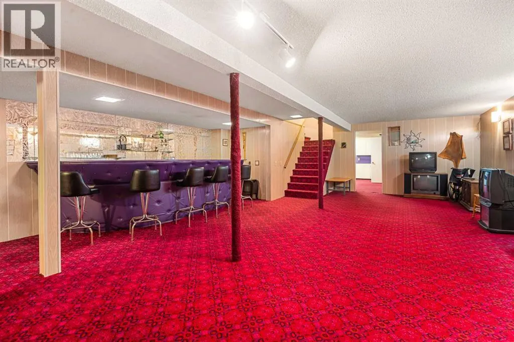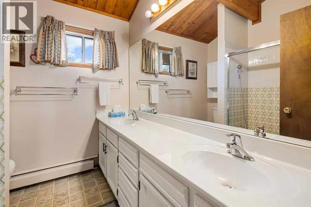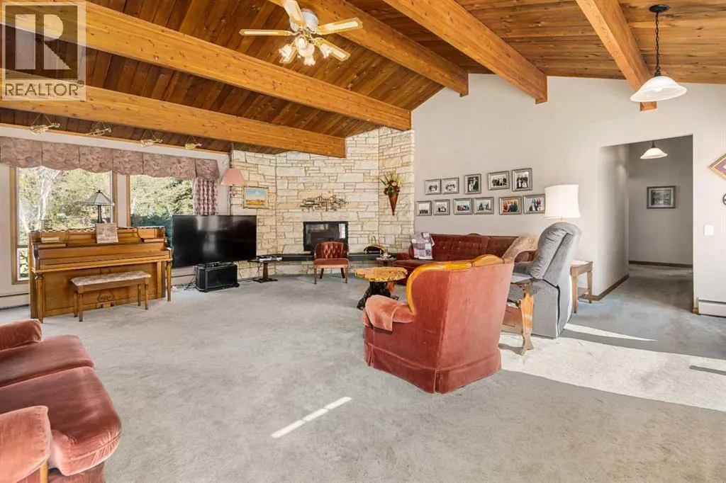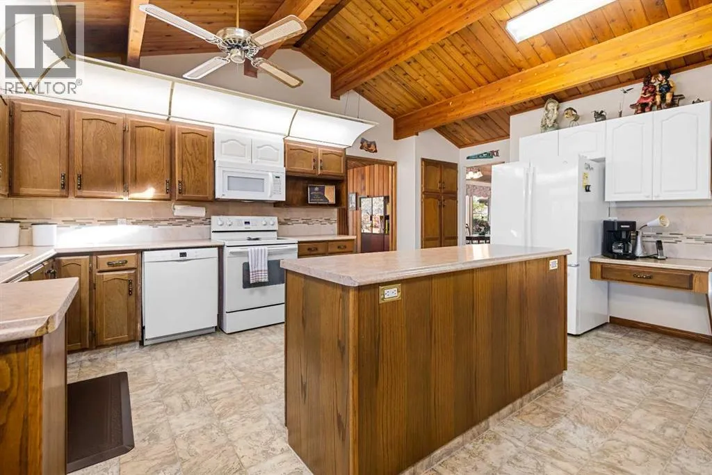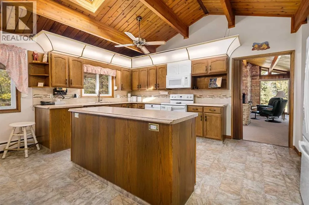Tucked away among mature trees, this beautifully maintained acreage offers the perfect blend of privacy, space & convenience, just 37 mins to Calgary Airport, 26 mins to Airdrie, under 50 mins to downtown Calgary & 17 mins to Crossfield. This sprawling bungalow on 5.56 acres has over 6,300 sq ft of living space (3,237 sq ft up + 3,126 sq ft down), making it an incredible opportunity for large families or multi-generational living, with solid bones & endless potential to personalize. Inside youâll find 5 bedrooms up(one can be an office or flex space) & 2 down, 3.5 bathrooms up & 1 full bath down, vaulted wood ceilings throughout the main level, a large kitchen overlooking the breakfast nook, a massive family room with stone faced wood burning fireplace, & patio doors leading to a private concrete patio, a bright living room also with stone faced wood burning fireplace & formal dining area, & a main-floor laundry room with sink & cabinetry for convenience off the back entry & garage. The fully finished basement is designed for entertaining & flexible living, featuring a huge rec/family room with another stone wood-burning fireplace & adjacent wet bar, 2 bedrooms, full bathroom, cold room, kitchenette, additional living/games room, flex space & a large storage area, plus stairs to access to the garage directly. Outside, the property impresses with a 72x40 heated, insulated Quonset with concrete floor, a 40x30 detached garage & a 24x24 attached garage, along with a huge garden area perfect for growing your own food & room for animals or recreation. Additional highlights include newer shingles & 2 zoned boilers with thermostats throughout the home for efficient comfort. This acreage is the perfect place to raise a family, create your dream hobby farm, or simply enjoy the serenity of country living with quick access to nearby communities & city amenities. (id:27476)