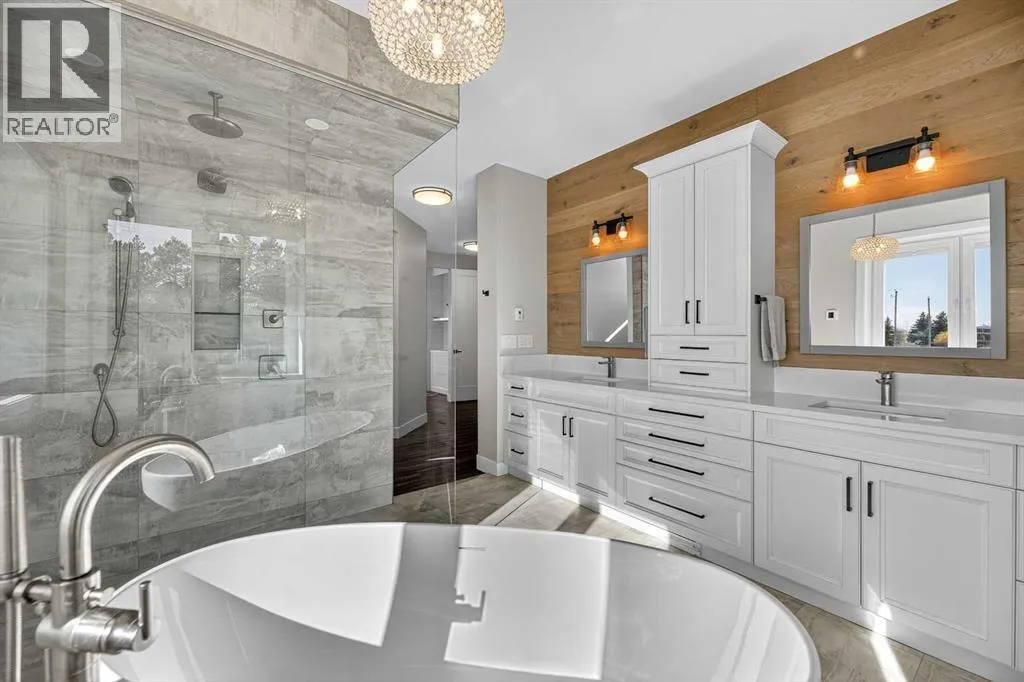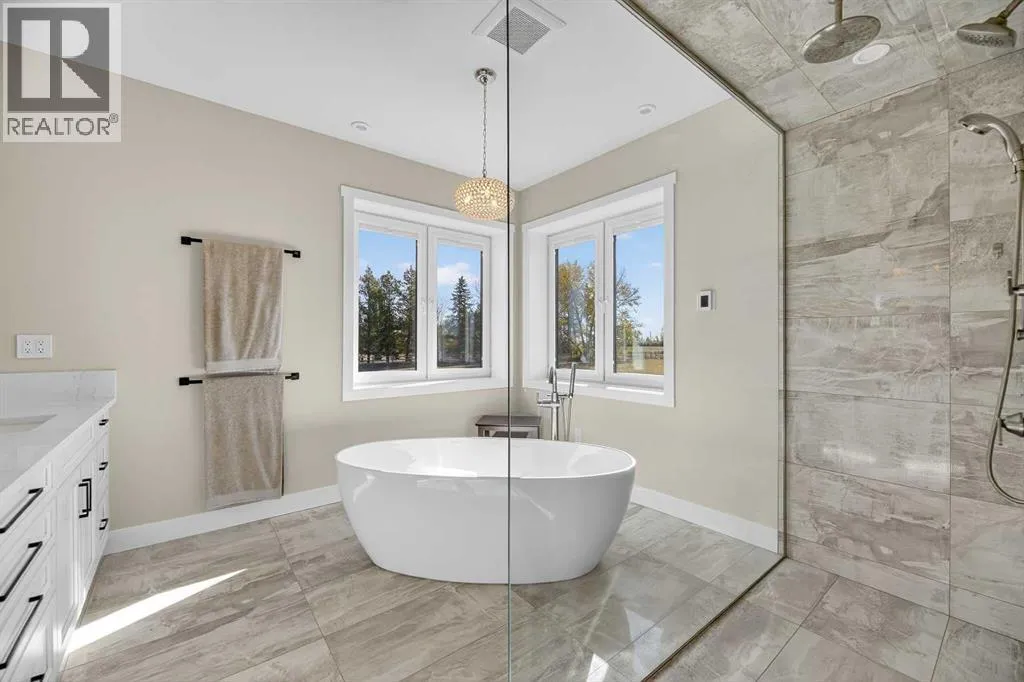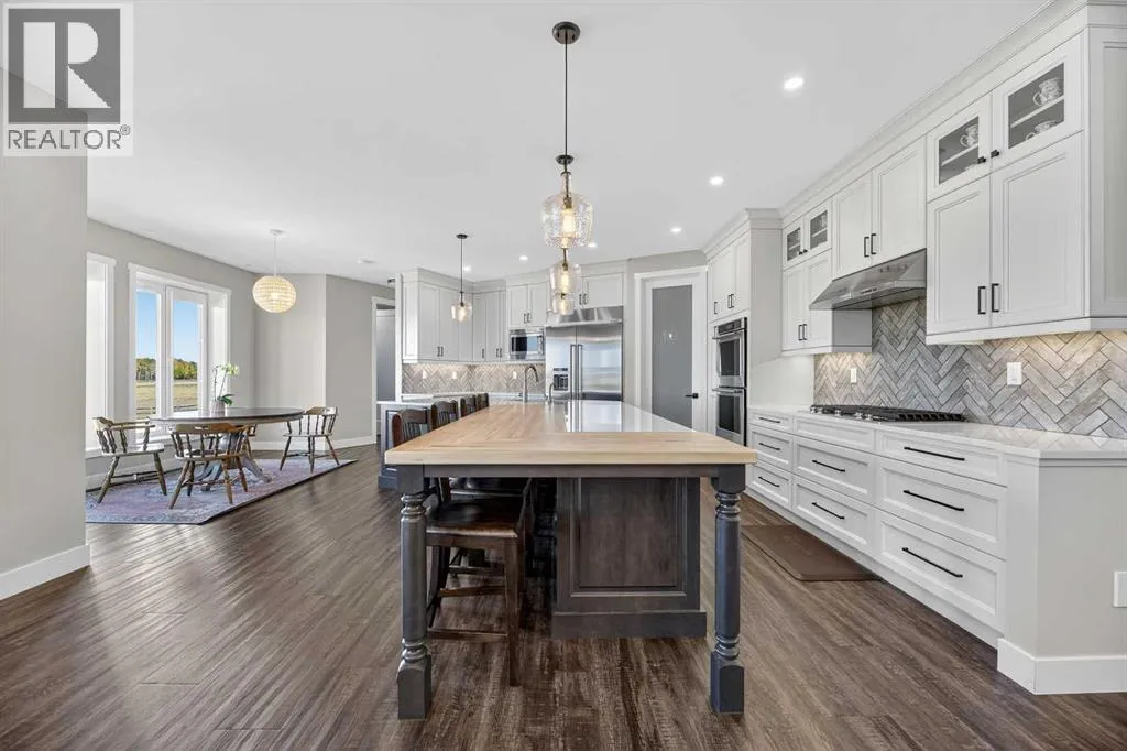 THIS COULD BE YOUR NEXT HOME! And what an EXCEPTIONAL home this is!! This property has 2.94 acres and is located just north of Didsbury so it has GOOD PROXIMITY TO TOWN. NO EXPENSE WAS SPARED while building this since the owners meant to stay here long term-MANY HIGH END UPGRADES. Let's start in the house; you will immediately realize how special it is when you step inside. You will notice the SOARING VAULTED CEILINGS, open floor plan and HUGE WINDOWS allowing in lots of natural light and giving you INCREDIBLE, PEACEFUL VIEWS. The kitchen is a CHEFS DREAM with a huge dual surface island (quartz/butcher block) w eating bar, gas stove, large pantry, copious amounts of cabinets, plenty of workspace and a breakfast nook with access out to the covered, glass enclosed, concrete deck. This kitchen has enough space for the whole family to be in and is a great area for entertaining. There is a formal dining room with custom built in cabinets and the living room has a gas fireplace. And remember those views!! There is an expansive primary bedroom with access out to that deck, gas fireplace and it has an impressively large walk in closet. The ensuite has a large walk in shower, separate tub and double vanity with lots of drawers/storage. There is also in-floor AND electric heat, making it a comfortably luxurious place to get ready for the day. There is a secondary bedroom, a large office with custom built ins (which could serve as a third bedroom if need be), main floor laundry with sink/lots of storage cabinets, a boot/mud room with bench seating, main bathroom and an inviting entryway. Head down the spiral staircase into the fully developed basement and you will find MORE EXCEPTIONAL SPACE for the whole family. There is a huge family room with gas fireplace, a gym with mirror wall, a large modified jack & jill bathroom with water closet and shower room, 2 OF THE LARGEST BEDROOMS YOU HAVE EVER SEEN, a large secured hobby room and a massive utility/mechanical room big enough t o hold all of your food prep items. The basement has a walk out to the covered patio (w/rough in for future hot tub) and there is even consideration for a future elevator. This home has TRIPLE GLAZE TILT n TURN windows making them a breeze to clean and maintain. There is CENTRAL AIR, in floor heat on BOTH levels and there are MULTIPLE WAYS TO HEAT THIS HOME (gas, wood boiler, solar). There is EXTRA R VALUE and WALL ARE EXTRA THICK making this home very tight and VERY COMFORTABLE IN EXTREME TEMPERATURES. Head out to THE BIGGEST ATTACHED GARAGE YOU HAVE EVER SEEN and you will notice that you could easily park your 5th wheel inside (14' door) with all of your other vehicles. There is also IN FLOOR HEAT IN THE GARAGE and this is where the wood boiler is. You will have plenty of storage and workspace here to appeal to those who think a garage is more important than the house! There is a solar system that can stay or go. THIS HOME WILL TAKE YOUR BREATHE AWAY-CALL TODAY TO VIEW!! (id:27476)