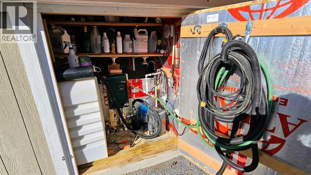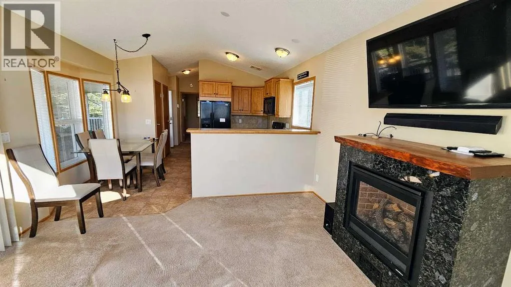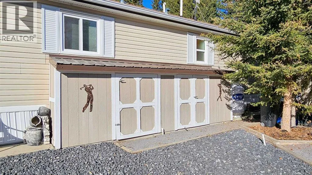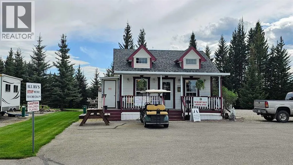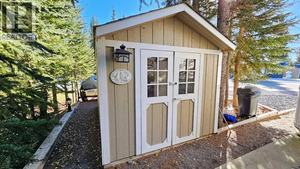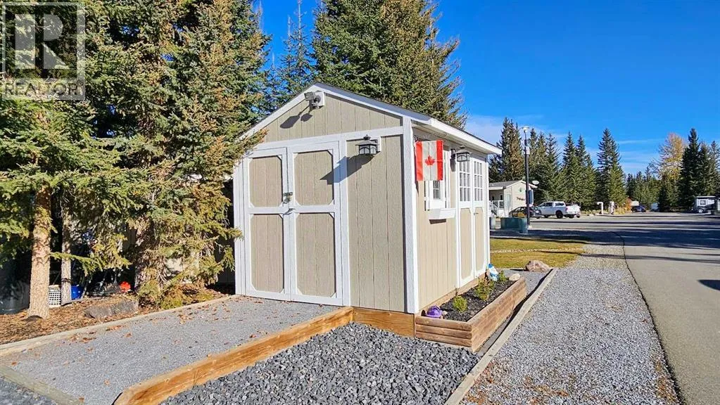 Step into the best of golf course living at this impeccably maintained year-round Park Model home, nestled on a beautifully landscaped & oversized corner lot (0.09 acres) in the prestigious Coyote Creek Golf & RV Resort near Sundre. This one-bedroom, one-bathroom, 586 sq ft home is designed for comfort, function, & relaxation â with year-round appeal. Inside, enjoy the open-concept layout flooded with natural light from large south-facing windows. The spacious kitchen boasts ample counter space, pantry storage, & room for an island â ideal for entertaining or prepping meals after a day on the course. Vaulted ceilings & warm finishes complement the drywalled interior (no panels here!), & the home is fully insulated (R30 walls/R40 roof) for true four-season use. The bedroom features custom built-in cabinetry, while the 3-piece bathroom includes a stacking washer/dryer & a generous corner shower for everyday convenience. A new water pump (2024) supports a fully winterized cistern system with water trailer heater, ensuring functionality even in -40°C. Step outside & relax on the impressive 12â8" x 40â4" covered deck â nearly doubling your living space! Included are a fire table, dining set, outdoor couch, & BBQ â making this your go-to outdoor retreat. The property includes a full concrete pad, low-maintenance landscaping, & extensive extras such as a 200-gallon cistern & 200-gallon water trailer (heated). A10x12 hardwired & finished golf garage/workshop. A 8x12 hardwired & finished storage shed with shelving & deep freeze. AND THE GOLF CART IS INCLUDED! Located just minutes from Sundre, where you'll find shopping, schools, an Aquaplex, gym, arenas, public library, & the Arts Centre. Whether you're a passionate golfer, nature lover, or simply looking to downsize or invest in a secondary residence â this home delivers an unmatched RV lifestyle opportunity with all the amenities of a full-time home. âHome Is Where Your Story Begins!â (id:27476)