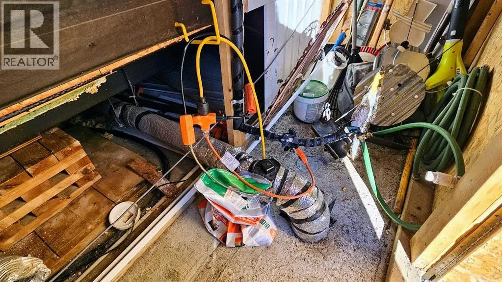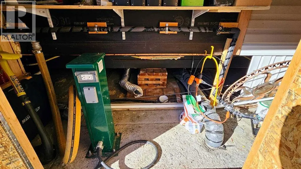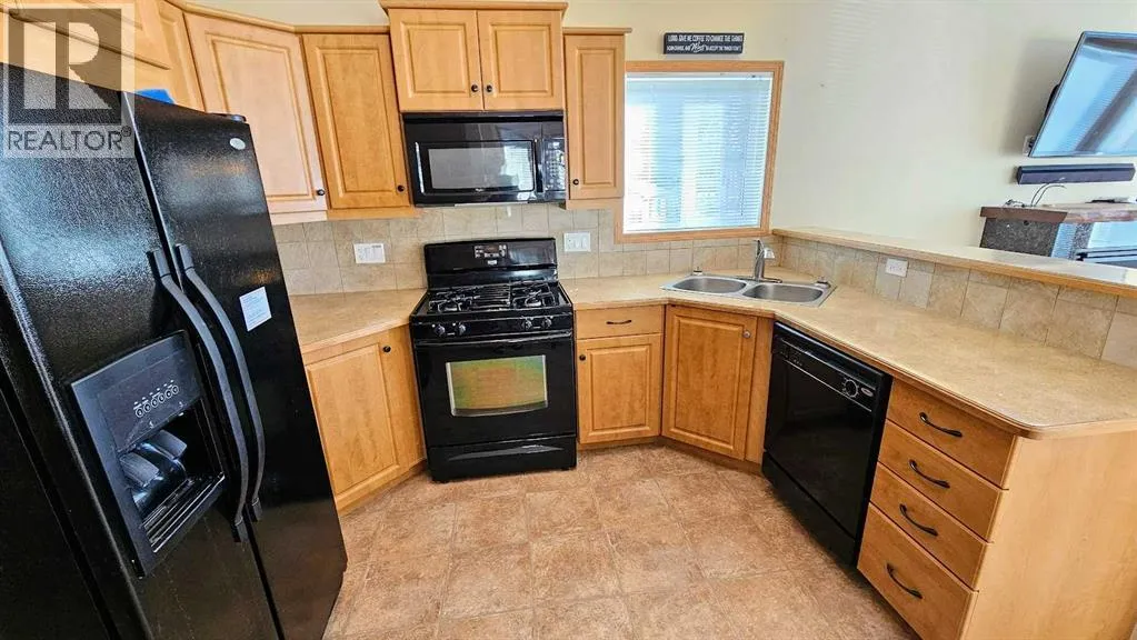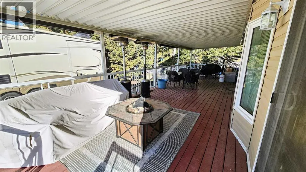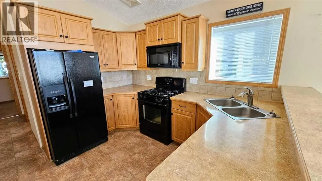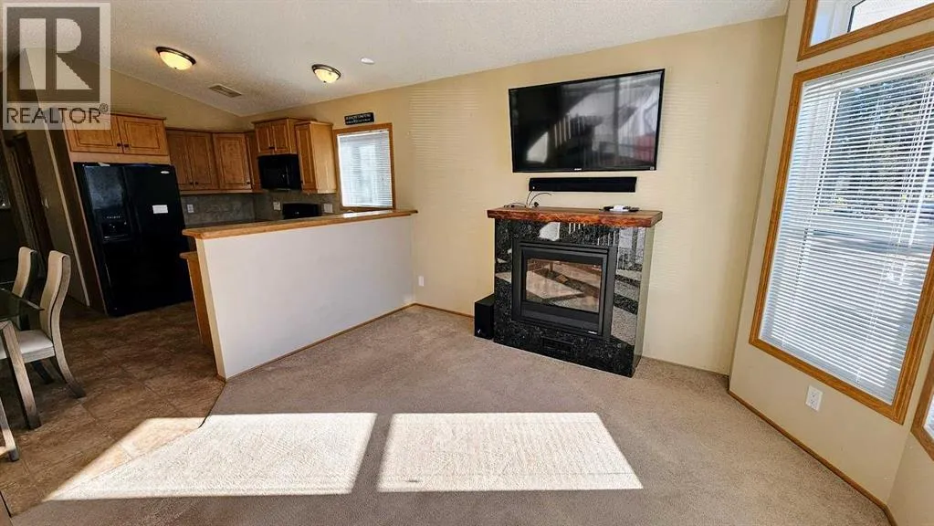 Step into the best of golf course living at this impeccably maintained year-round Park Model home, nestled on a beautifully landscaped & oversized corner lot (0.09 acres) in the prestigious Coyote Creek Golf & RV Resort near Sundre. This one-bedroom, one-bathroom, 586 sq ft home is designed for comfort, function, & relaxation â with year-round appeal. Inside, enjoy the open-concept layout flooded with natural light from large south-facing windows. The spacious kitchen boasts ample counter space, pantry storage, & room for an island â ideal for entertaining or prepping meals after a day on the course. Vaulted ceilings & warm finishes complement the drywalled interior (no panels here!), & the home is fully insulated (R30 walls/R40 roof) for true four-season use. The bedroom features custom built-in cabinetry, while the 3-piece bathroom includes a stacking washer/dryer & a generous corner shower for everyday convenience. A new water pump (2024) supports a fully winterized cistern system with water trailer heater, ensuring functionality even in -40°C. Step outside & relax on the impressive 12â8" x 40â4" covered deck â nearly doubling your living space! Included are a fire table, dining set, outdoor couch, & BBQ â making this your go-to outdoor retreat. The property includes a full concrete pad, low-maintenance landscaping, & extensive extras such as a 200-gallon cistern & 200-gallon water trailer (heated). A10x12 hardwired & finished golf garage/workshop. A 8x12 hardwired & finished storage shed with shelving & deep freeze. AND THE GOLF CART IS INCLUDED! Located just minutes from Sundre, where you'll find shopping, schools, an Aquaplex, gym, arenas, public library, & the Arts Centre. Whether you're a passionate golfer, nature lover, or simply looking to downsize or invest in a secondary residence â this home delivers an unmatched RV lifestyle opportunity with all the amenities of a full-time home. âHome Is Where Your Story Begins!â (id:27476)