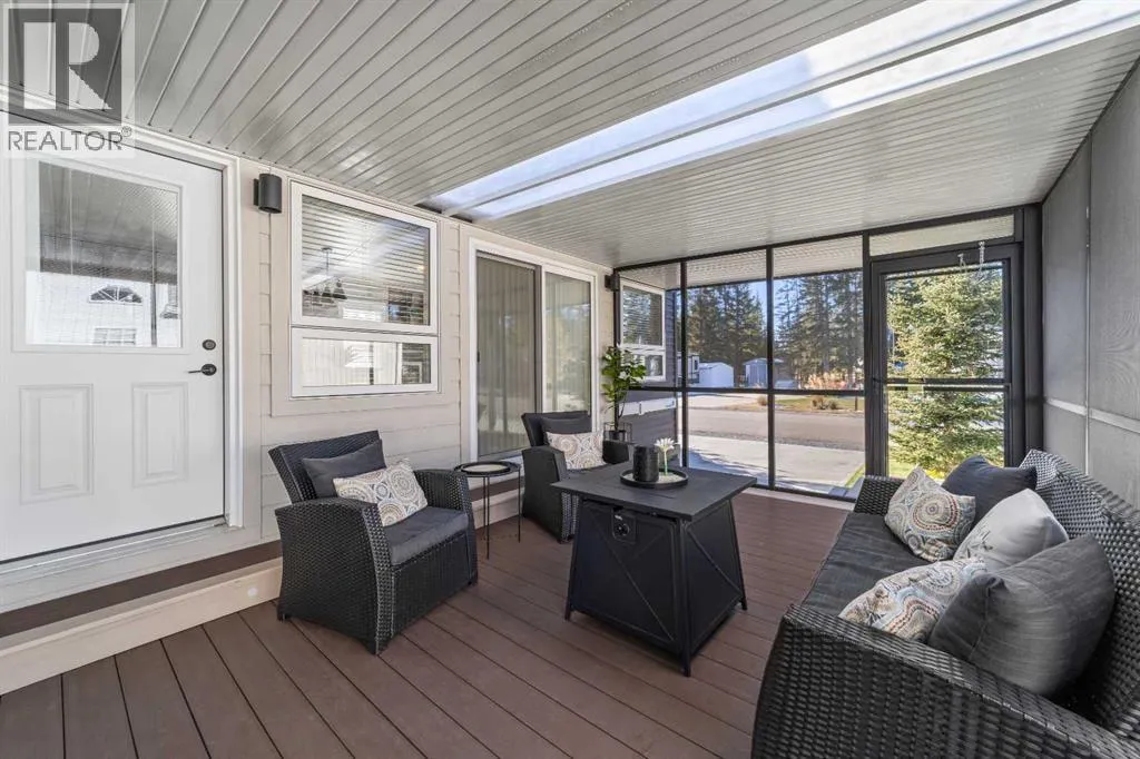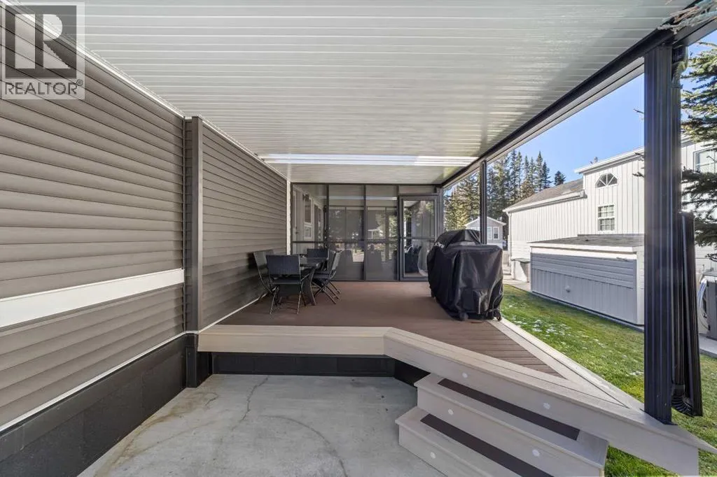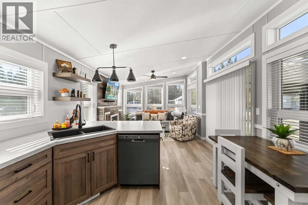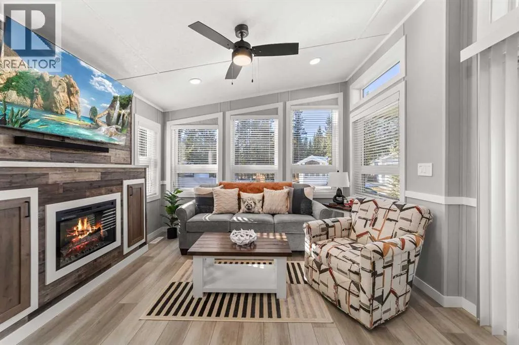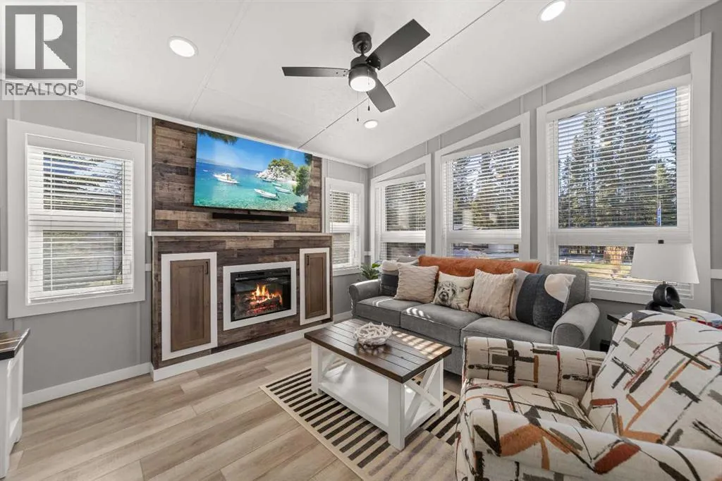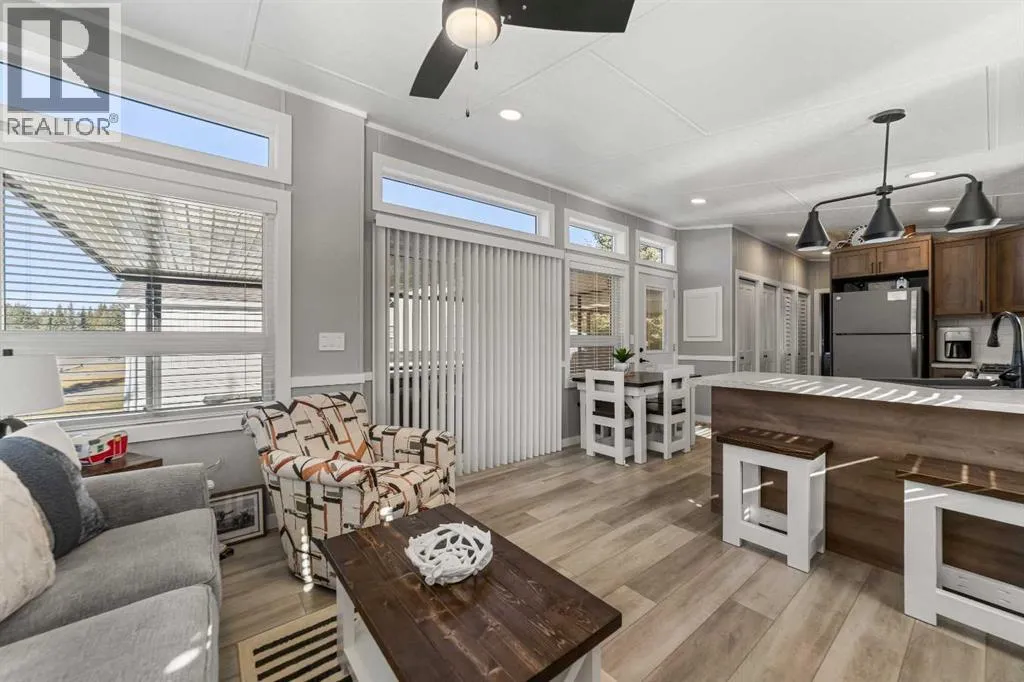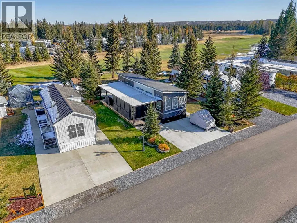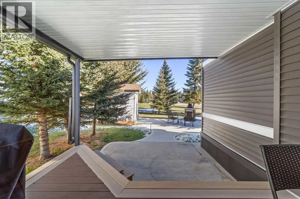 Welcome to 21 Coyote Creek â a rare opportunity to own a 2024 luxury Park Model backing directly onto the 9th tee box in a four-season golf resort community. This fully furnished, turnkey 544 sq ft retreat sits on a private 0.08-acre lot & offers thoughtfully designed indoor-outdoor living with unmatched quality & efficiency. Step inside to discover soaring high ceilings, durable vinyl plank flooring, & an expansive open-concept living space flooded with natural light. The chef-inspired kitchen features black stainless steel appliances, ample cabinetry, a modern sink with black fixtures, & spacious dining options. Relax in the cozy living room by the gas fireplace with built-in TV & surround sound above, framed by rich wood tones & custom millwork. The spacious bedroom is a restful retreat with built-in cabinetry & warm accents. The spa-inspired bath includes a full-size shower, upgraded vanity, backlit mirror, & linen storage. Enjoy the seasons from your massive 11x15 enclosed composite deck or your 11x12 covered composite deck, ideal for entertaining or peaceful morning coffee. A concrete patio with wood-burning outdoor fireplace extends the living space with serene golf course views & towering evergreens. Built for year-round comfort & energy efficiency, this home boasts 2x6 construction, R30 heated floors, R40 insulated metal roof, a six-sided vapour-sealed barrier, & impressive performance of just over 1 ACH (air change/hour). The home is skirted with Trulock, fully insulated underneath, & situated on a full concrete pad. Additional features include: Washer & dryer hookups. Custom high-end blinds. Wrap-around Gemstone Lighting (app-controlled color changes). 10x12 wired shed/golf cart garage. Exterior combo of Hardiplank & vinyl siding. Central Air Conditioning. Starlink & Shaw satellite systems included. This is luxury park model living at its finest â low maintenance, energy efficient, & directly on the golf course. Located just minutes from Sundre, where y ou'll find shopping, schools, an aquaplex, gym, arenas, public library, & the arts centre. Whether you're a passionate golfer, nature lover, looking for a weekend escape, or a full-time four-season residence, 21 Coyote Creek delivers it all. âHome Is Where Your Story Begins!â (id:27476)