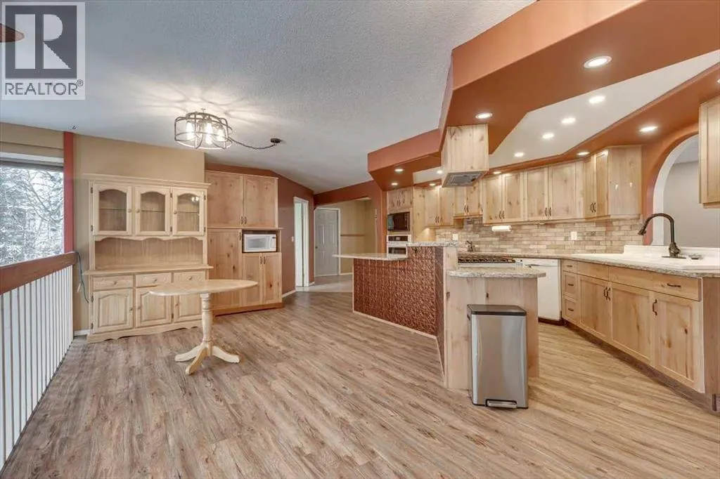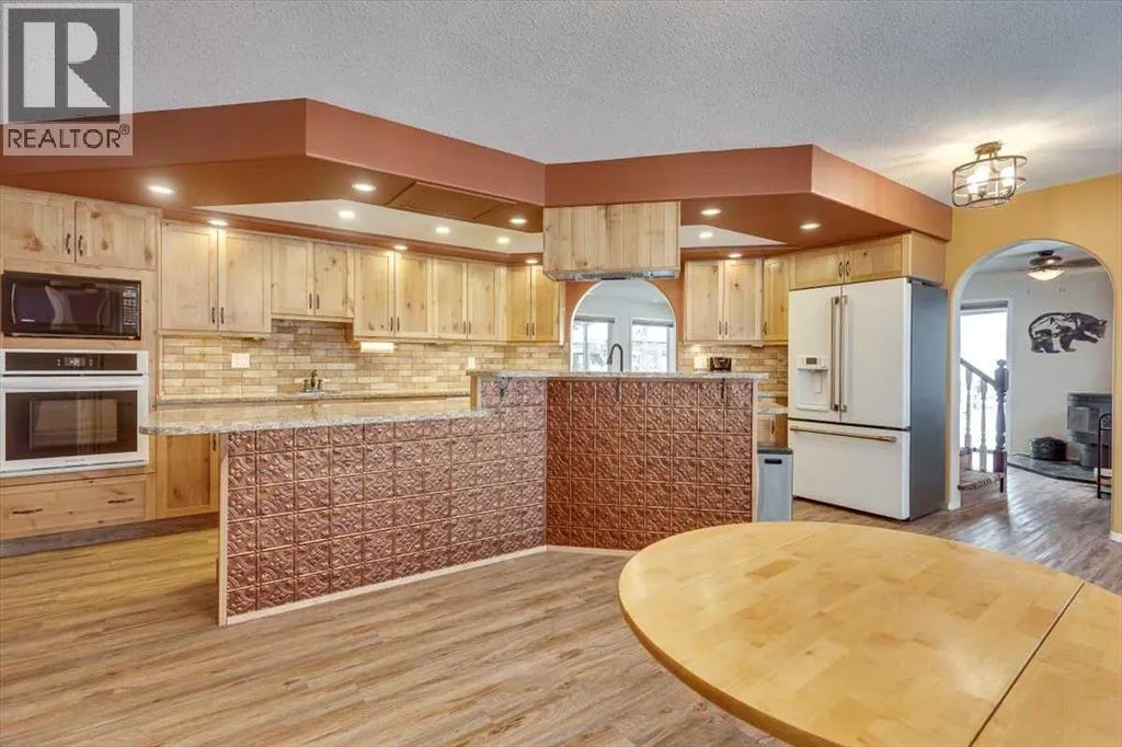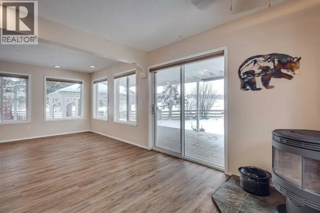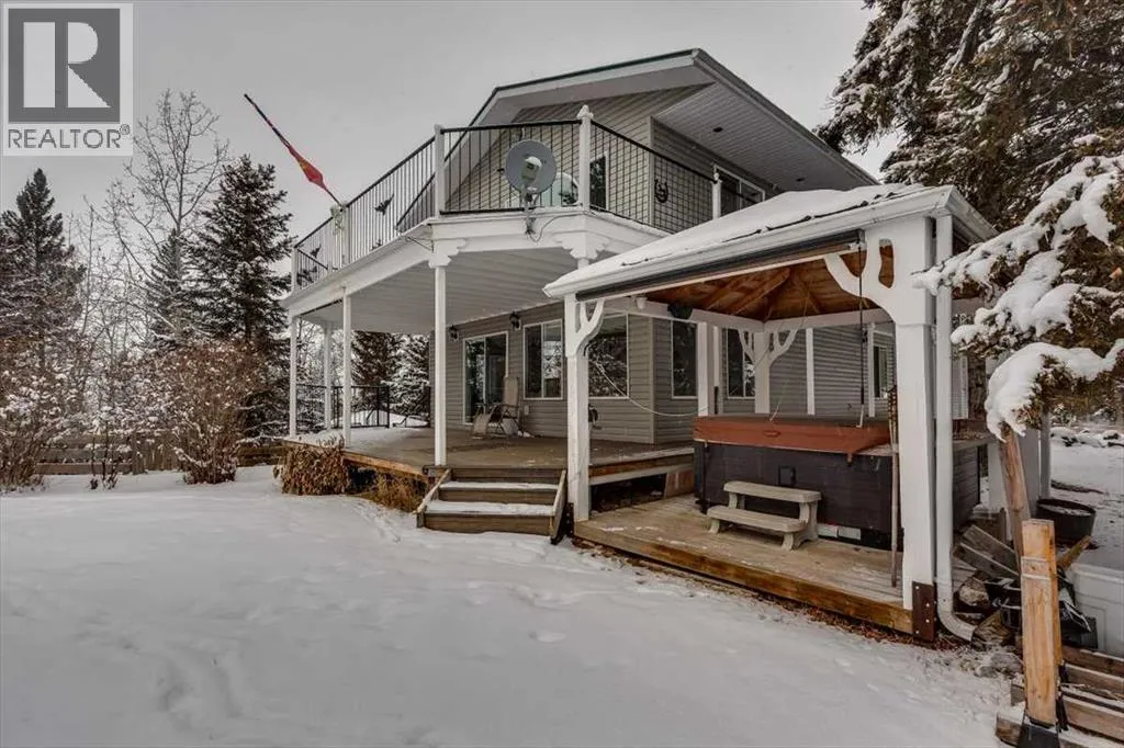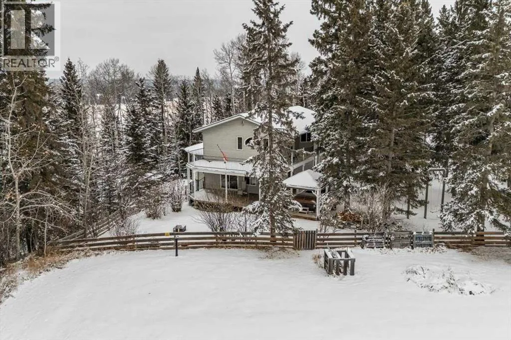 Stunning Acreage Living â Beautifully Updated 2 Storey Walk-out with over 3500 sq ft of living space! 5 bedroom (+2 Den) & 3.5 bath home with double attached heated garage on 5.85 Private Acres with Shop. Discover the perfect blend of privacy, space, and modern comfort on this beautifully treed property. Roughly 2-acres are fenced for a yard site, the remainder of the property is complete with walking trails, elevation changes, and a serene natural settingDesigned for both family living and entertaining, this property offers exceptional outdoor spaces including an 18â x 38â gated deck, wrap-around deck, a covered hot tub area overlooking open field, and a charming goldfish pond with waterfall. A mature mix of spruce and poplar trees, apple trees, and a seasonal creek create a picturesque backdrop in every season.A 22â x 23â heated double attached garage, automatic driveway gates, and a transfer switch for whole home generator backup offer convenience and peace of mind. Additional storage includes a sea-can, tarp shed, and garden shed.Step inside the front entry to a bright, airy home filled with natural light thanks to plenty of windows and a breathtaking two-storey atrium with remote-controlled blinds. The beautifully renovated kitchen features new LVP flooring, quartz counters, new cabinetry faces, a wall oven & microwave, dishwasher, a café fridge and an impressive cafe 6-burner gas stove. A breakfast bar and dining area overlook the atrium, and a convenient pass-through to the living room enhances flow. Enjoy cozy evenings by the living room woodstove. Main floor laundry and a refreshed powder room complete this level. The upstairs opens to a spacious landing with built-in storage and a functional flex/desk area, all accented by hardwood floors. The renovated 3-pc bathroom (2024) serves two oversized bedrooms, one featuring its own private balcony. The primary suite offers a walk-in closet, luxurious 5-pc ensuite, and a large private deck with peaceful vie ws.The lower level provides walkout access through patio doors onto a massive deck with a gazebo, overlooking the wooded ravineâan incredibly private retreat. This level offers 4 additional bedrooms - one with a 4-pc ensuite (2 room windows do not meet egress due to deck coverage) and a generous common area, ideal for a family room, playroom, or entertainment space.Additional Features include In-floor heat throughout, including garage. Dog-safe liquid in boiler system. Hot water tank & pressure tank (2020). Wrap-around decking with scenic views.Finishing off this property is a fantastic 26â x 30â heated shop with concrete floor, workbenches, 100-amp service, abundant power outlets, and a woodstove. The upper-level room in the shop offers excellent potential for an office, hobby space, home based business, or even more storage.A rare opportunity to own an exceptional acreage with a unique home that offers space, privacy, and endless potential. (id:27476)